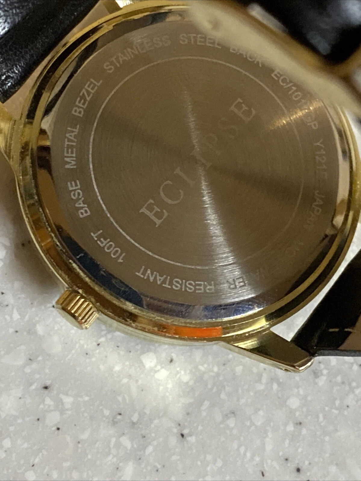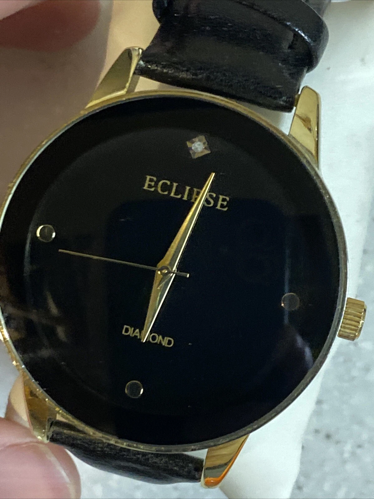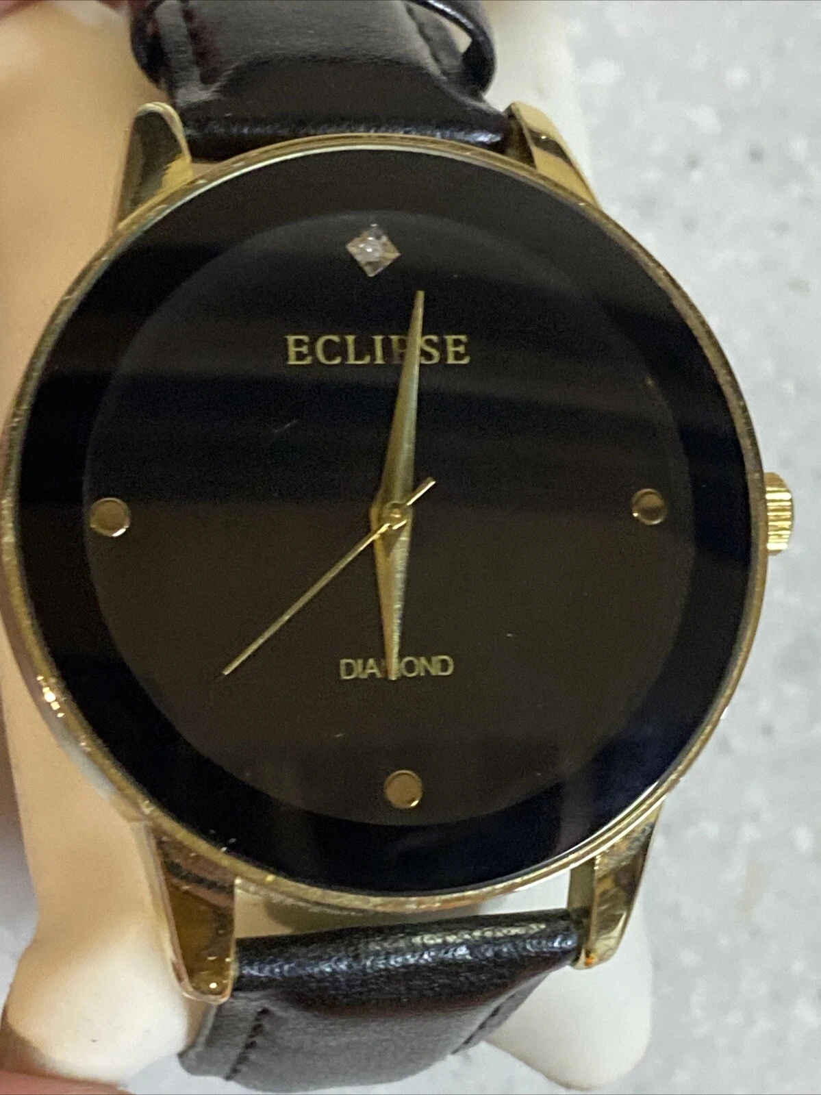 Eclipse Diamond Watch Womens 32mm Black Gold Tone Leather Strap w New Battery