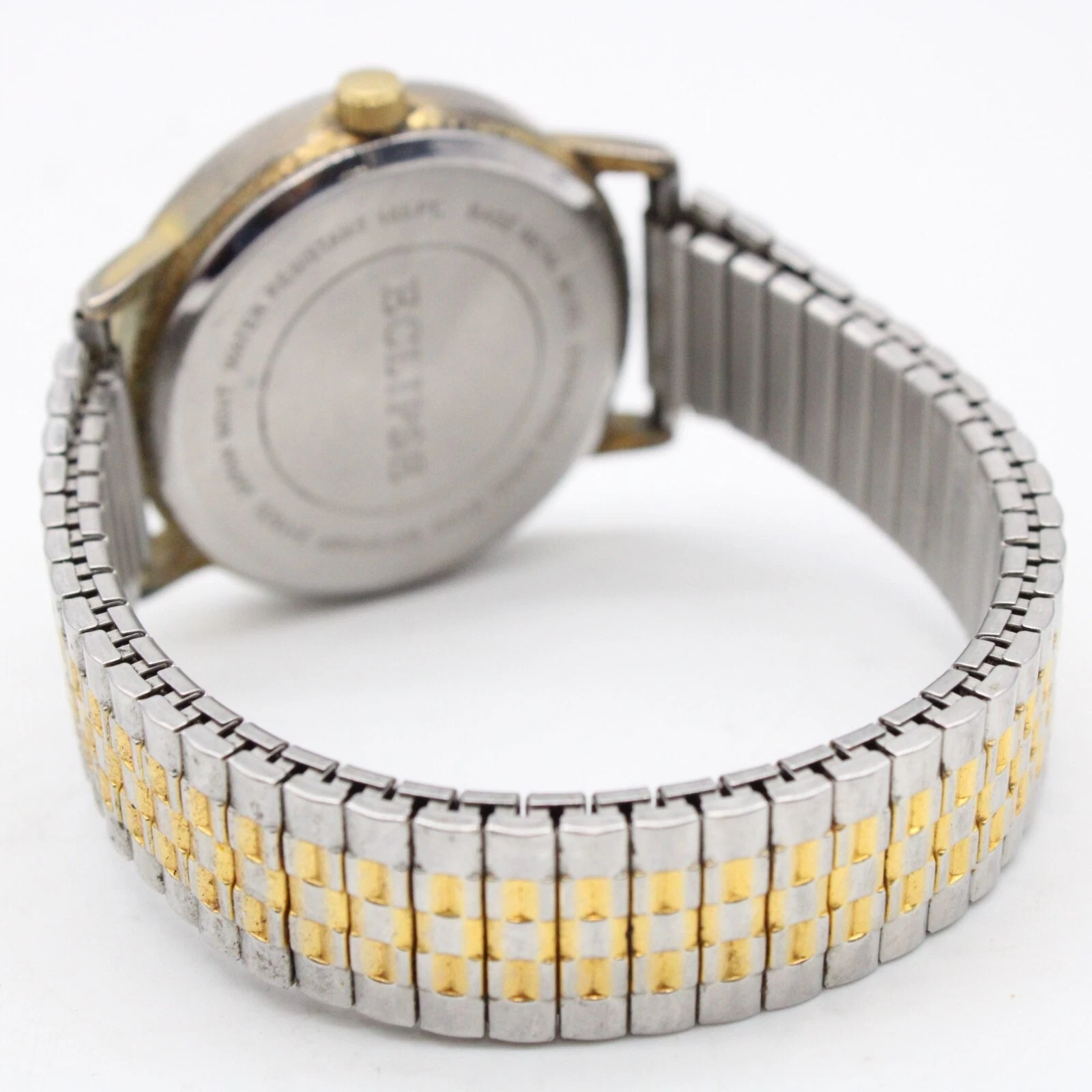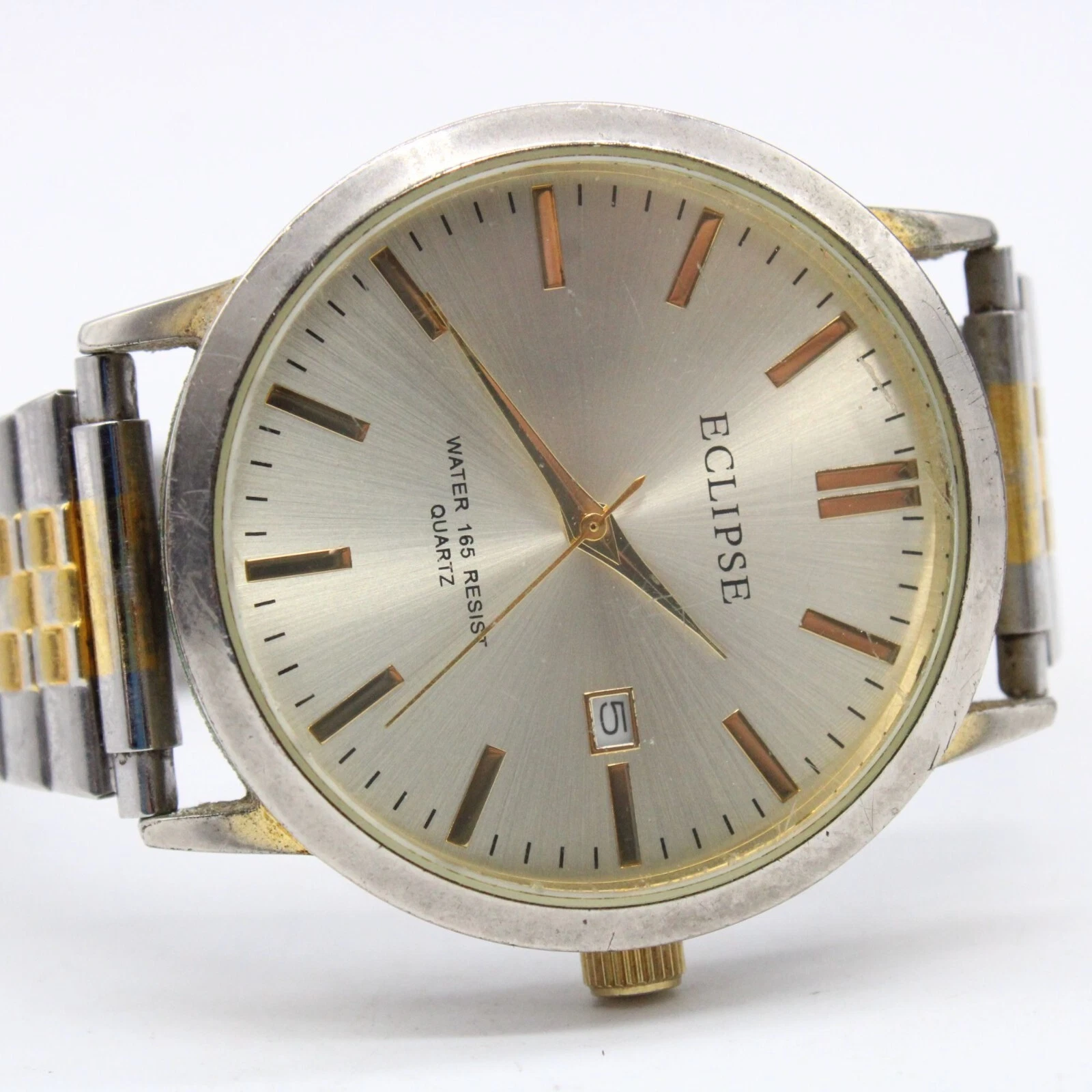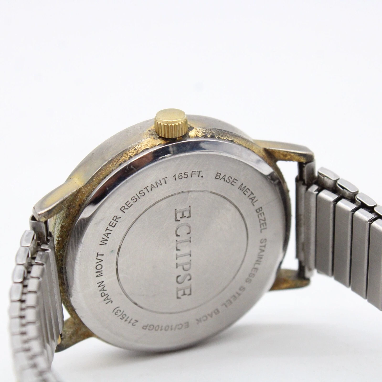Vintage ECLIPSE Watch Mens Multi Tone Stainless Steel Big Round Dial 165 WR