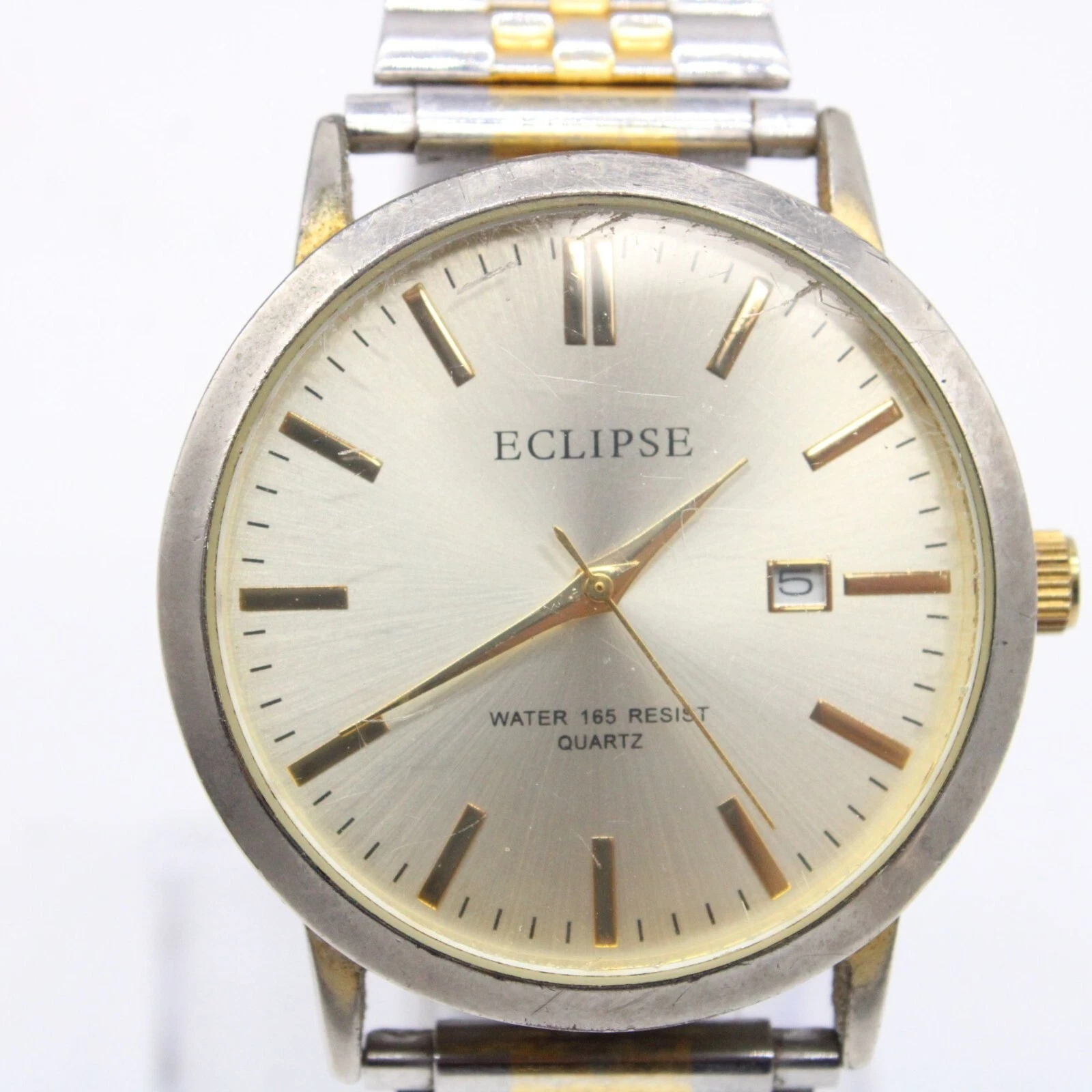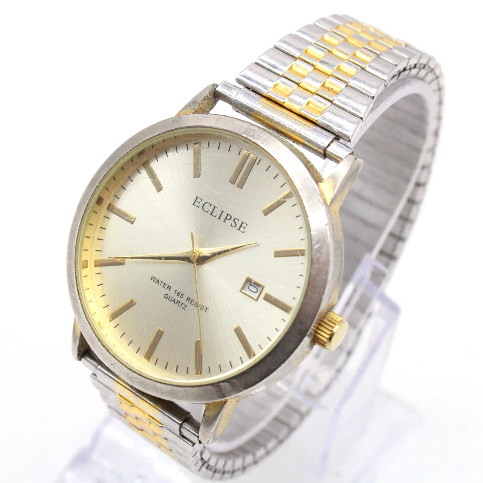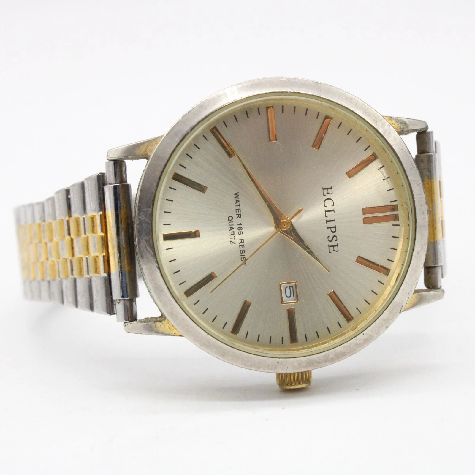 Vintage ECLIPSE Watch Mens Multi Tone Stainless Steel Big Round Dial 165 WR