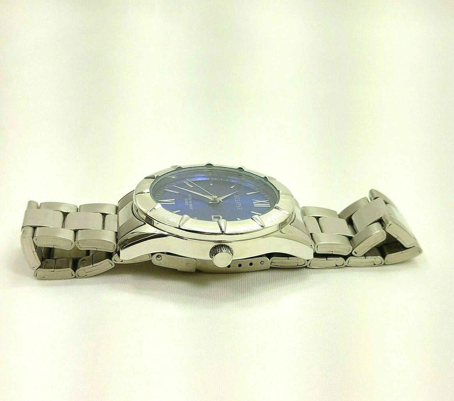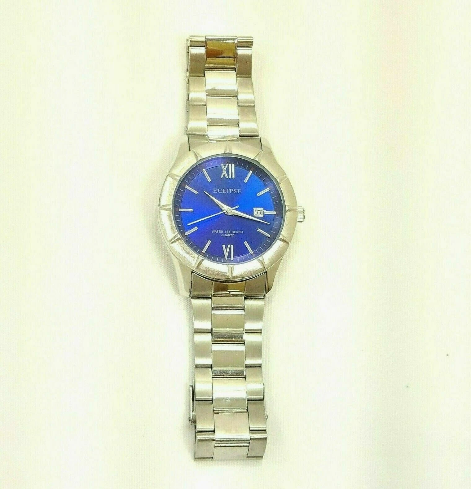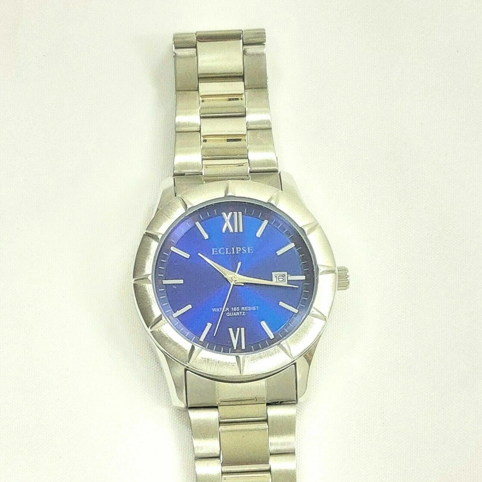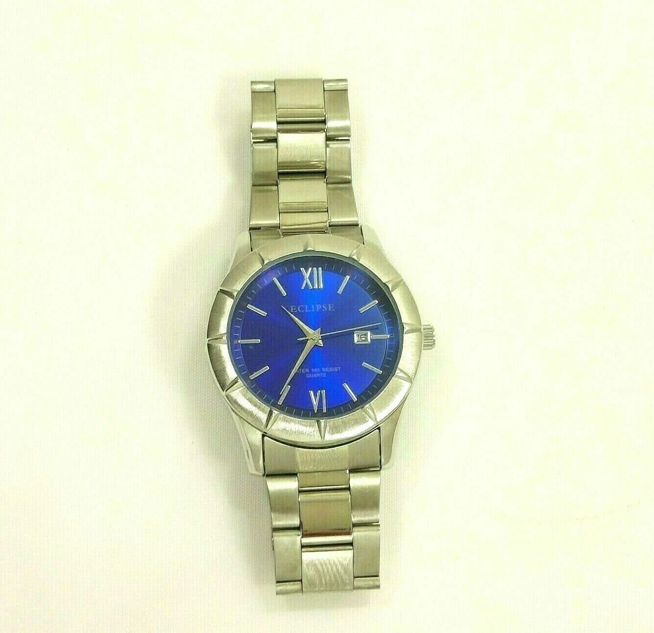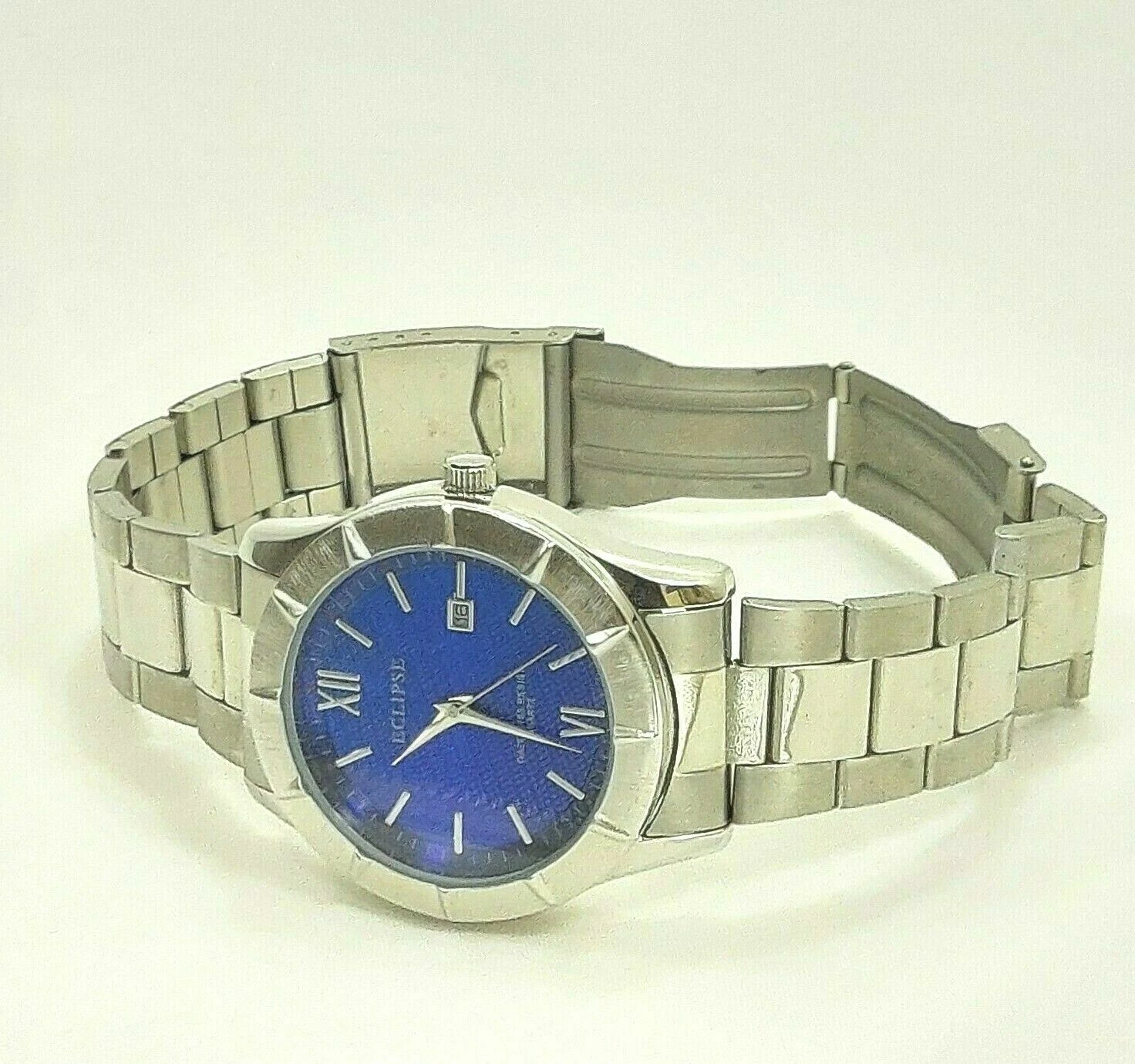 Men’s Eclipse Blue/Silver Stainless Steel Water 165 Resist Quartz Bracelet Watch
