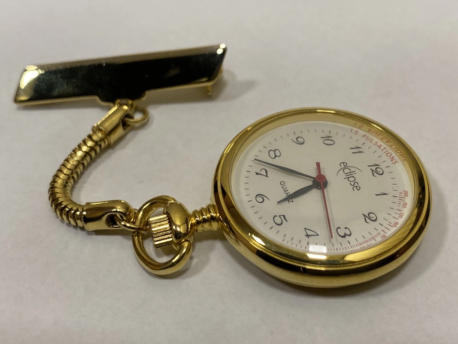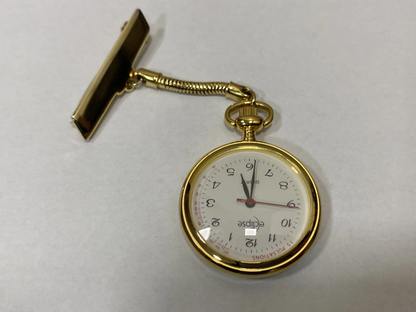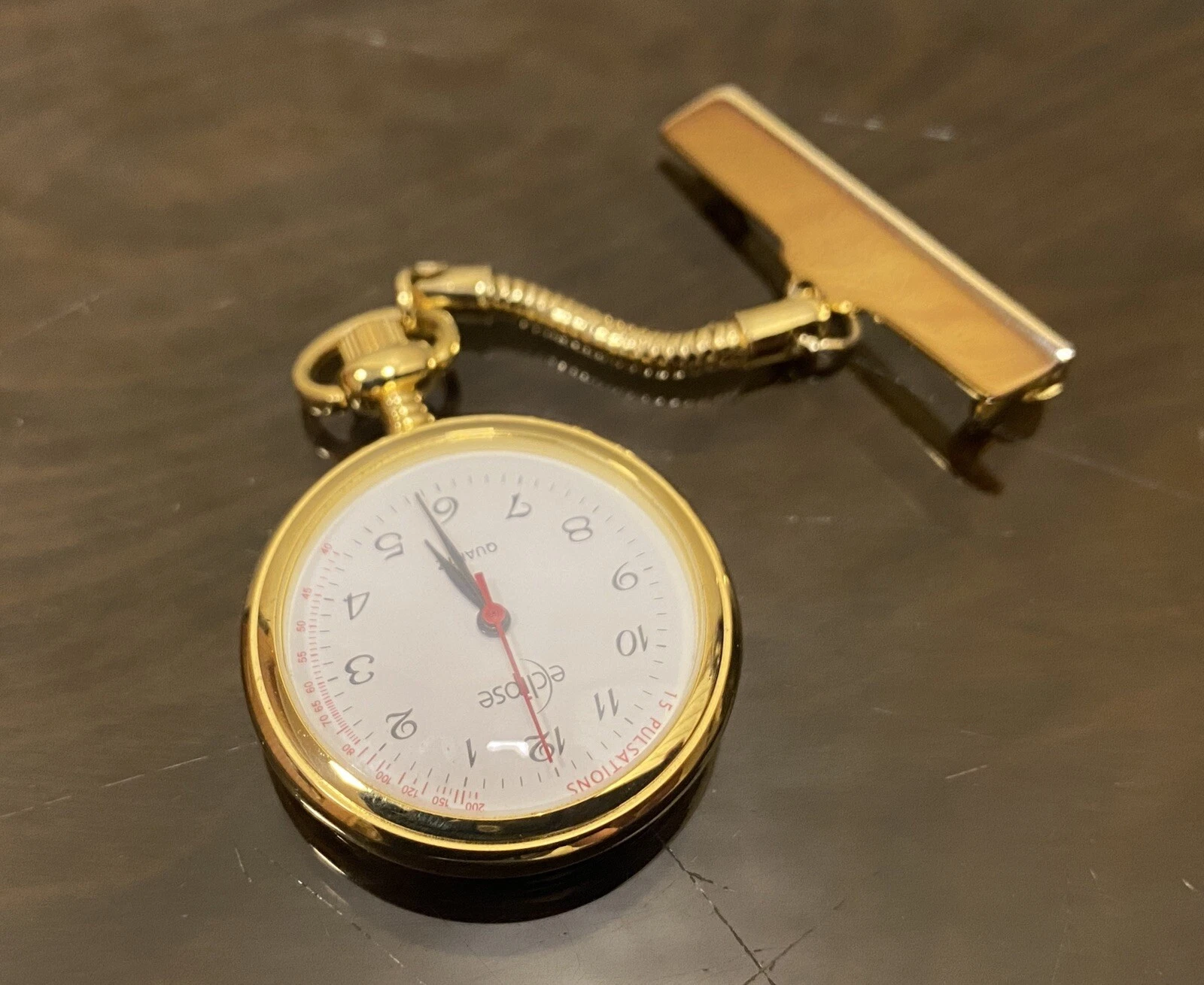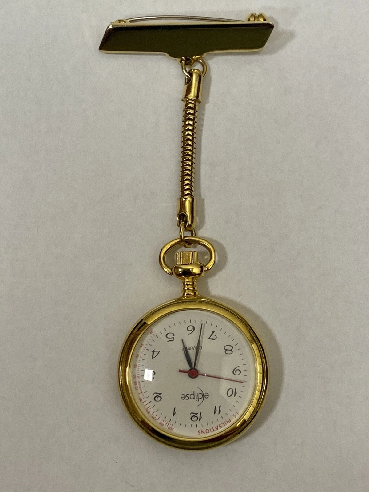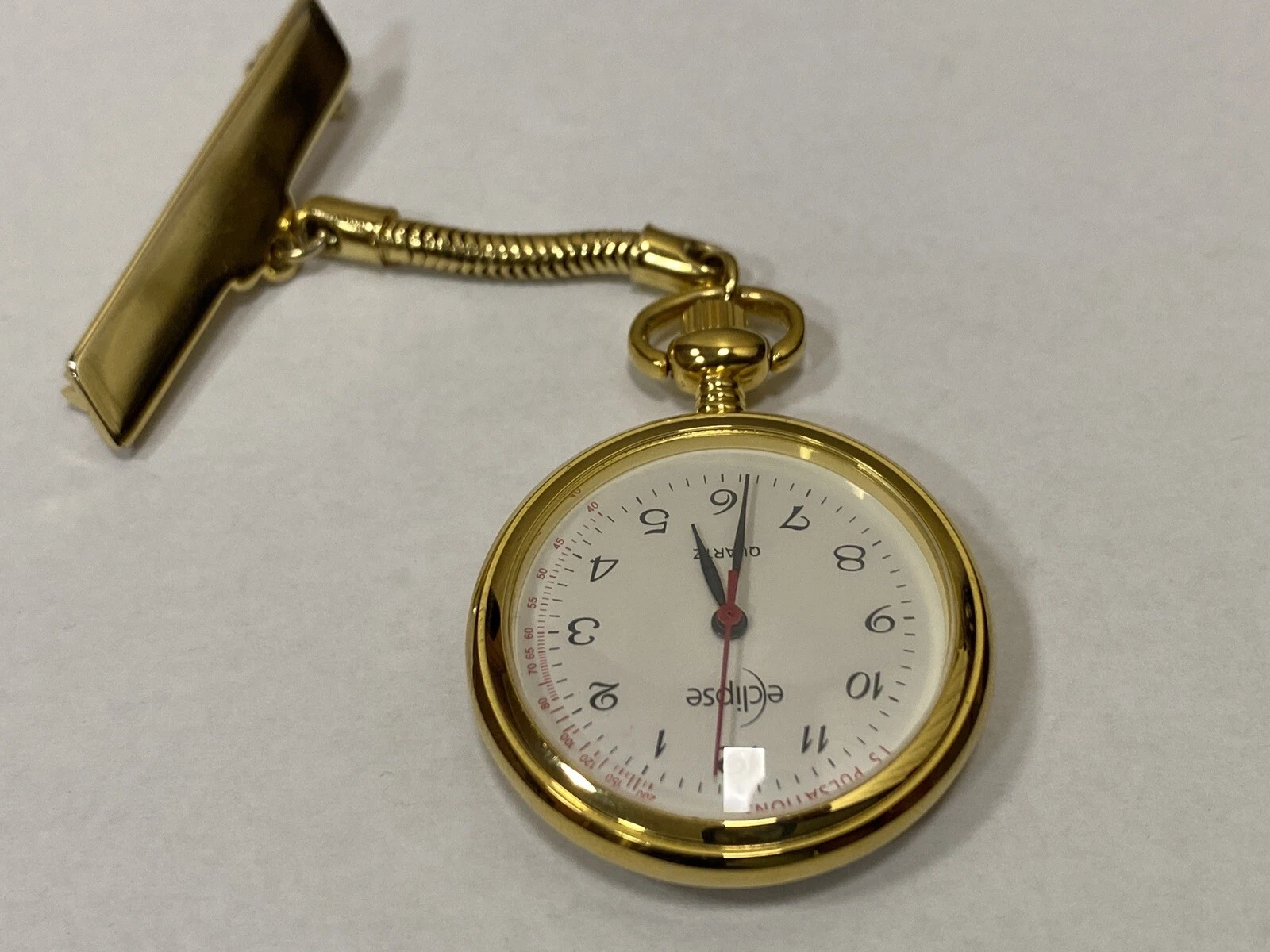 Eclipse Round Gold Tone Quartz Nurses Watch Miyota Co. Japan
