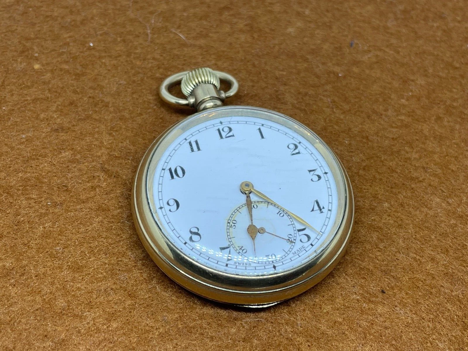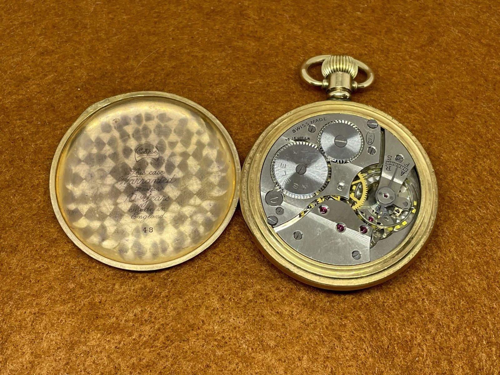 ECLIPSE GENTS POCKET WATCH FULLY WORKING SWISS MADE GOLD PLATED OPEN FACE USED