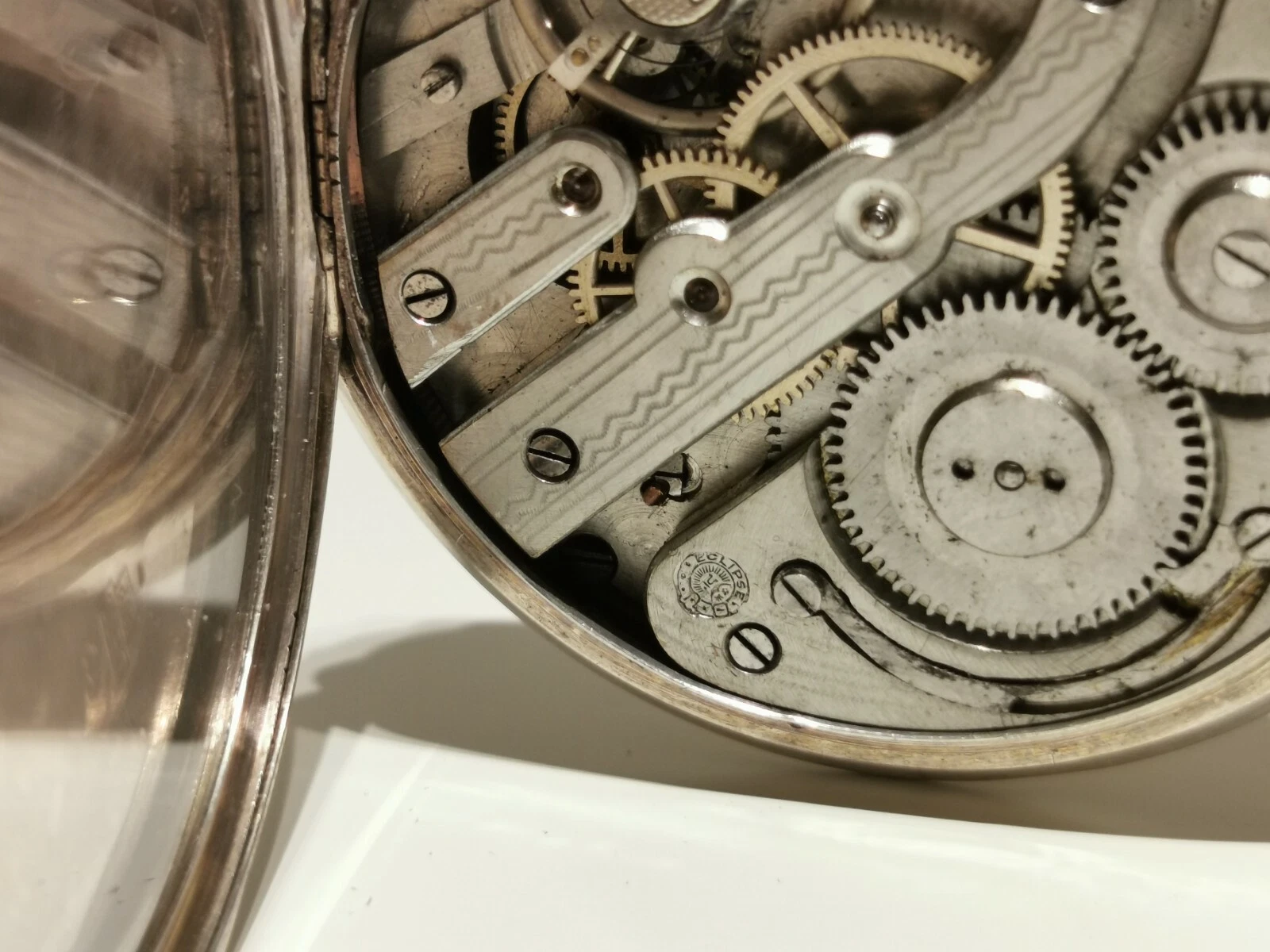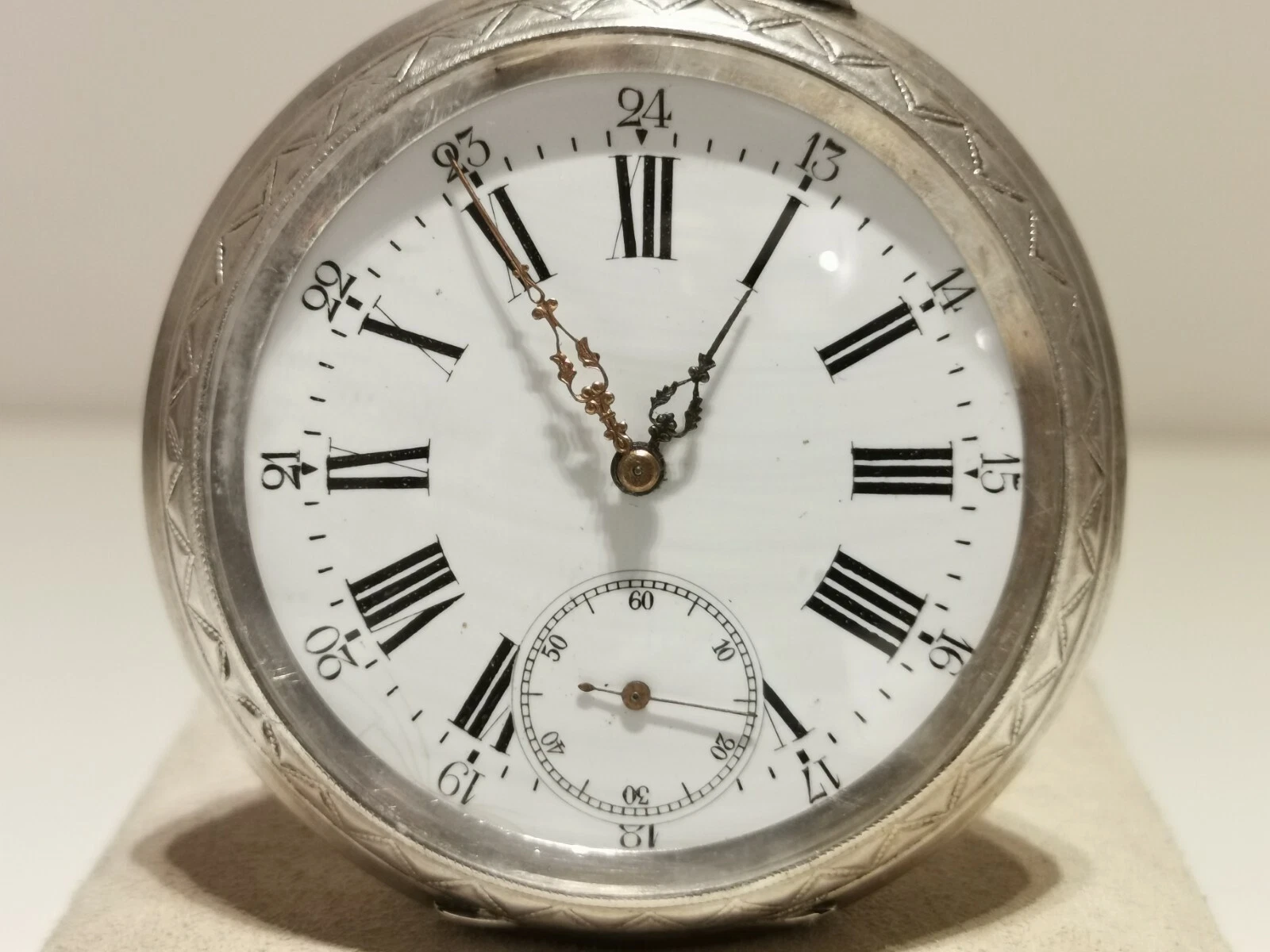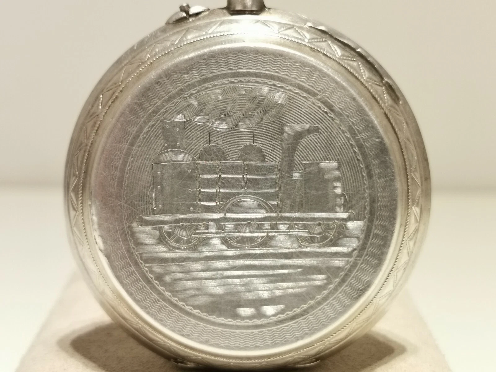 ANTIQUE BIG SWISS MEN'S SILVER POCKET RAILROAD WATCH "ECLIPSE" WITH LOCOMOTIVE