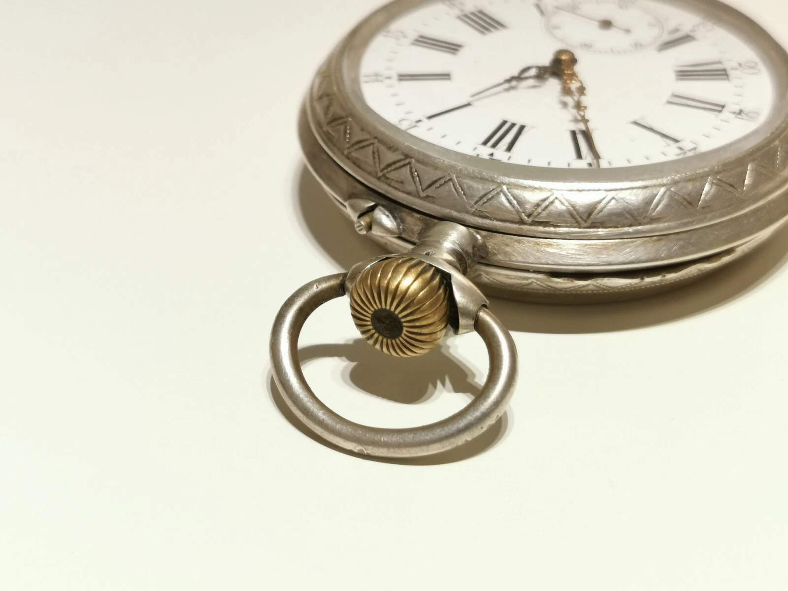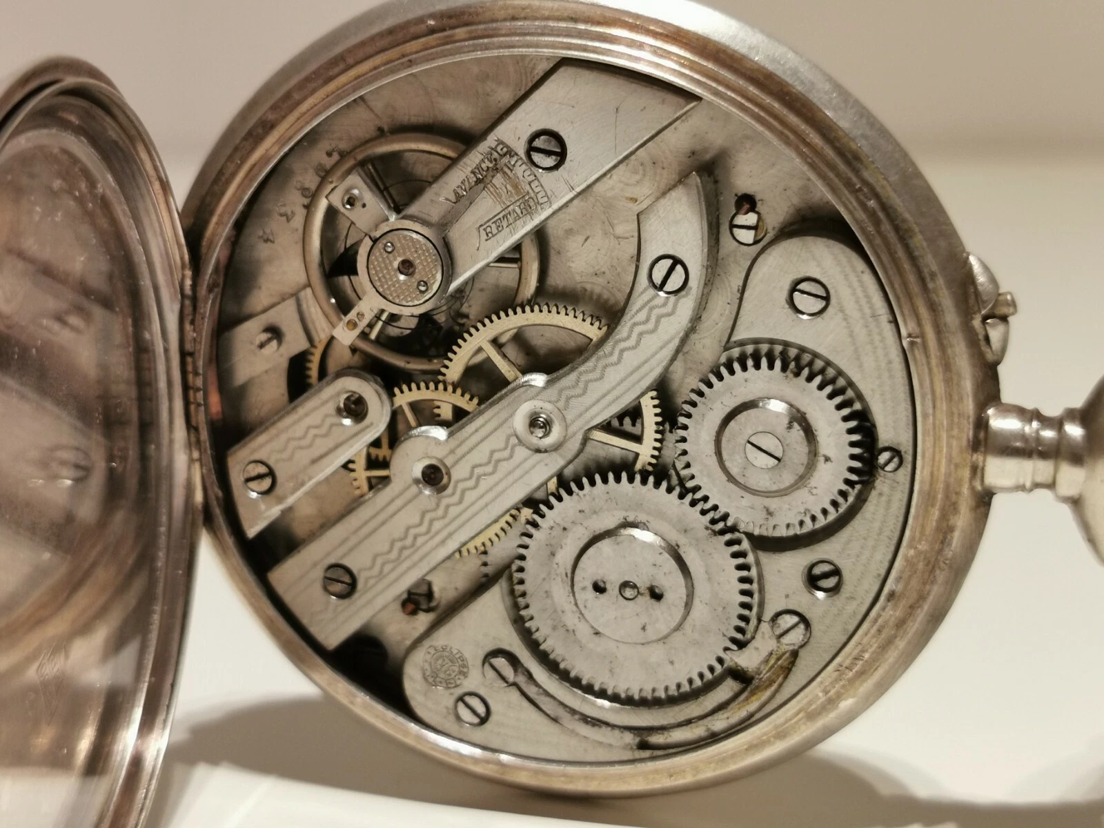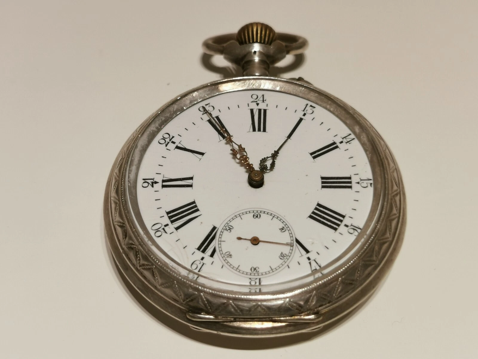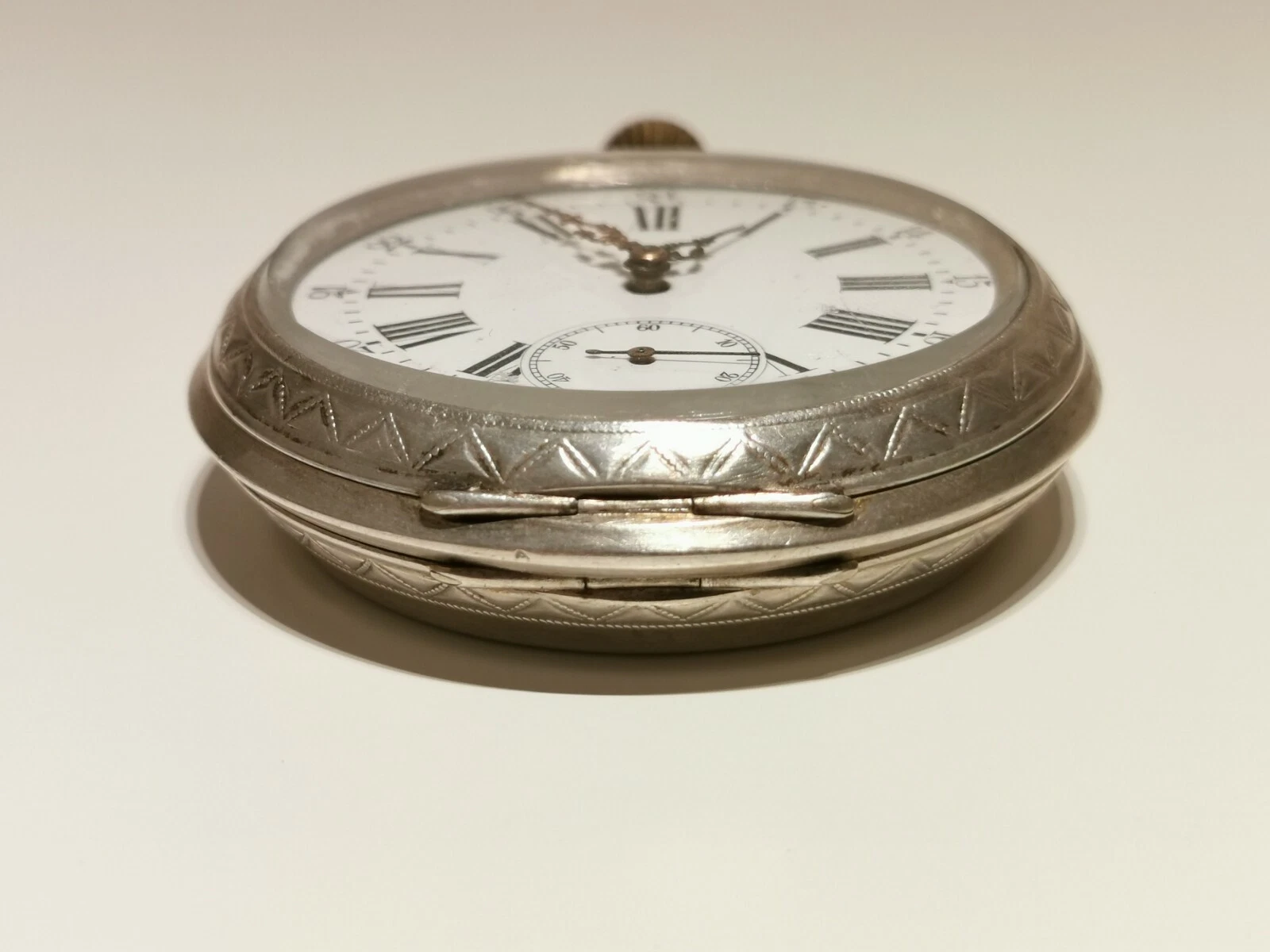 ANTIQUE BIG SWISS MEN'S SILVER POCKET RAILROAD WATCH "ECLIPSE" WITH LOCOMOTIVE