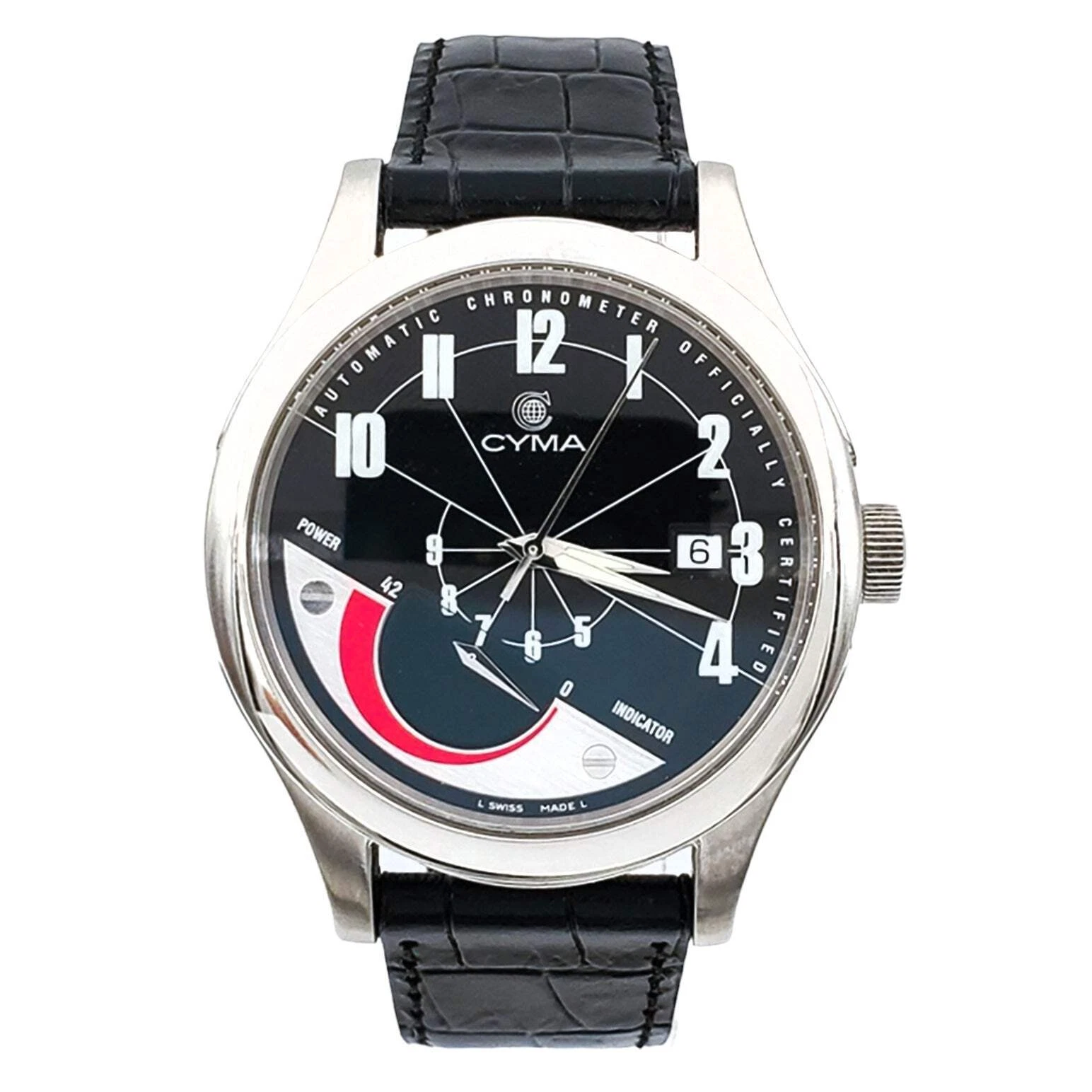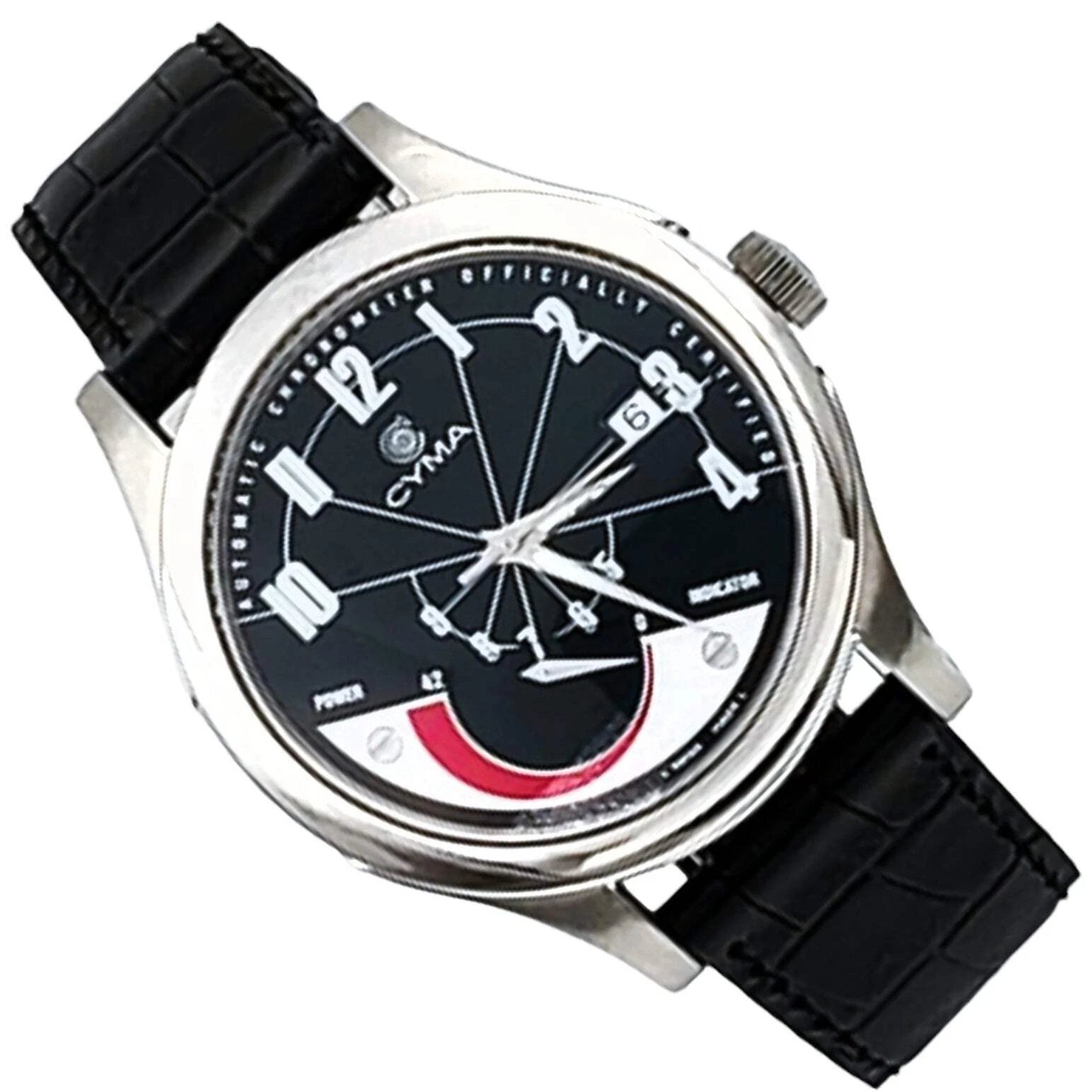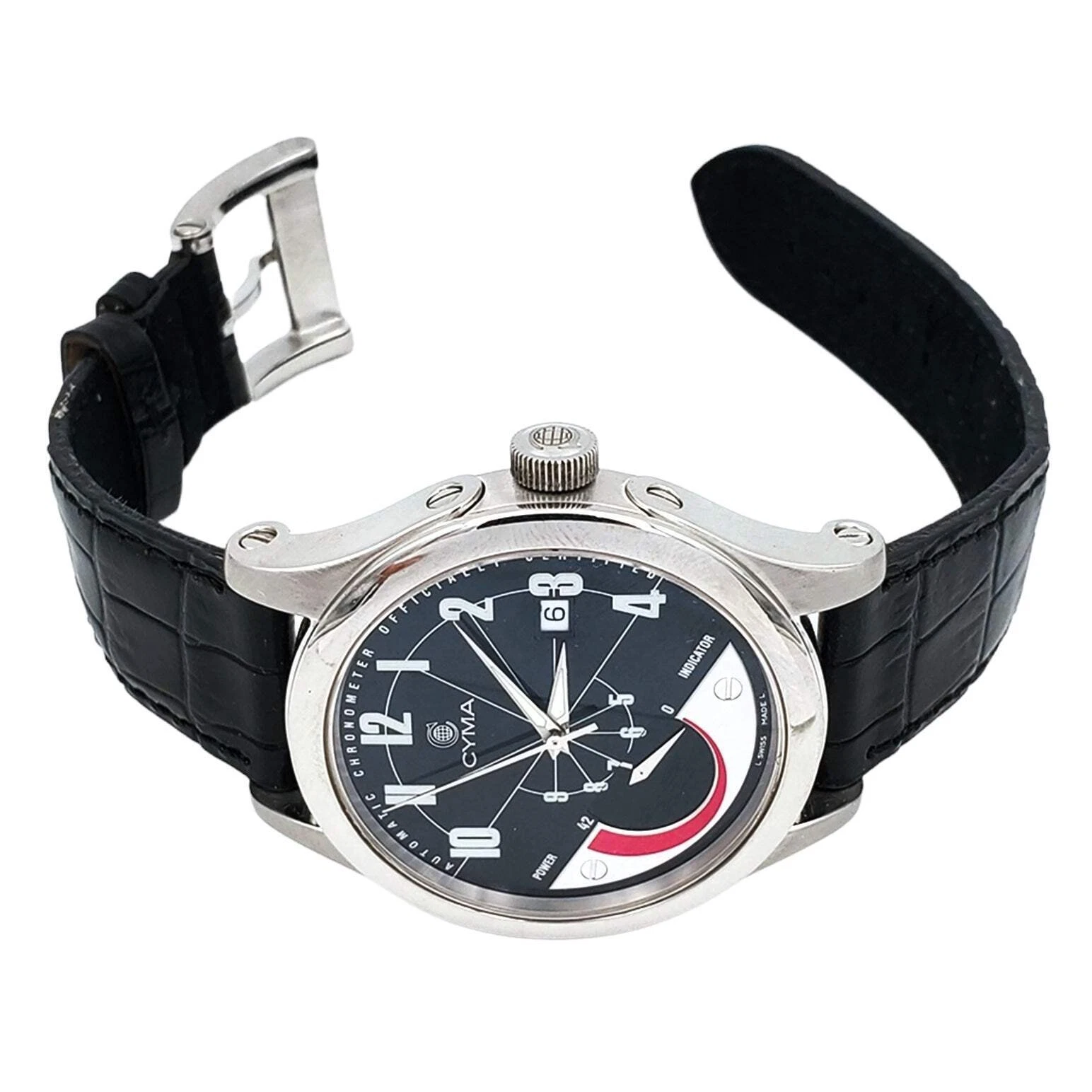 Men's CYMA Chronometer 40mm Imperium XL Steel Wristwatch w/Black Leather Strap.