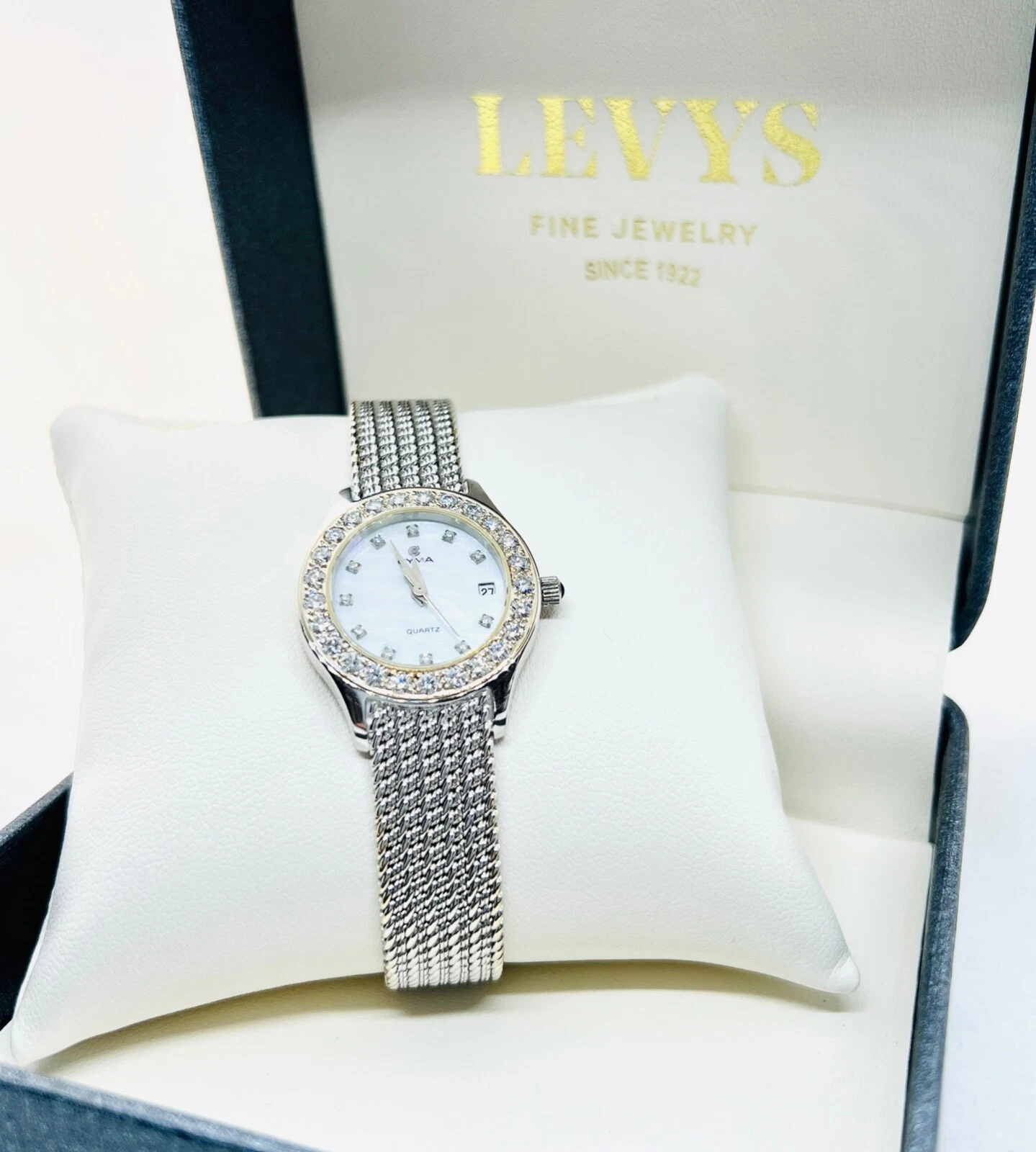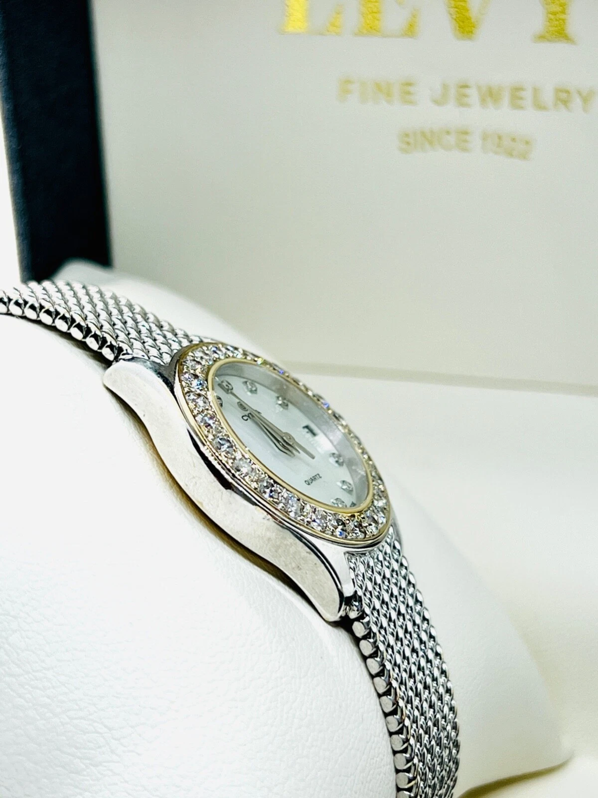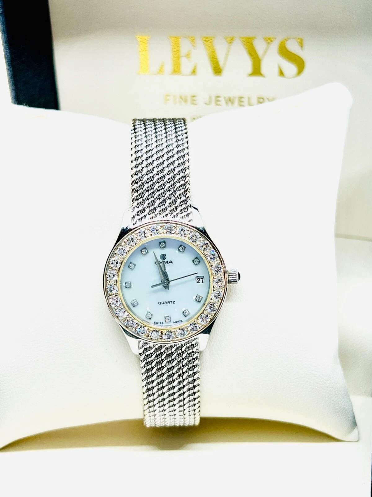 Cyma 18KWhite Gold Diamond & Mother of Pearl Ladies Watch