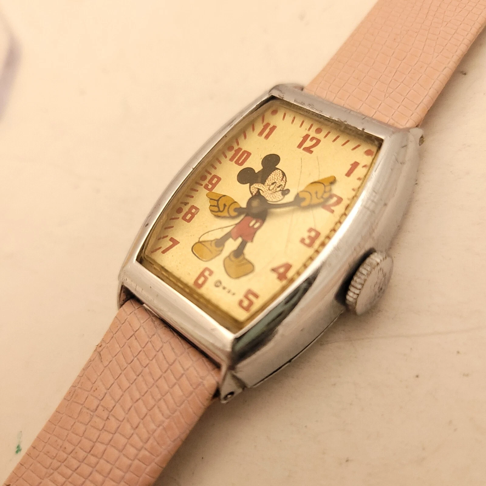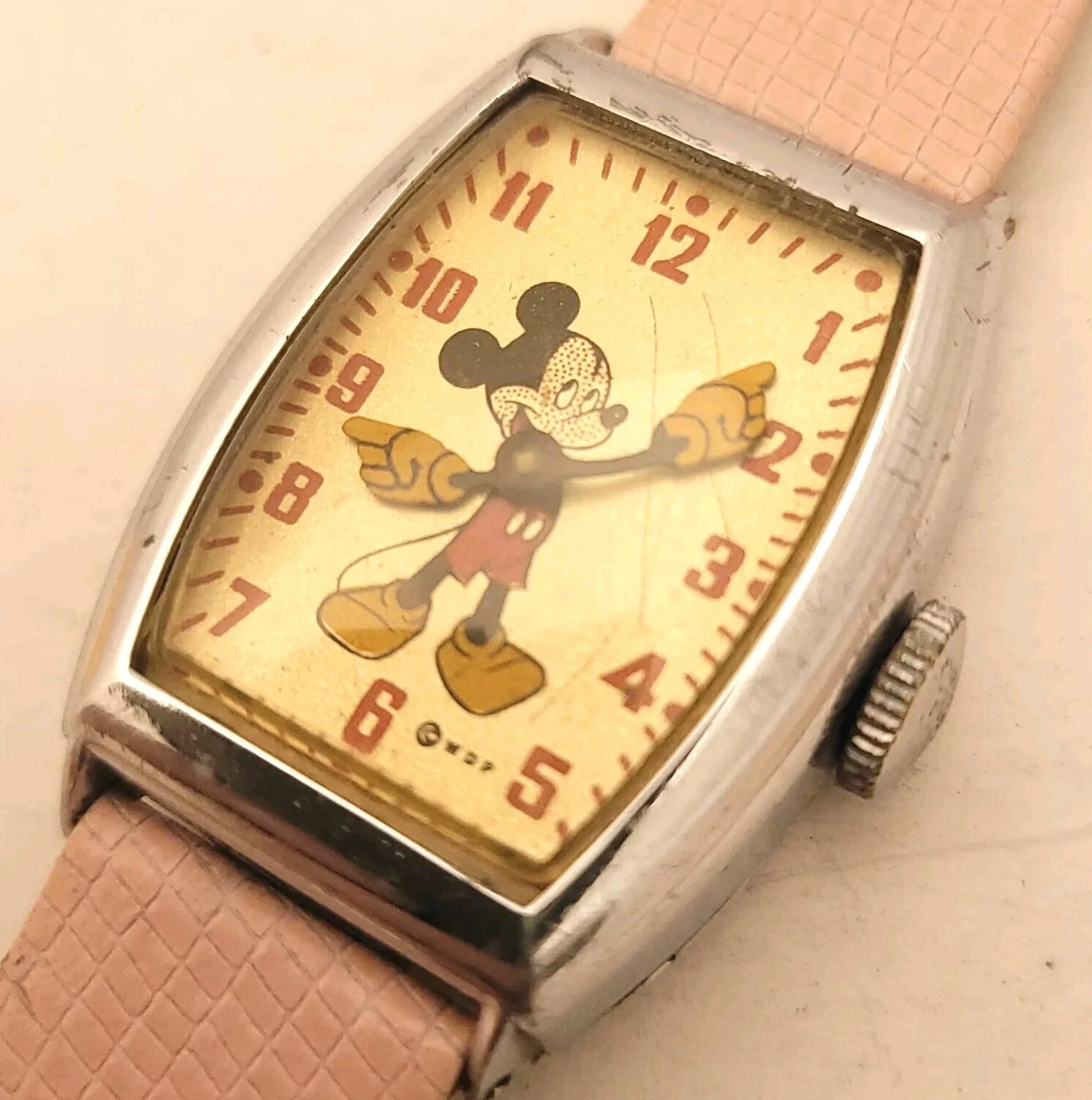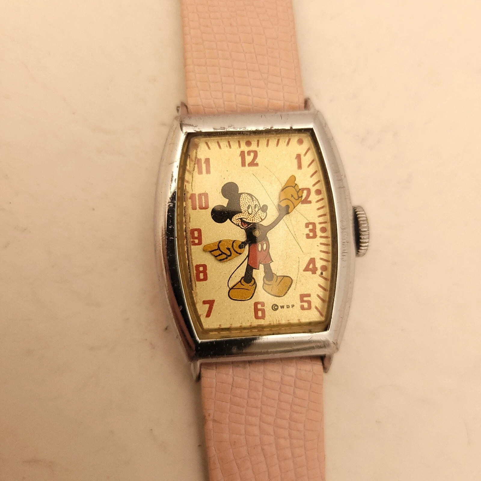 FM6 RARE VINTAGE MICKEY MOUSE BIG HANDS WATCH WALT DISNEY PRODUCTION RUNS WELL!