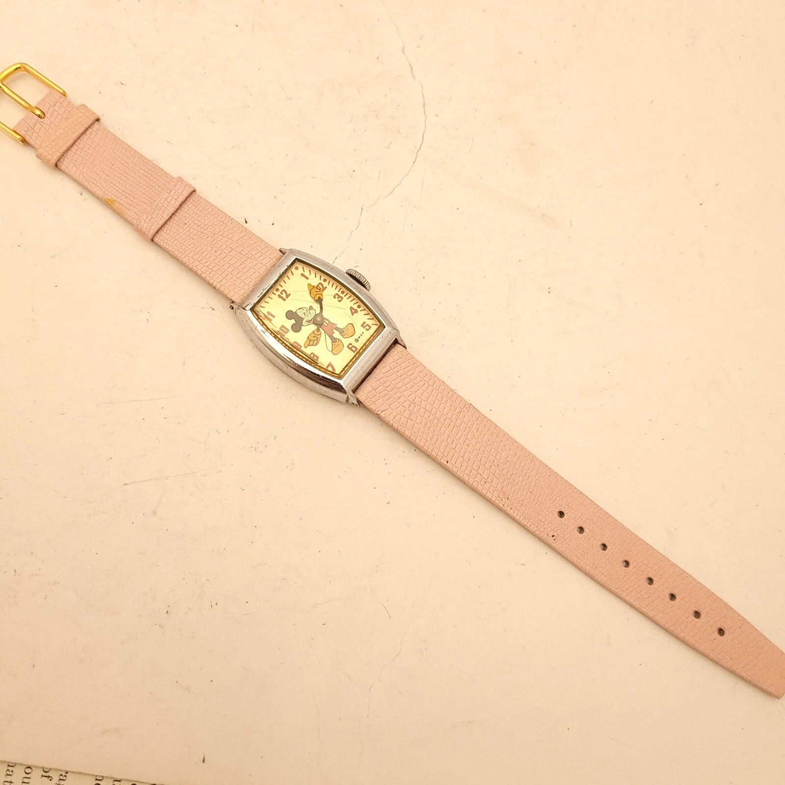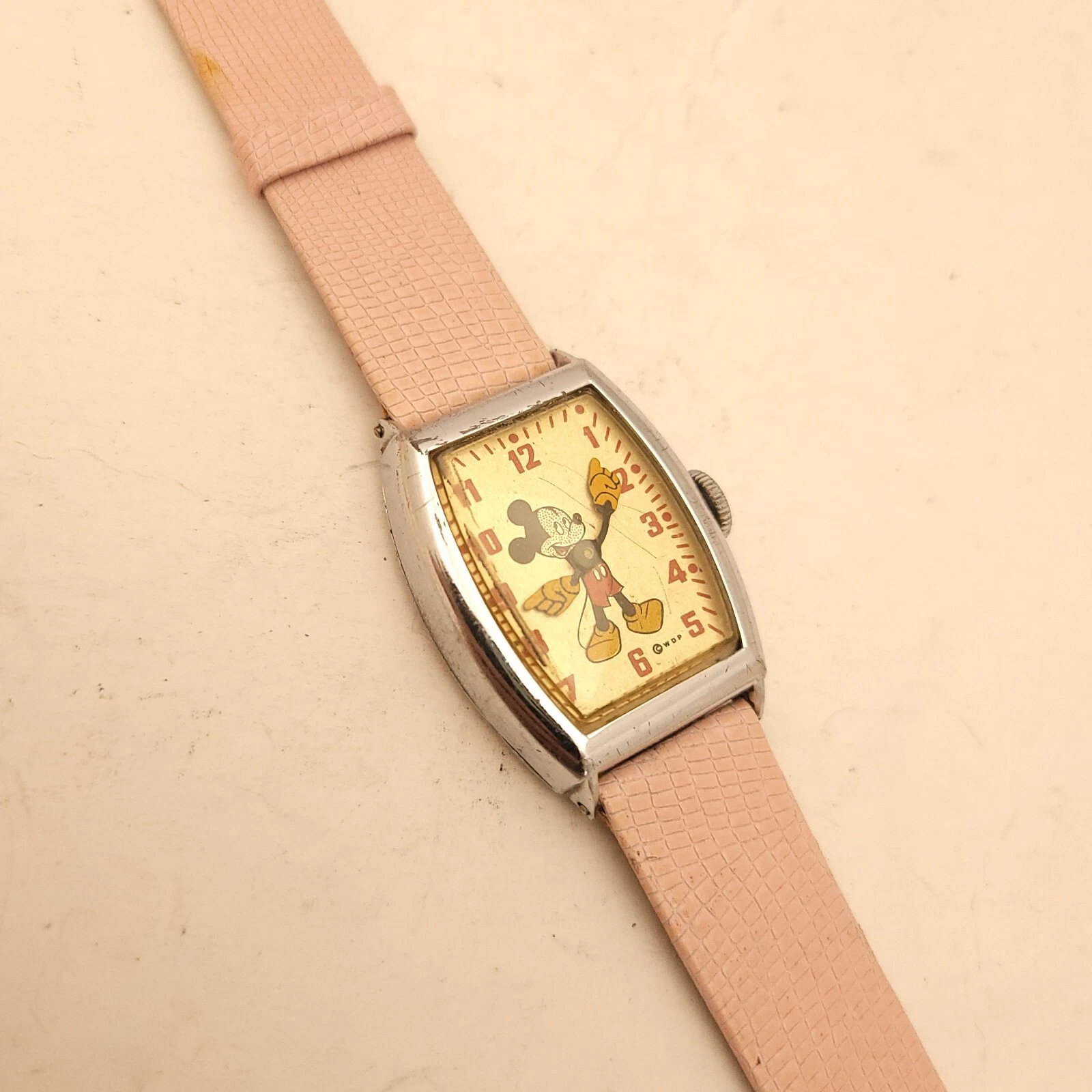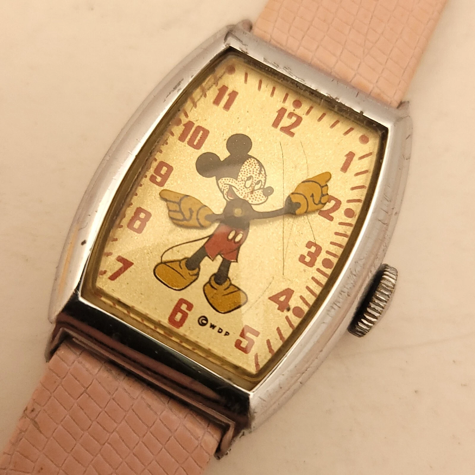 FM6 RARE VINTAGE MICKEY MOUSE BIG HANDS WATCH WALT DISNEY PRODUCTION RUNS WELL!