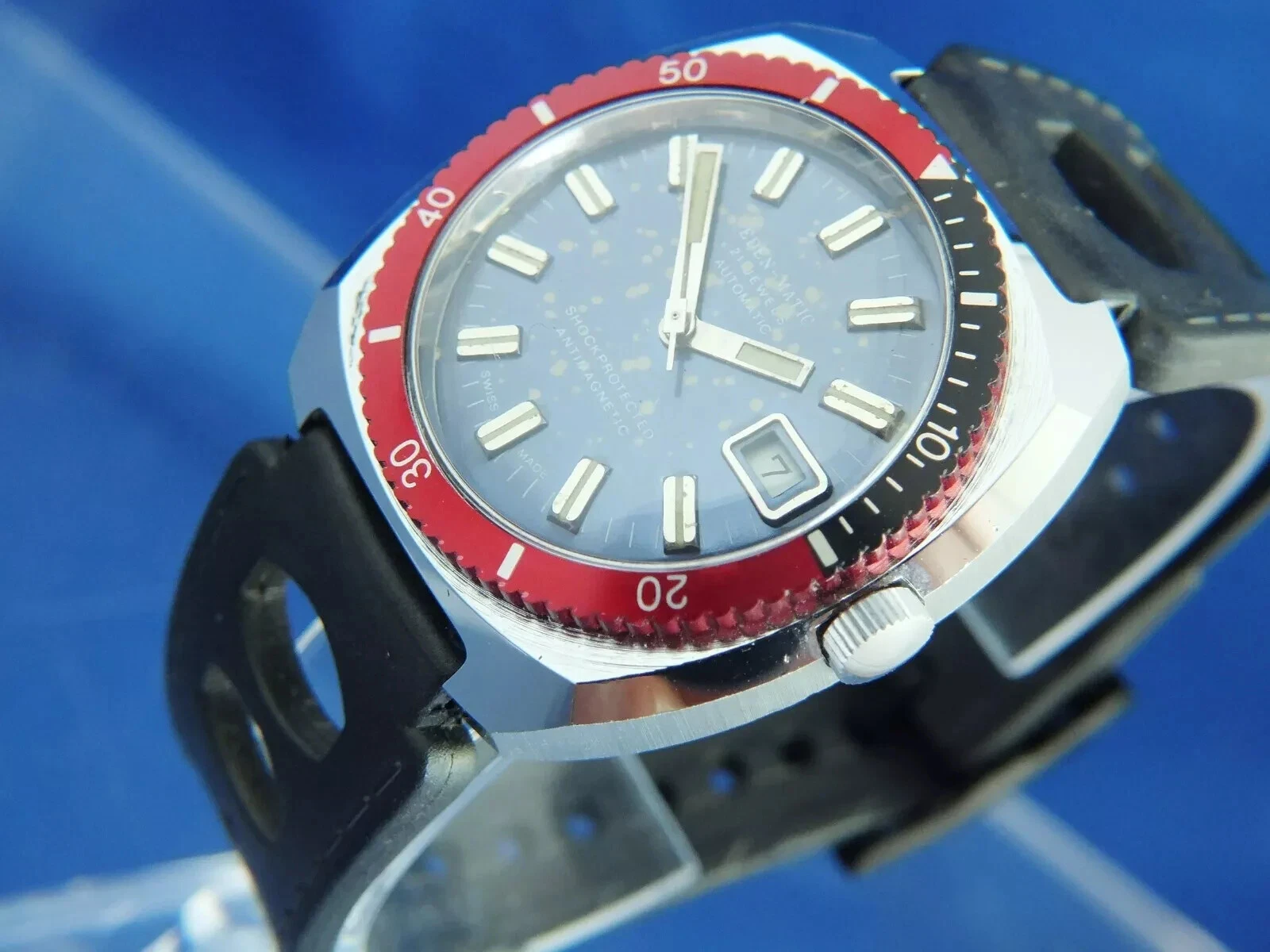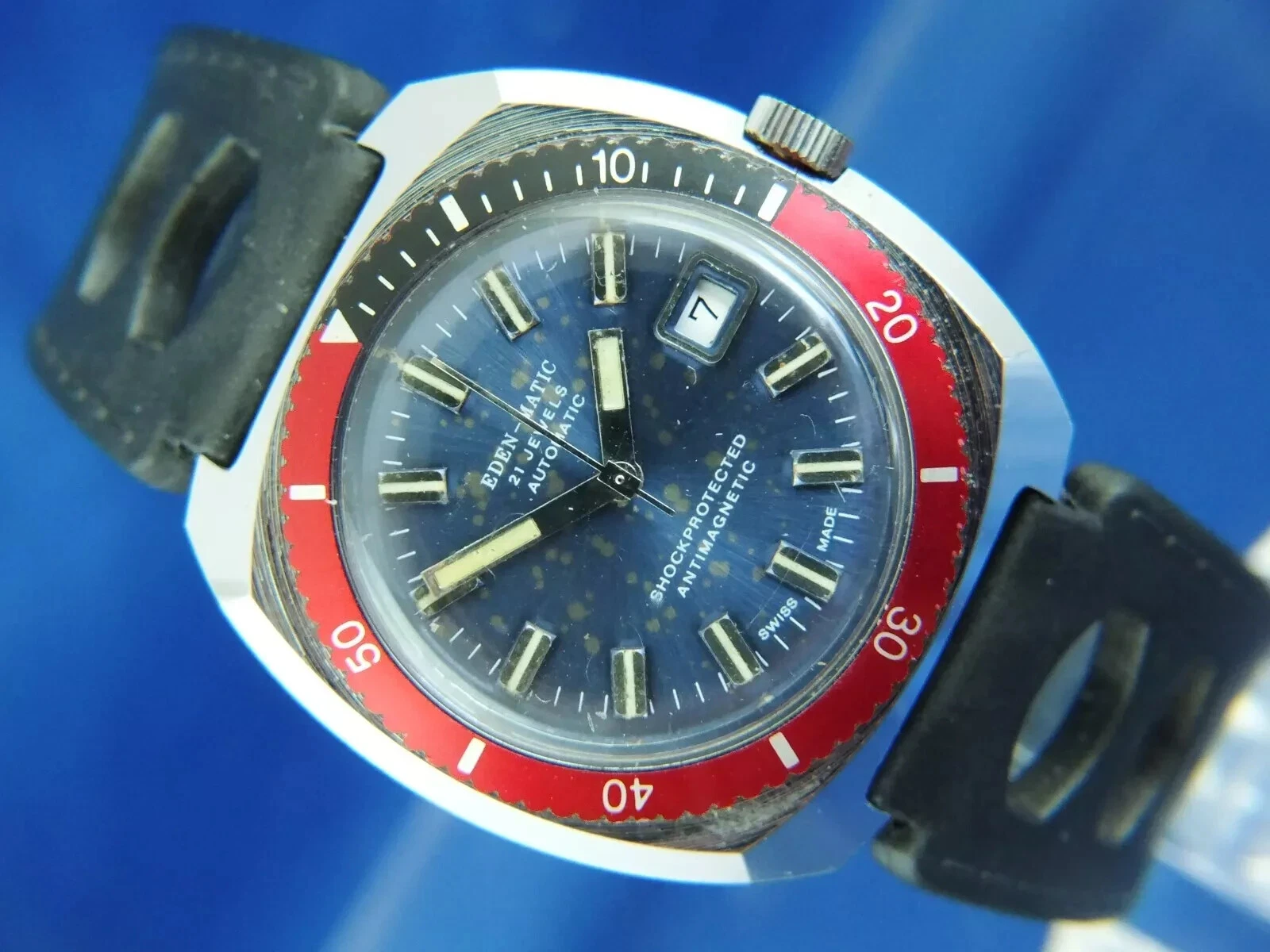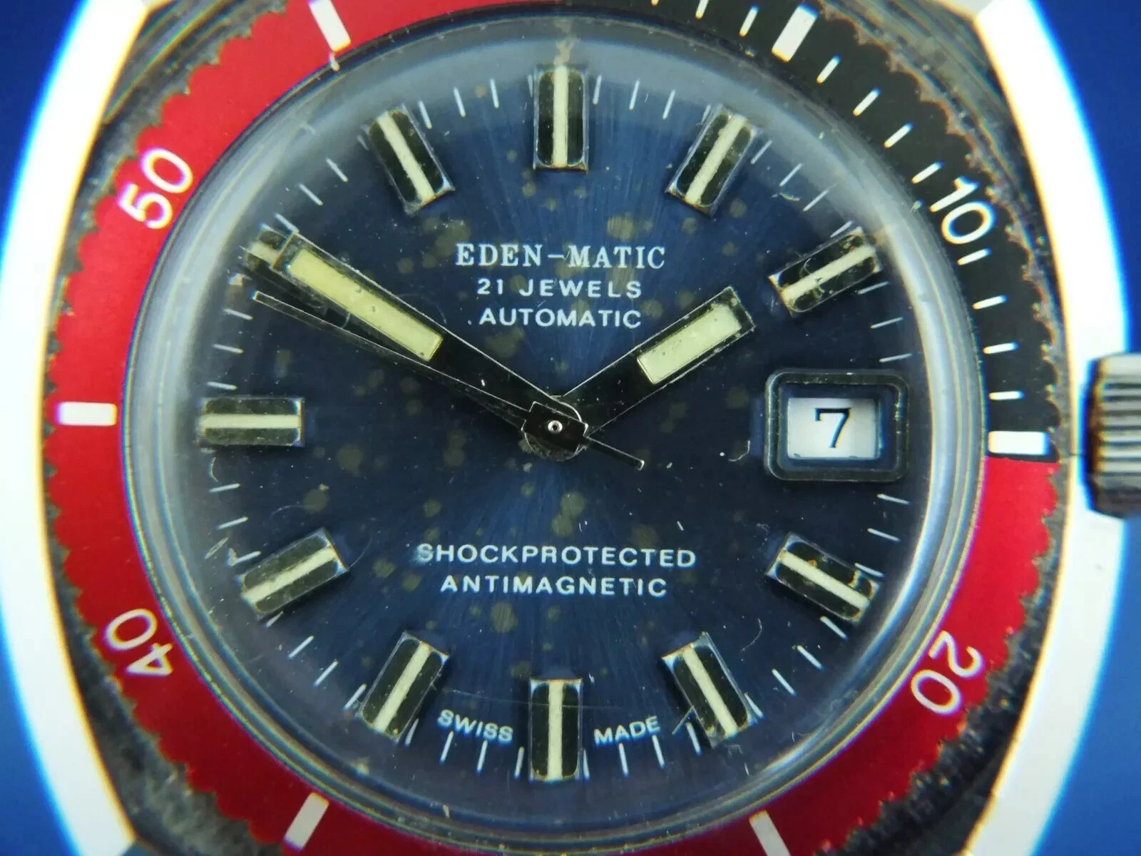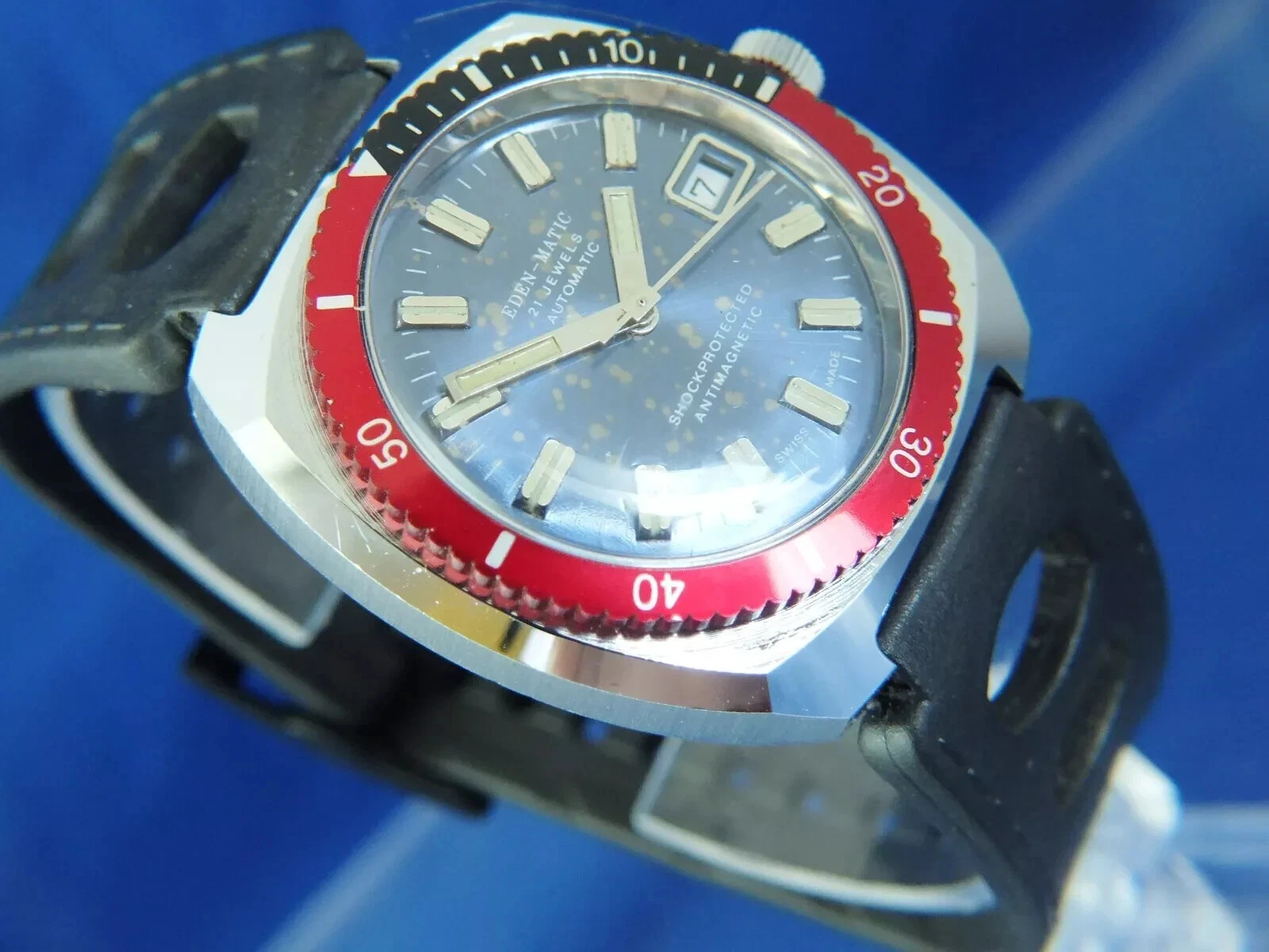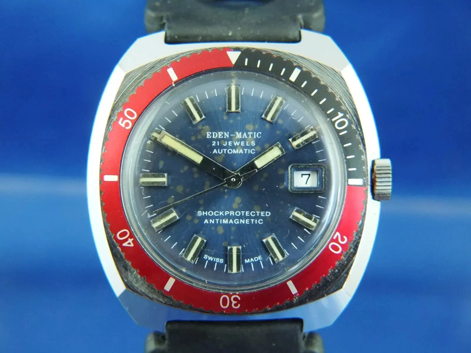 Eden Matic Automatic Diver Watch 1960s NOS Vintage Cal EB 8135 Tropical Dial
