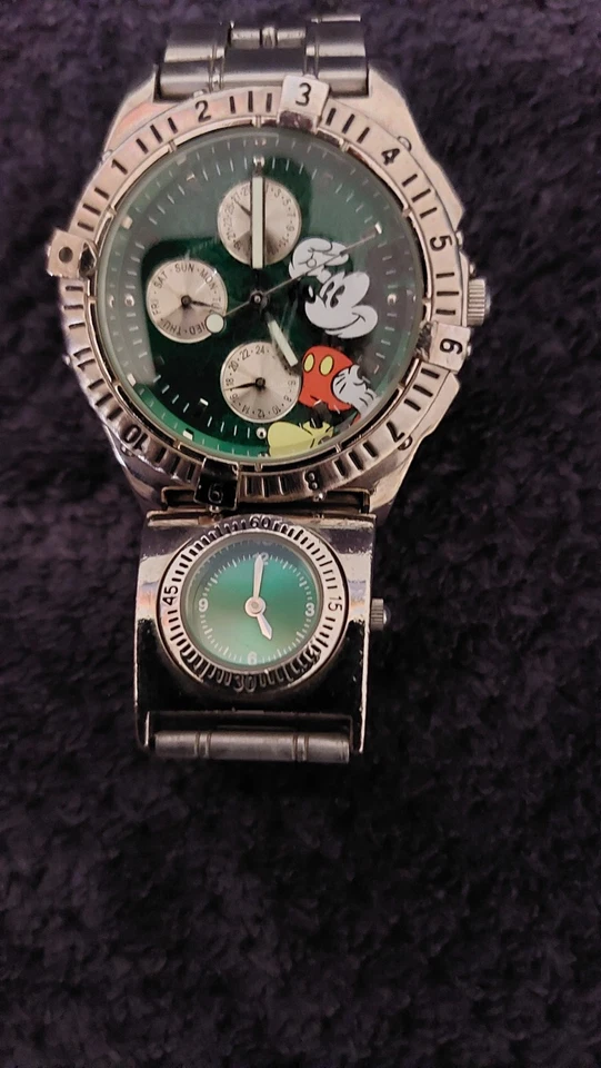 MICKEY MOUSE WATCH DISNEY CHRONO STAINLESS GREEN DIAL FREE Shipping