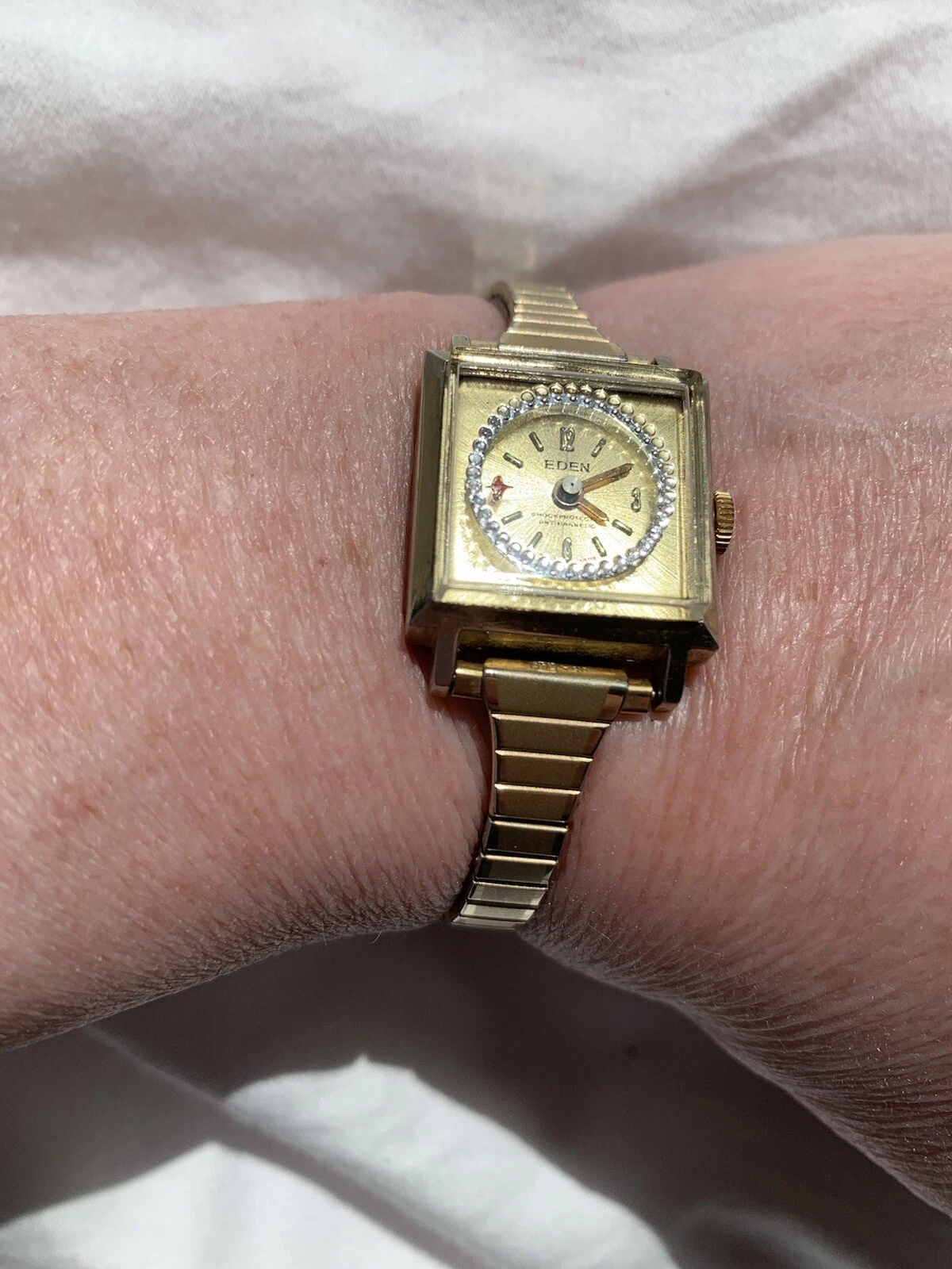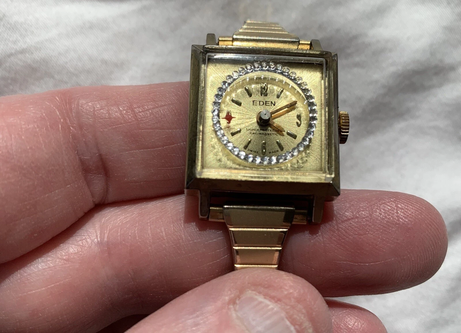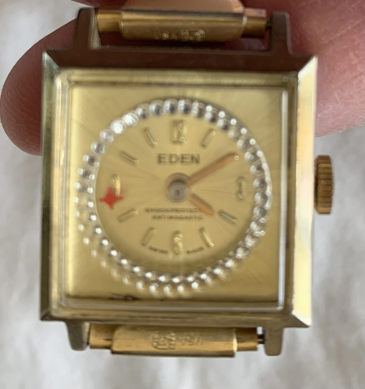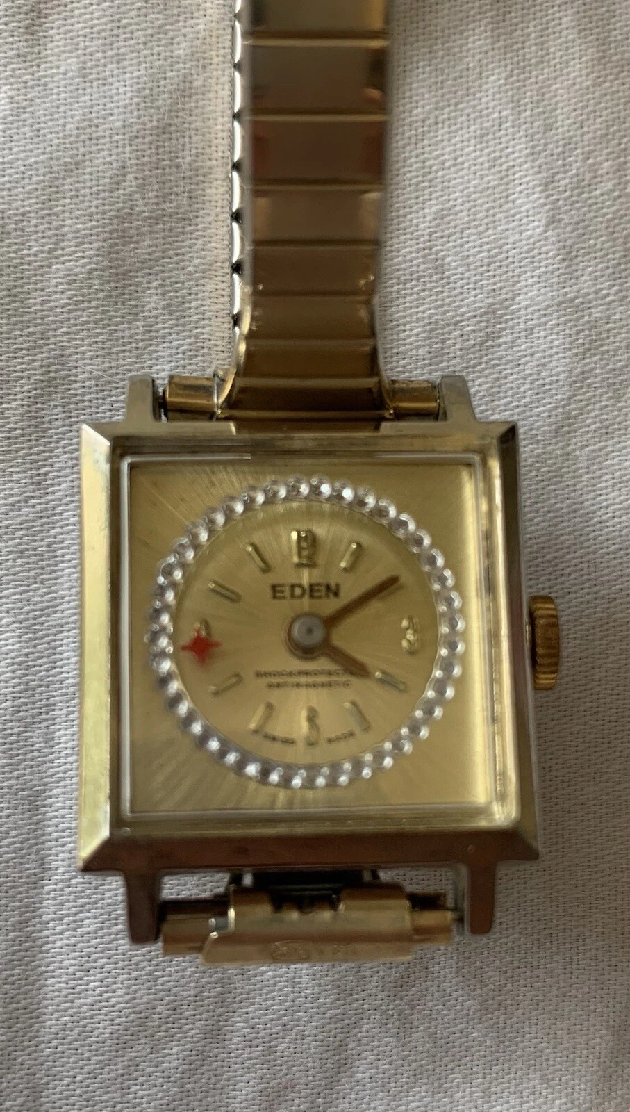Vintage EDEN Watch Womens Gold Tone Stainless Steel Swiss Made Rhinestones Dial