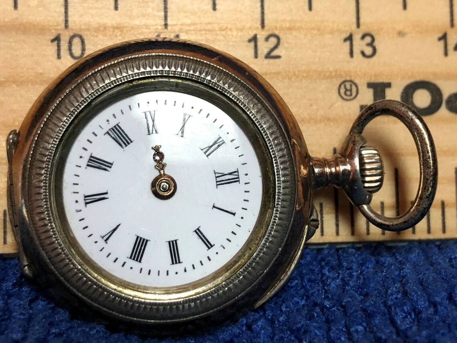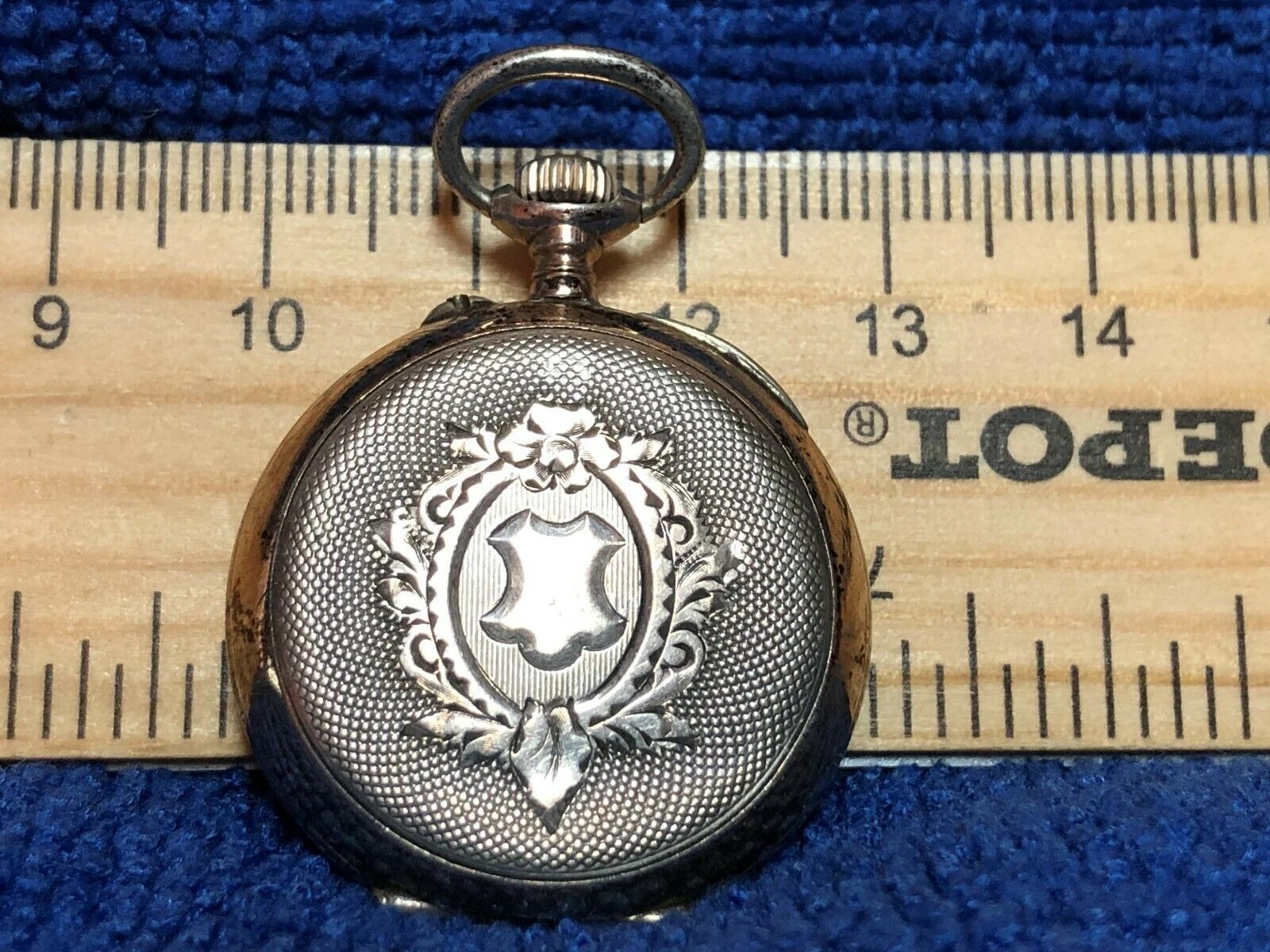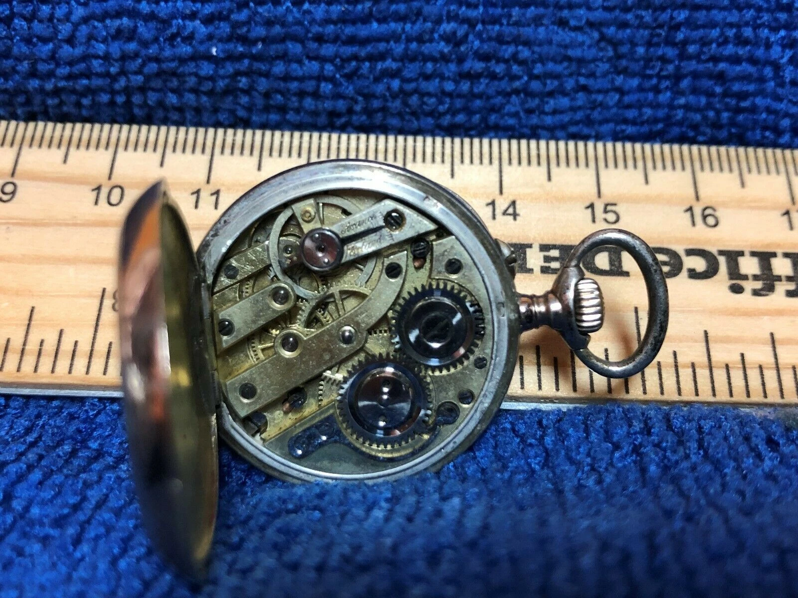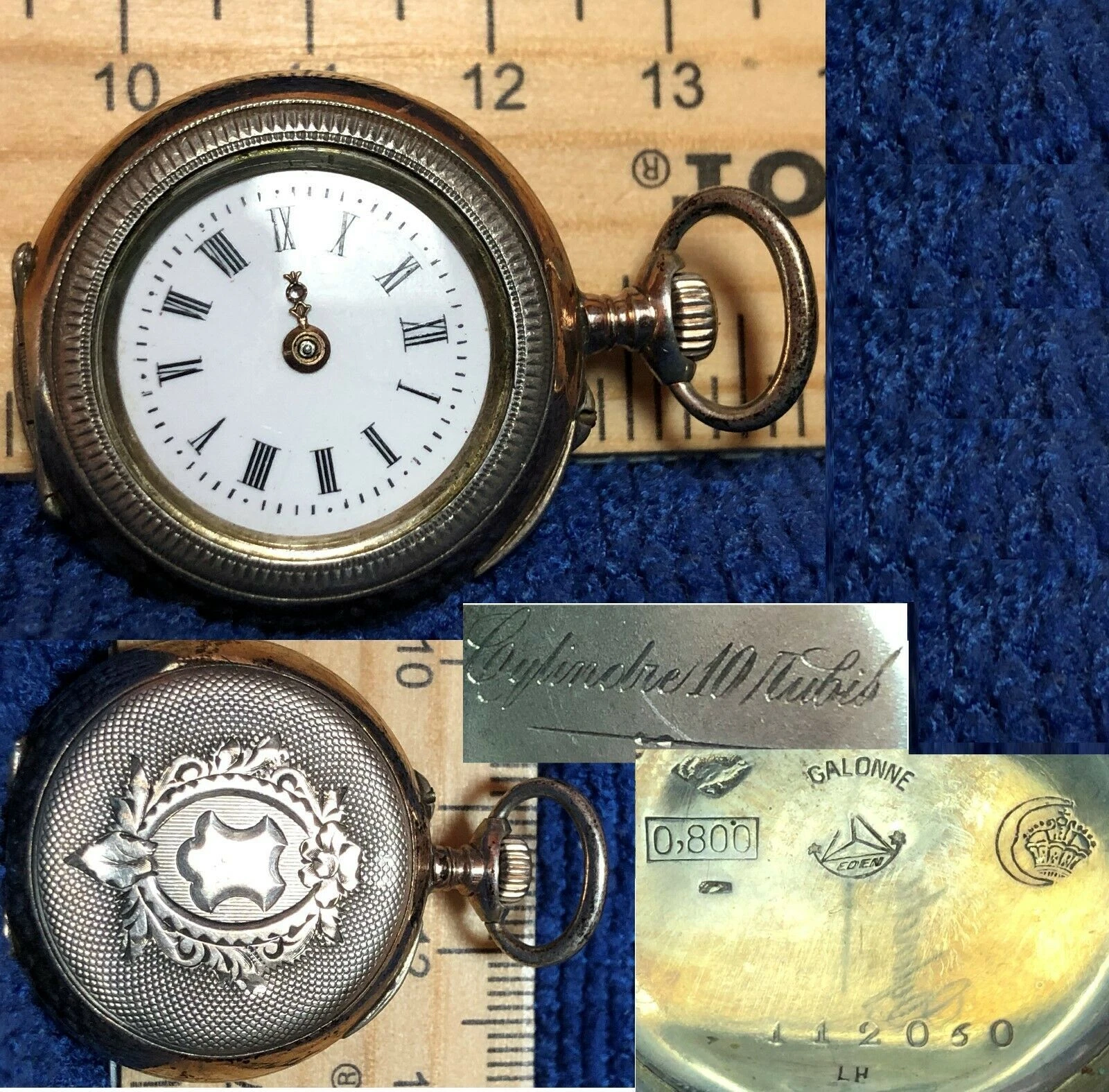 Antique Pocket Watch Gallone 0,800 Silver case gold wash 10 Rubis Eden no hands