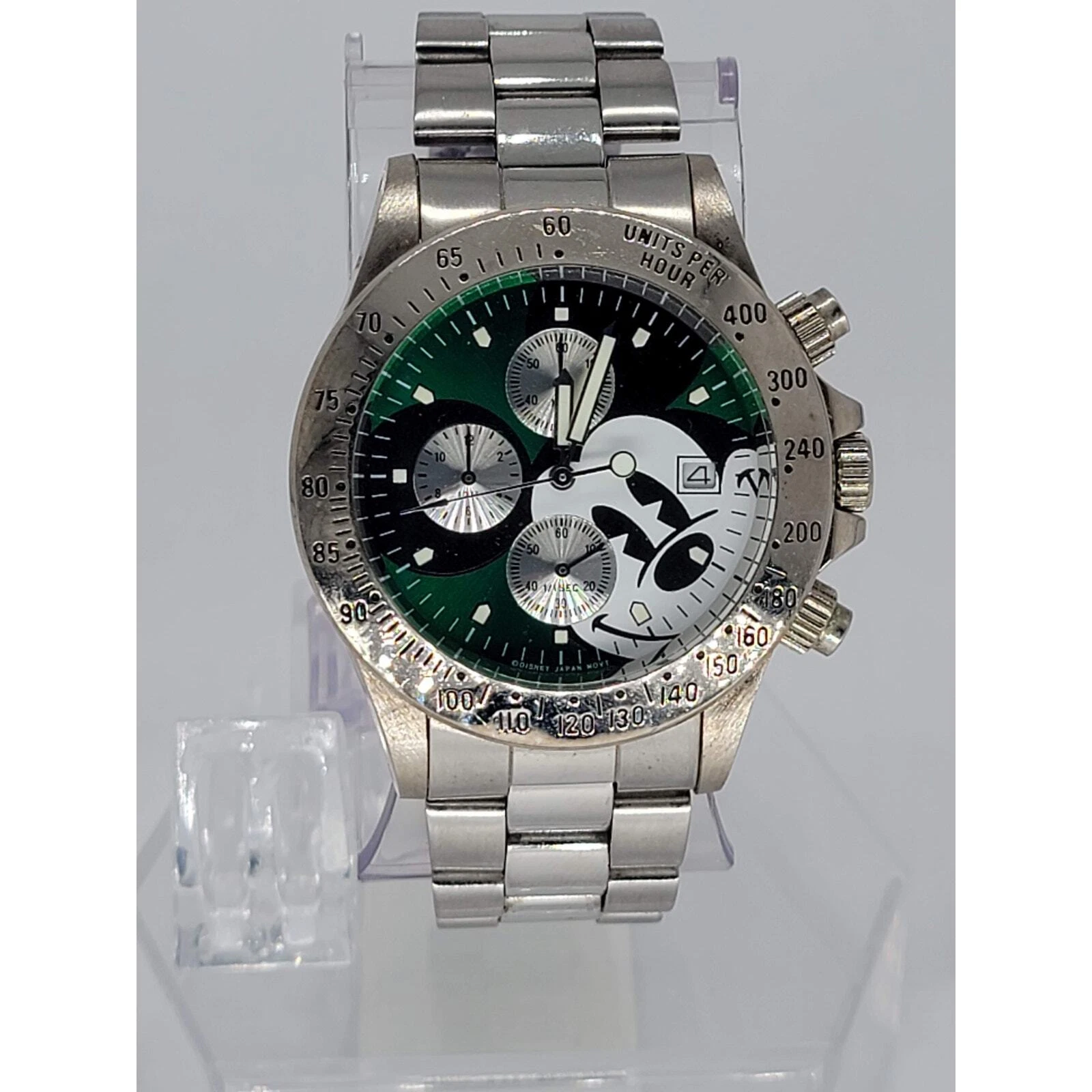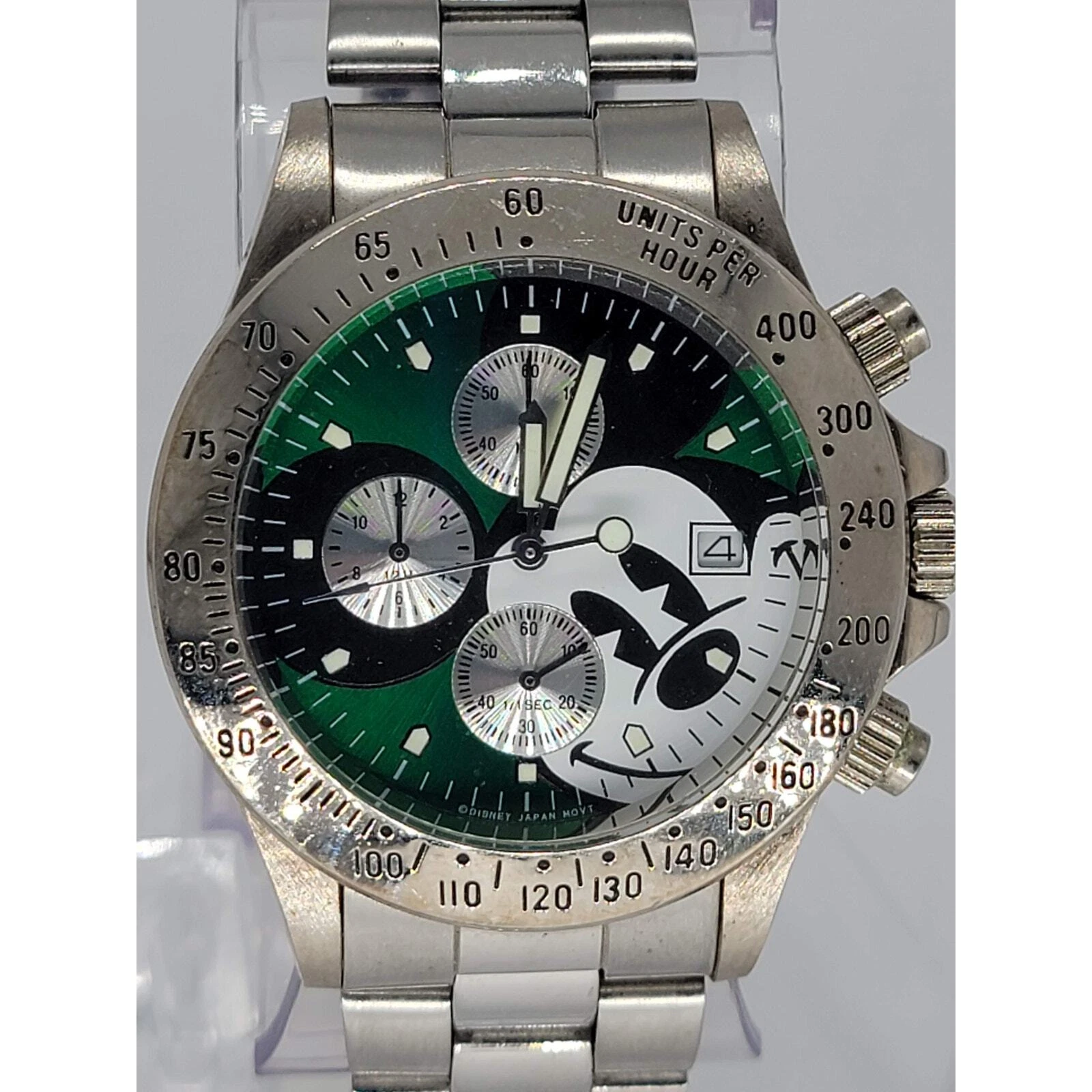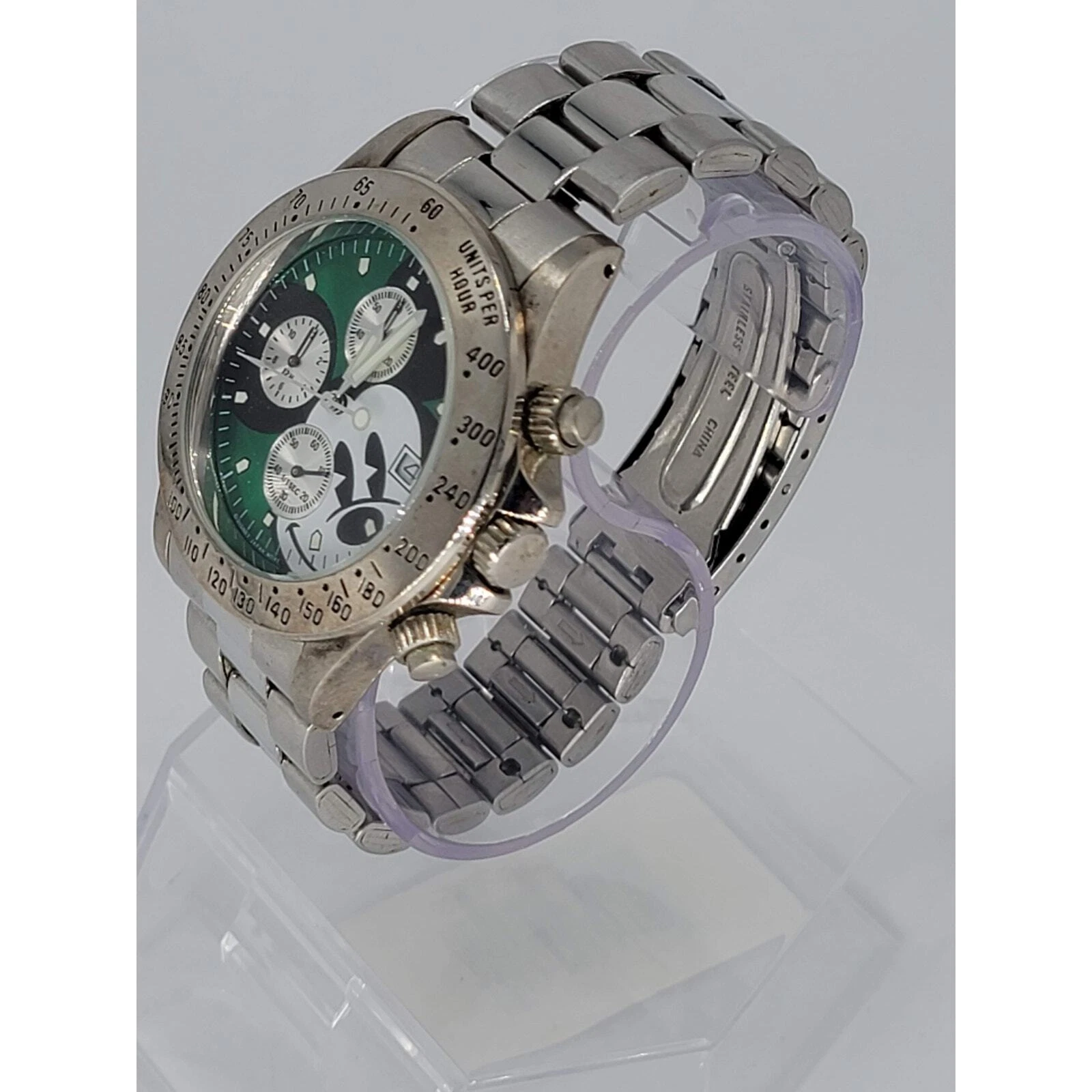 Rare Vintage Mens Disney Mickey Mouse Green Dial Chronograph 40mm Watch