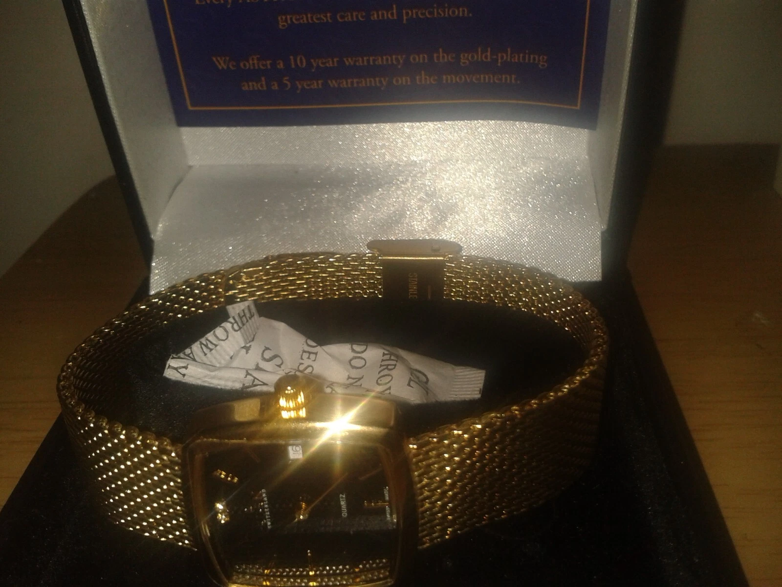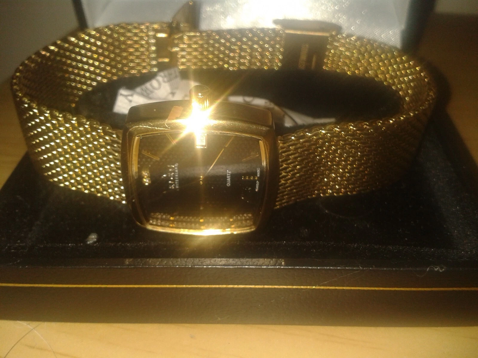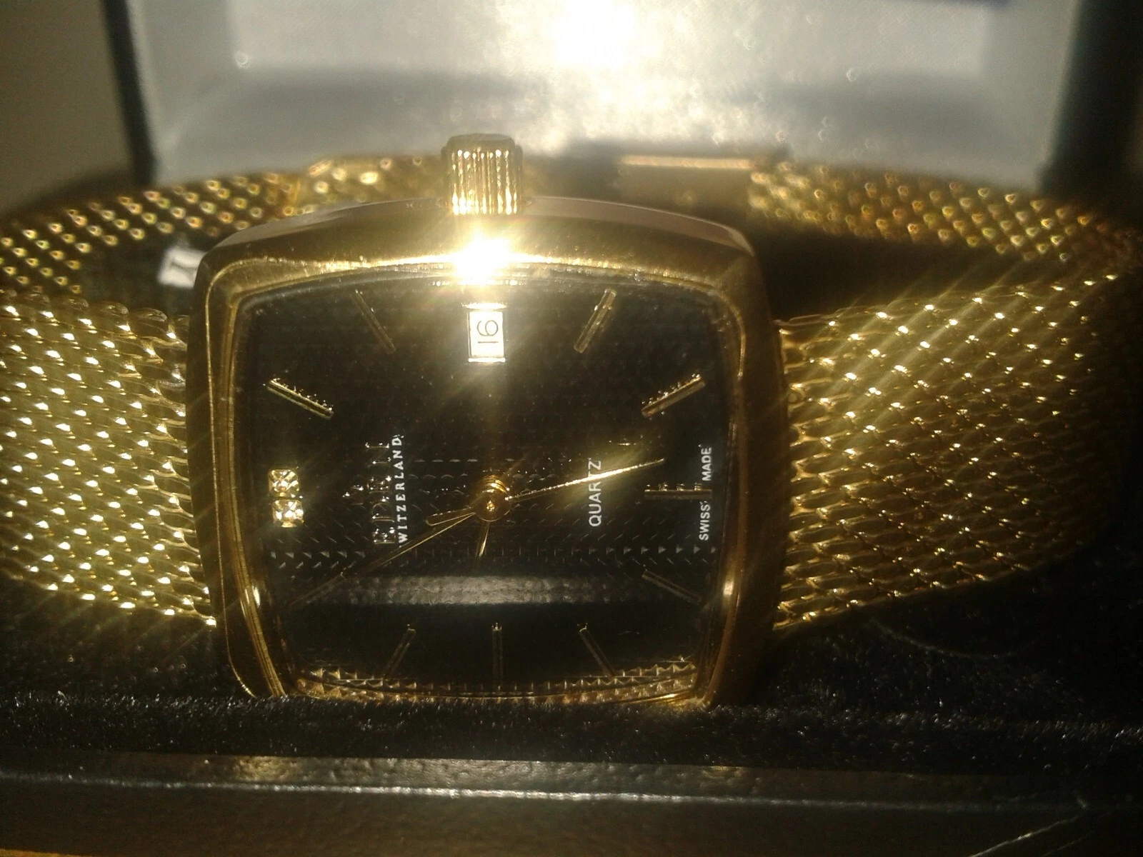 Beautiful vintage gold tone unisex Eden quartz 1 jewel watch. Boxed. (D23WB)