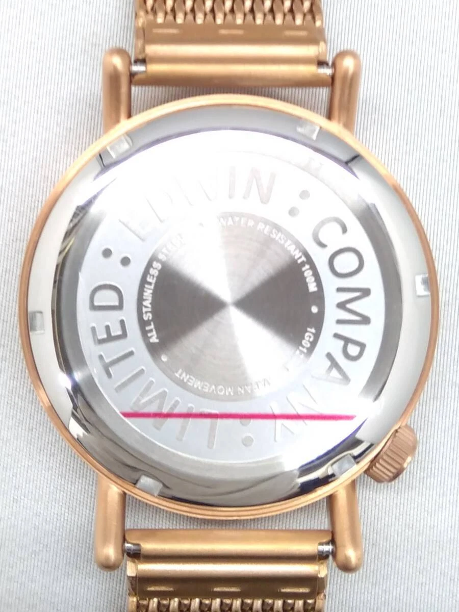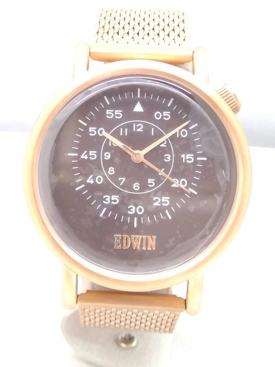 EDWIN EW1G012 Quartz Unisex Used Watch SS Water Resistant Black Gold Dial
