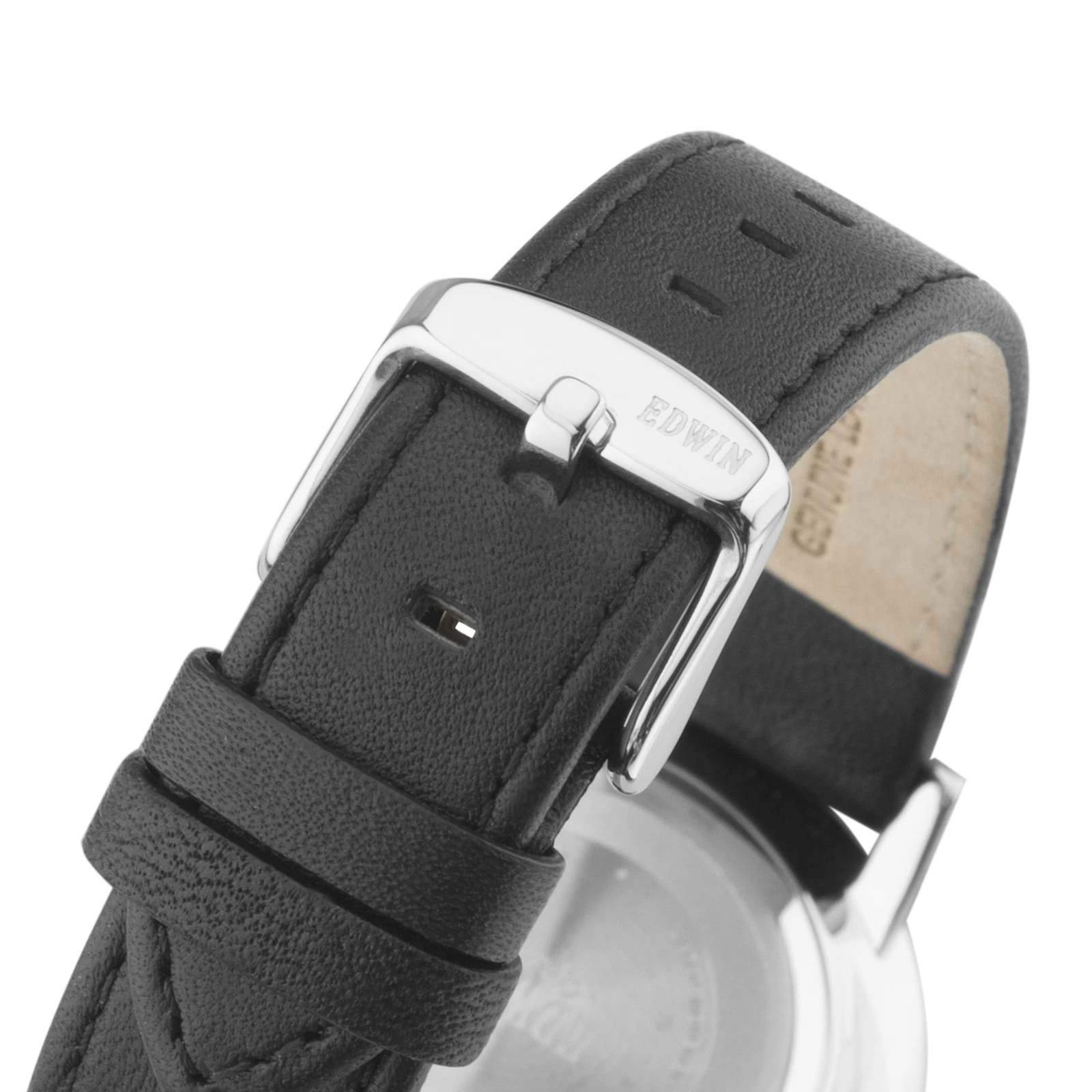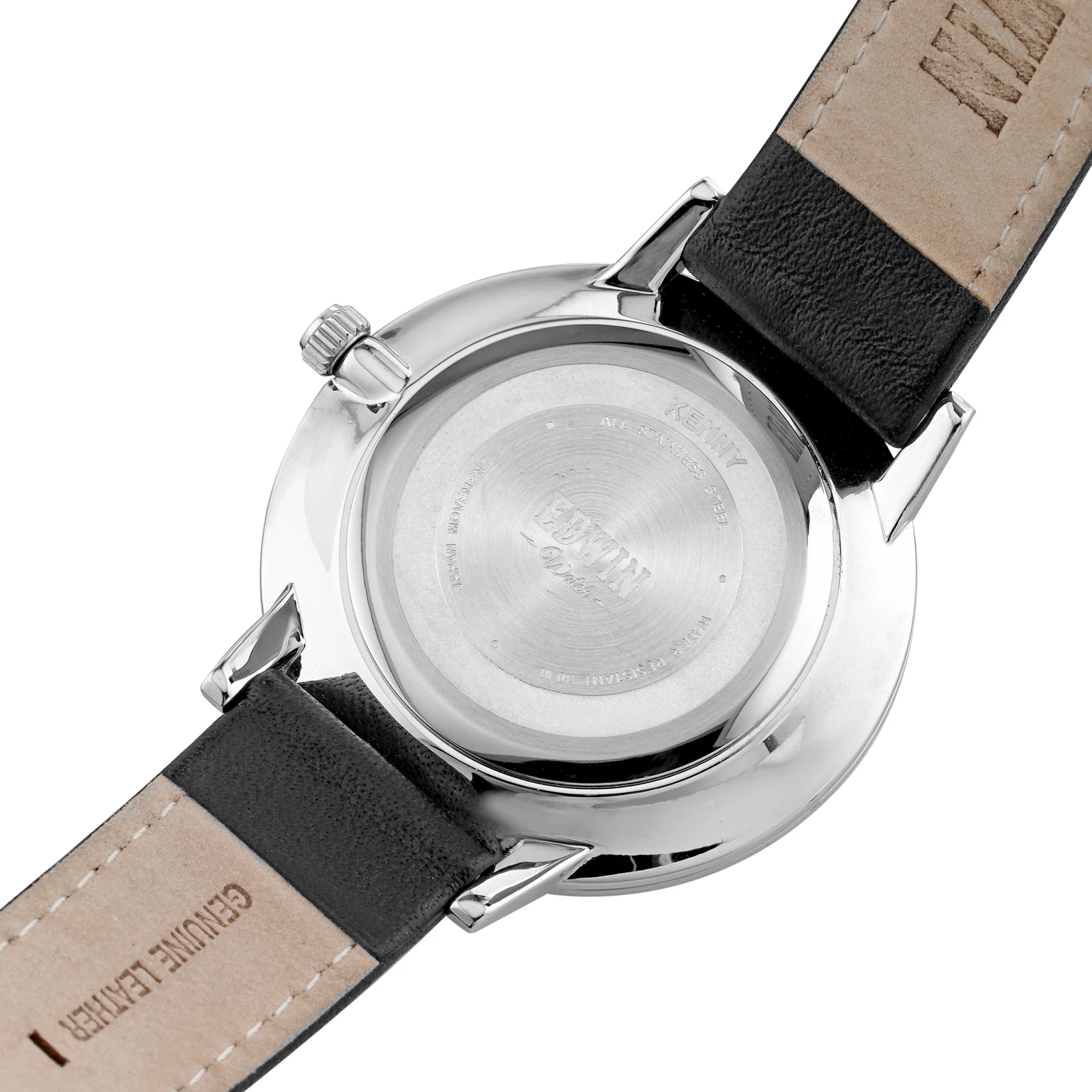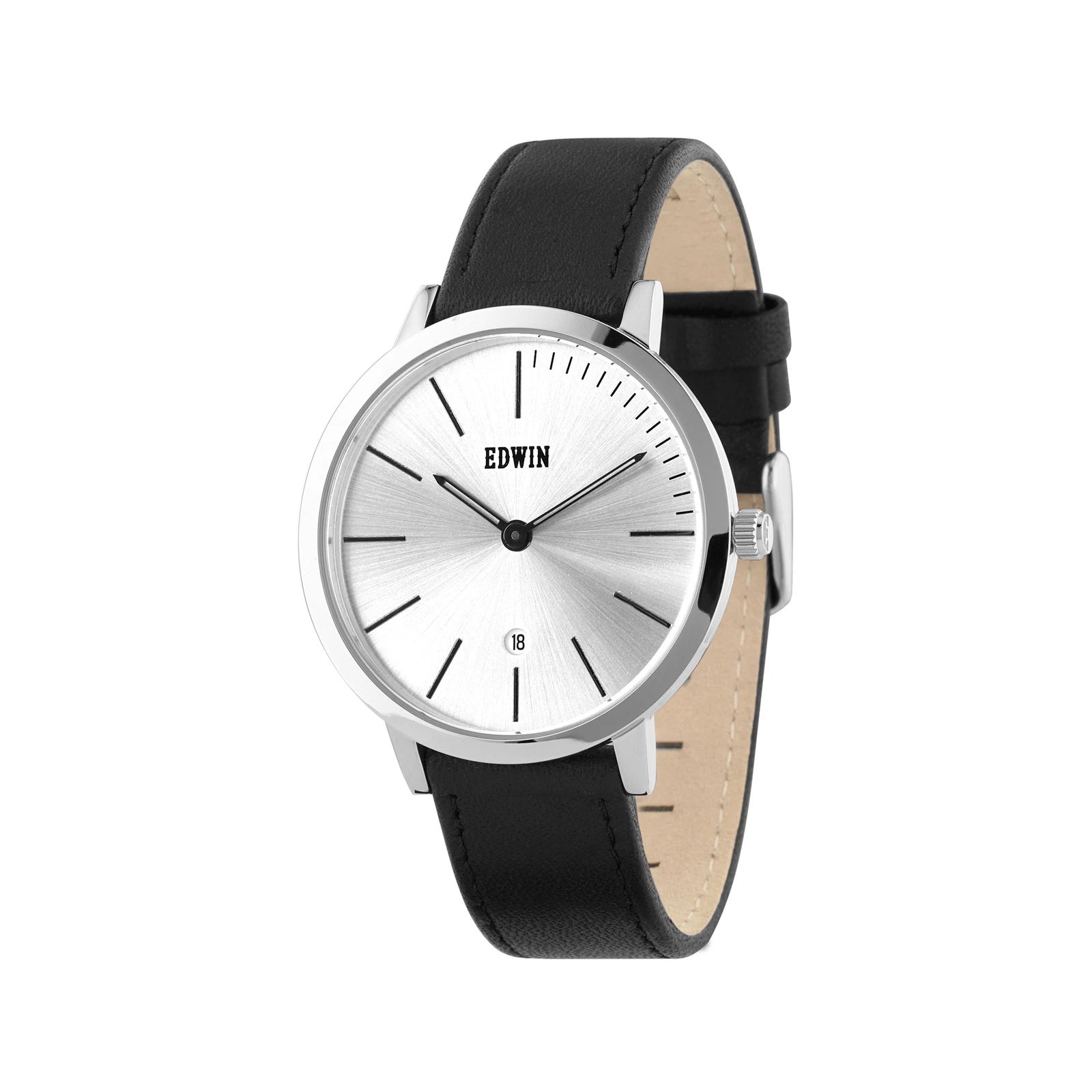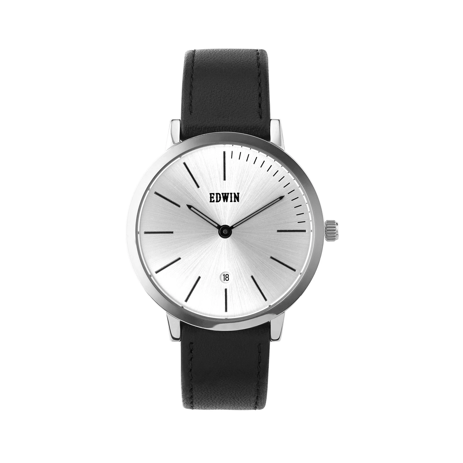 Edwin Kenny Men's 3 Hand-date Watch Stainless Steel Case and Black Leather Band