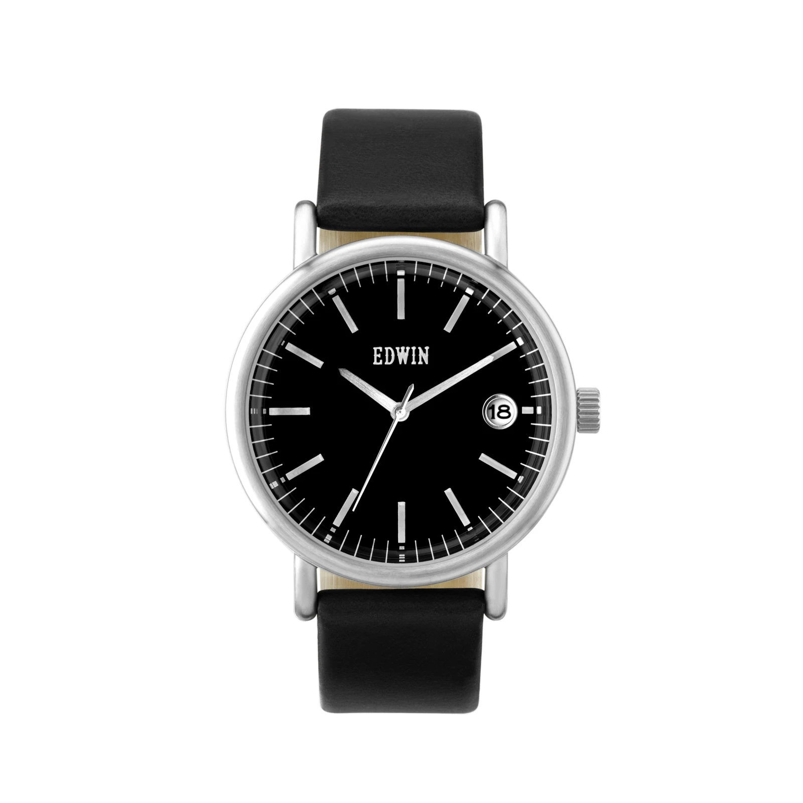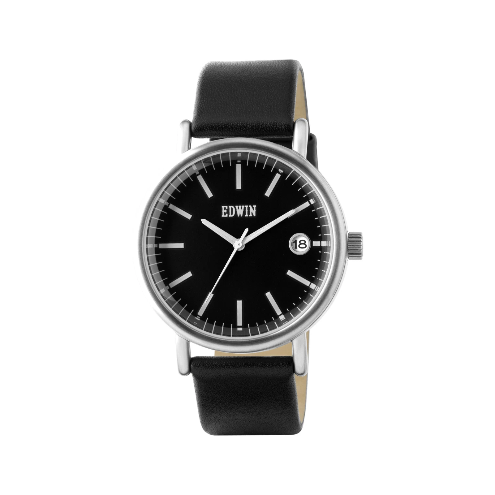 Edwin Epic Men's 3 Hand-date Watch Stainless Steel Case With Black Leather Band