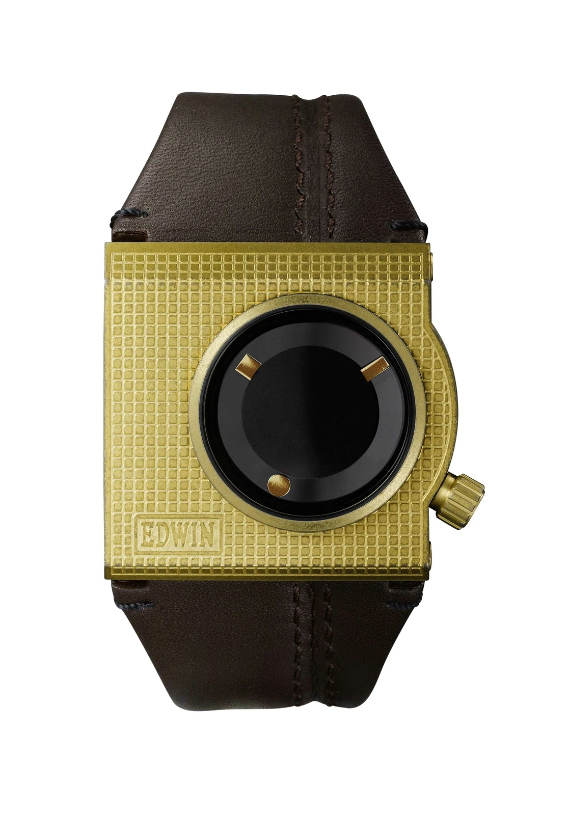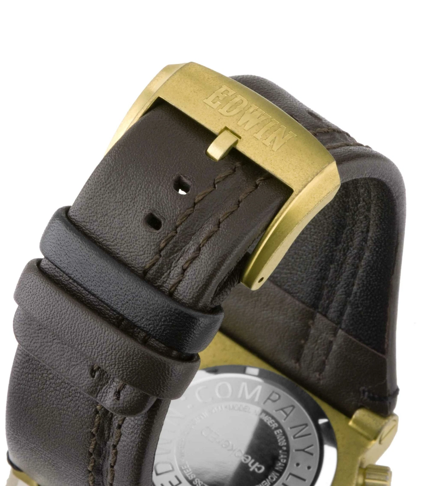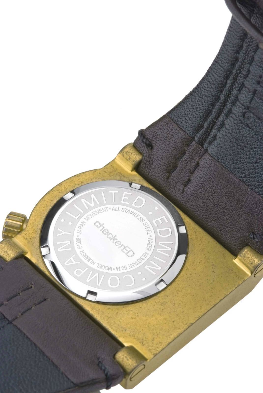 Edwin CHECKERED Men's 3 Hand Watch Stainless Steel Case with Genunine Leather