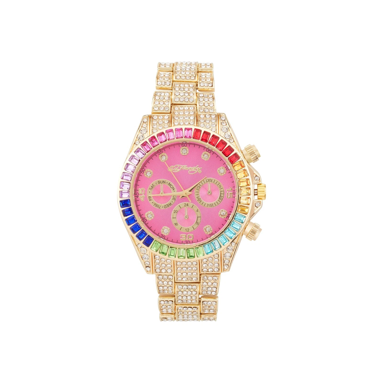 Ed Hardy Ladies Metal Fushia/Gold Plain Analog Watch
