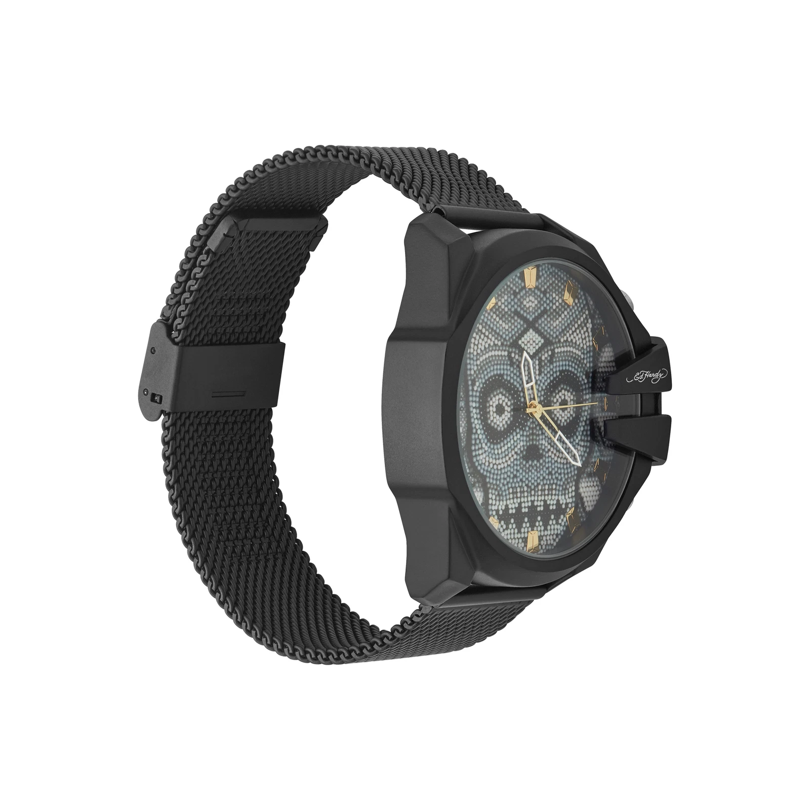 Ed Hardy Men's Matte Black Mesh Bracelet Watch 53mm