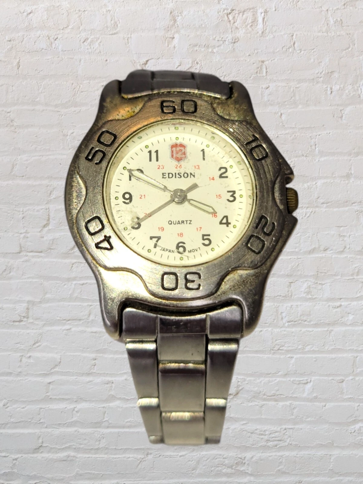 Vtg Edison Unisex Swiss Army Watch SKU# 1940465 Glow in Dark Hands Untested