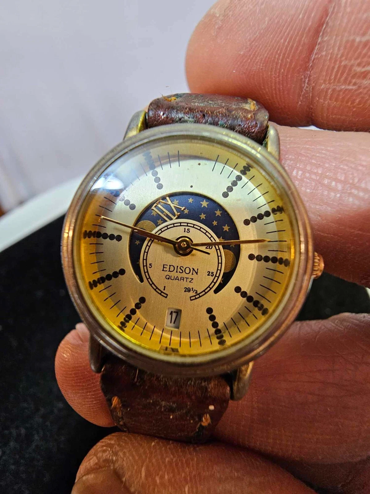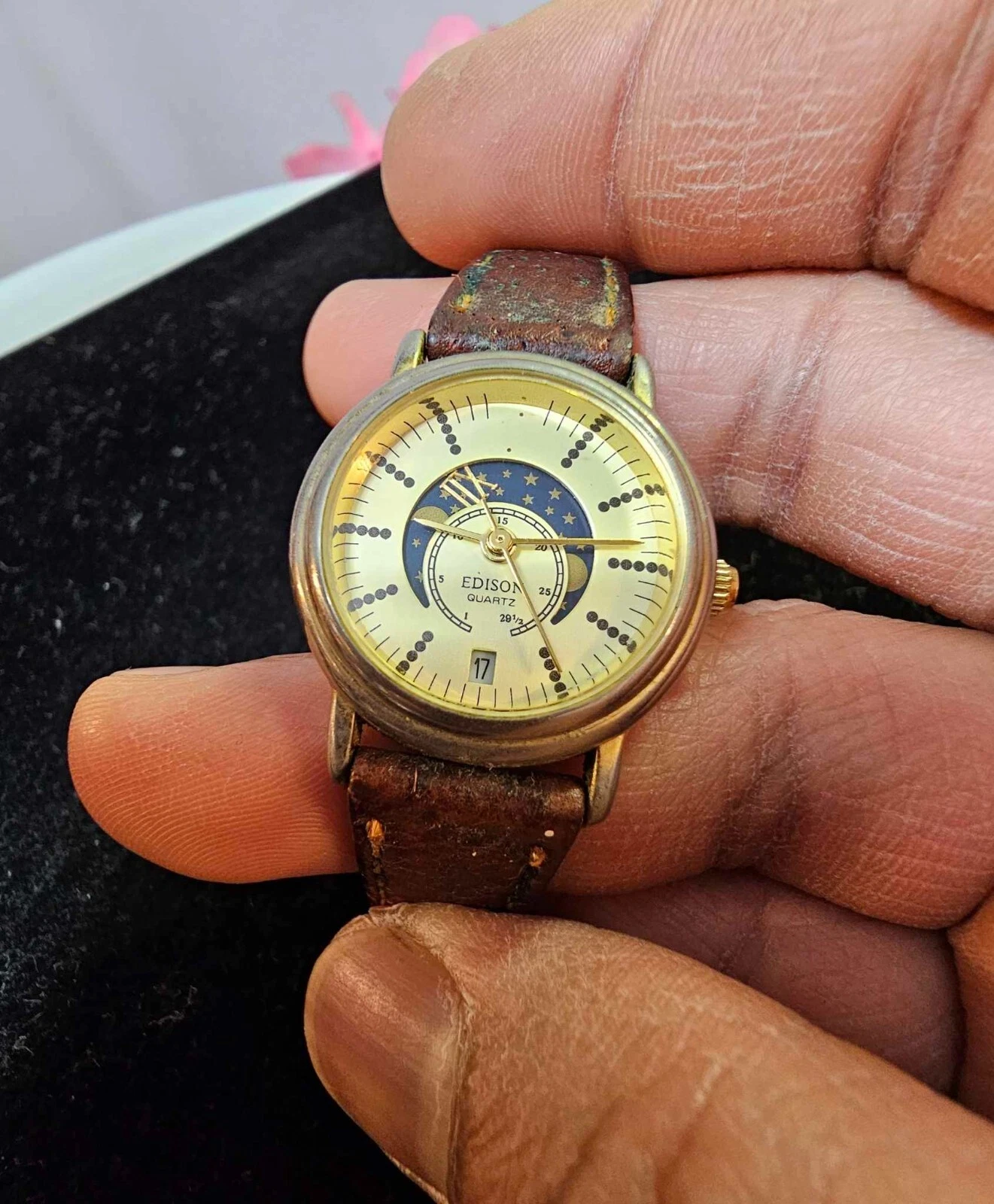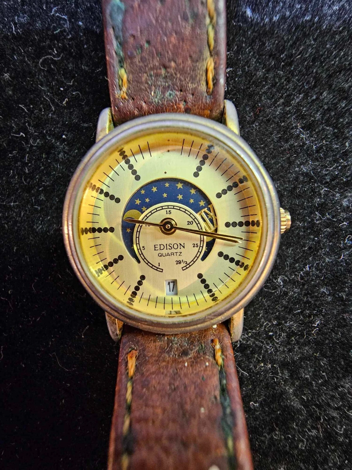 Edison Women's wrist watch Phase Day Sun Night Moon w Stars leather band- works