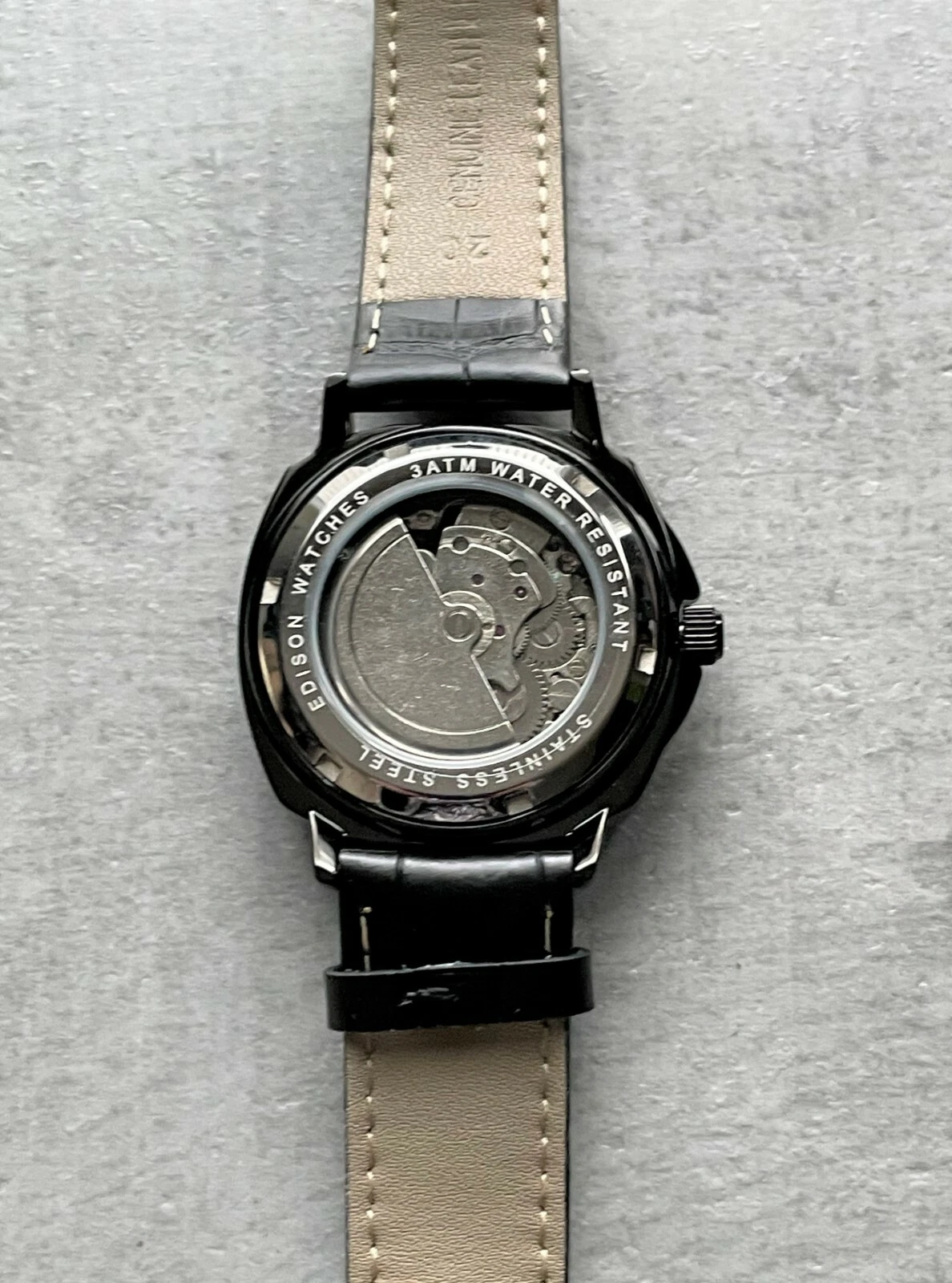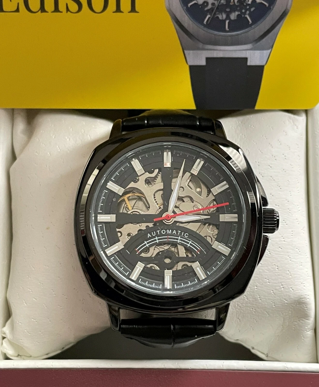 Edison Automatic Skeleton Men's Watch With Black Case & Leather Strap W/62