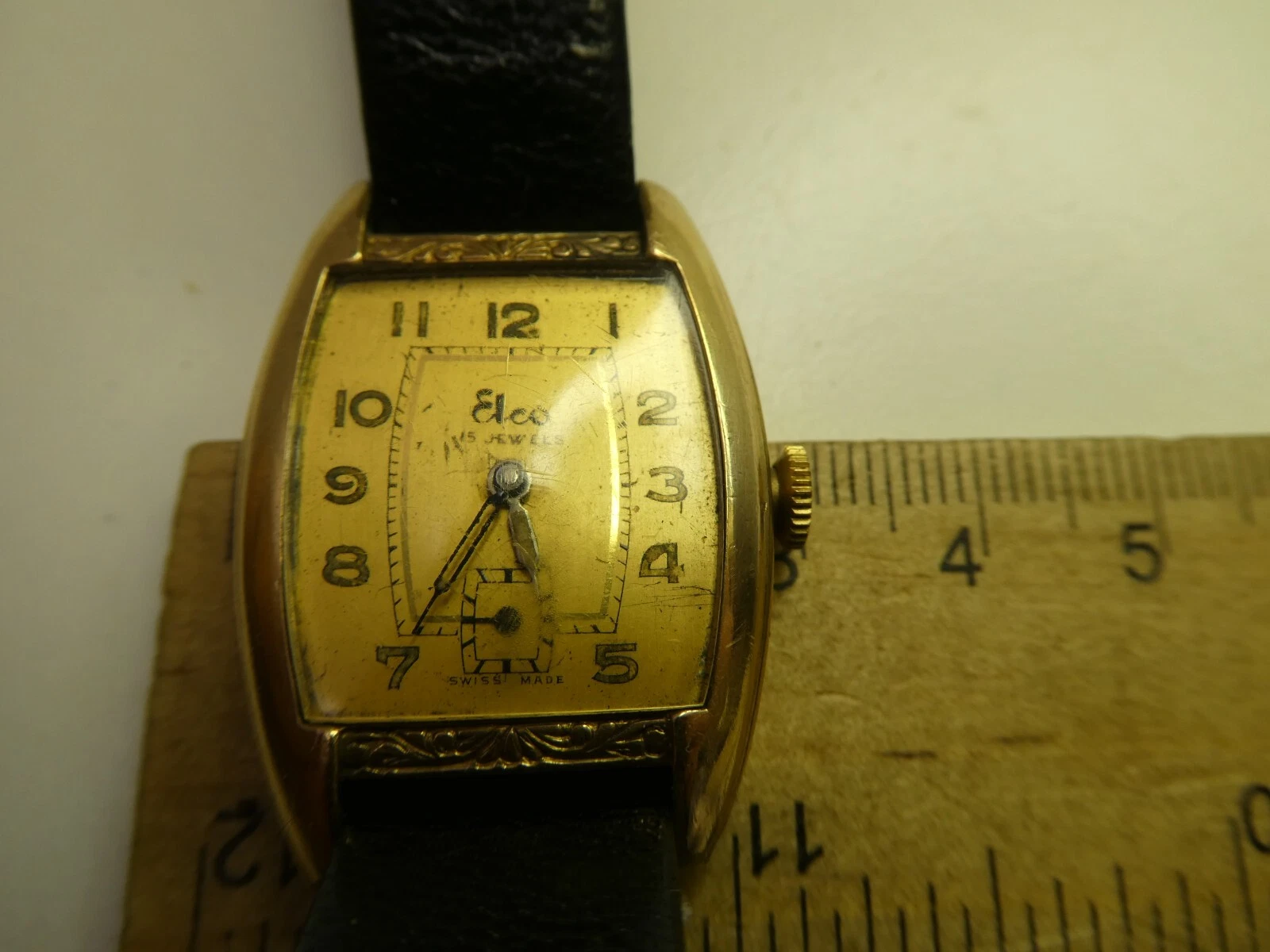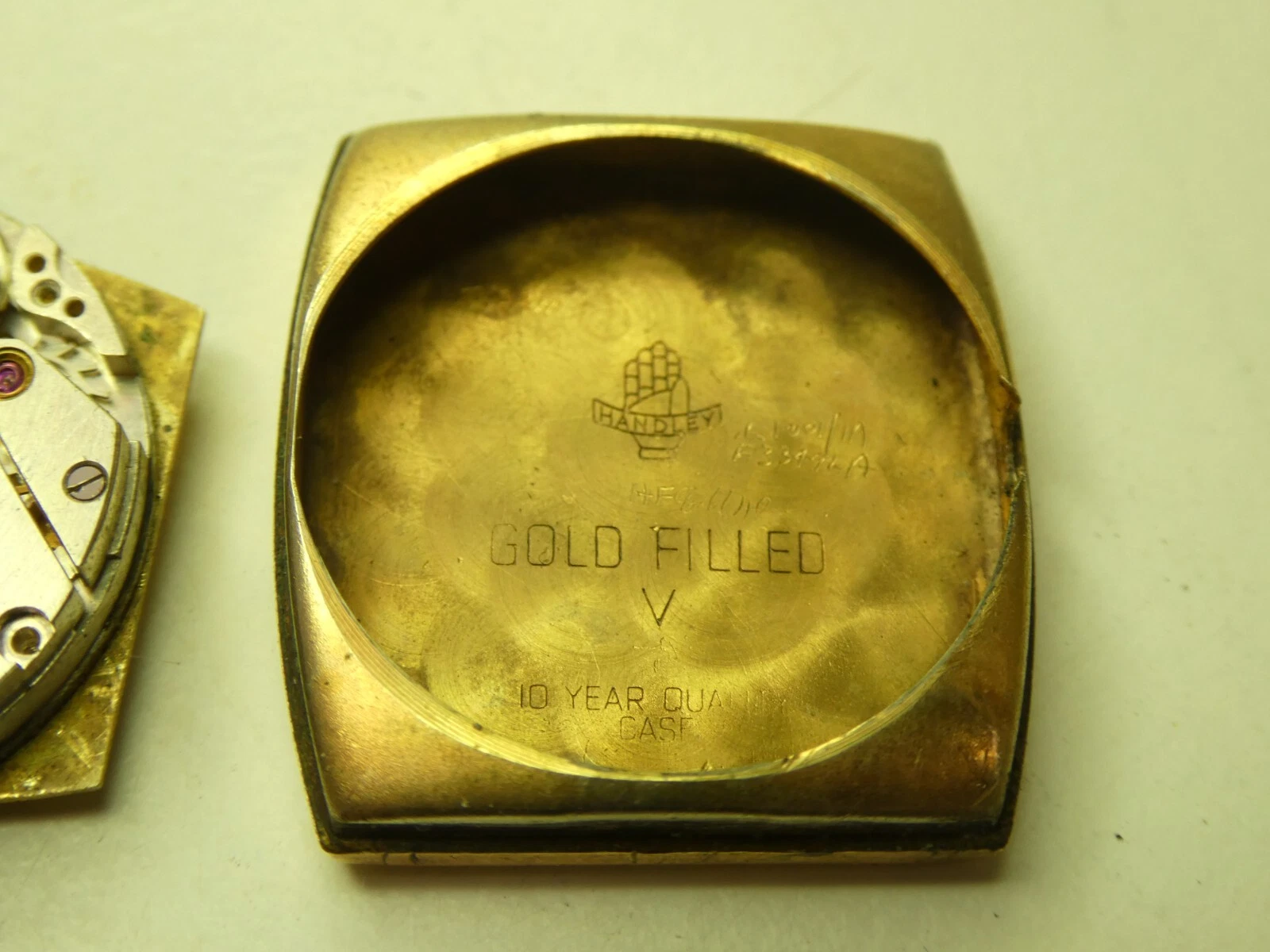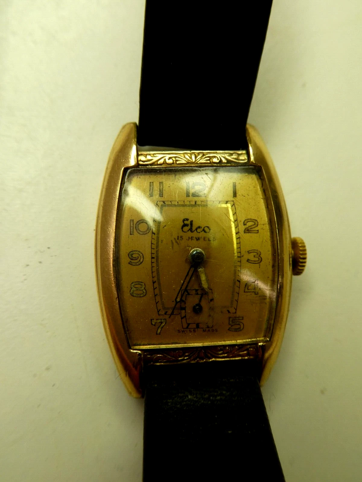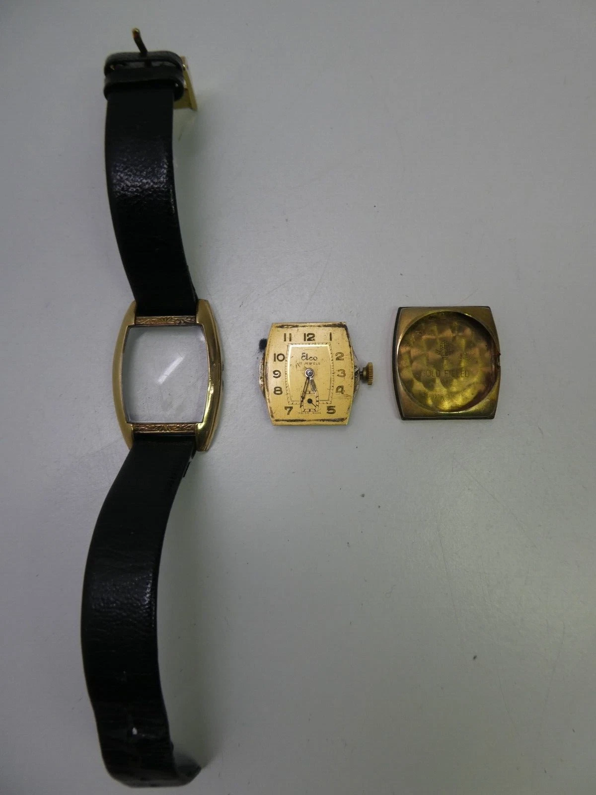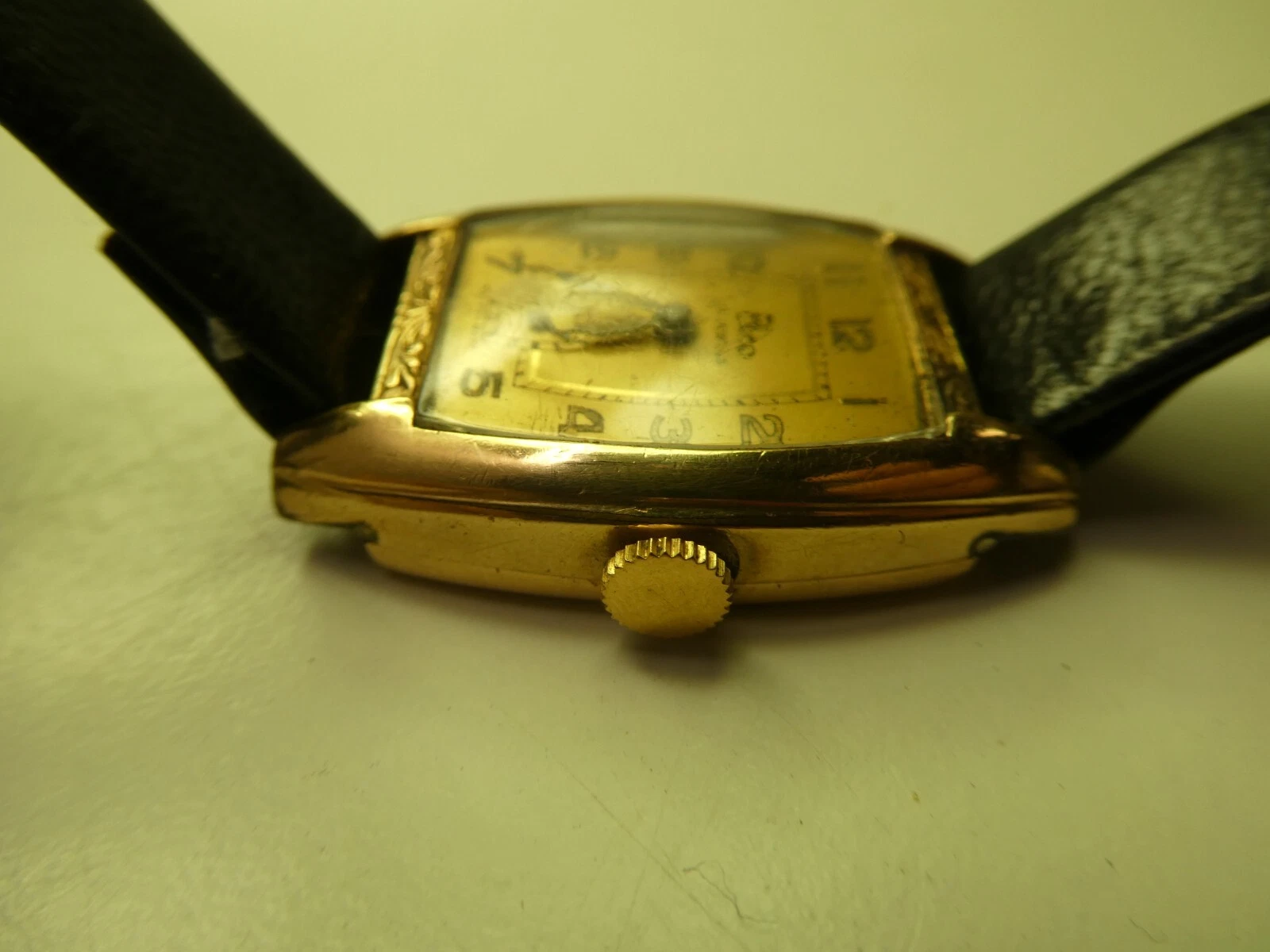 HANDLEY ELCO ART DECO SQUARE FACE GOLD FILLED MENS DRESS WRIST WATCH