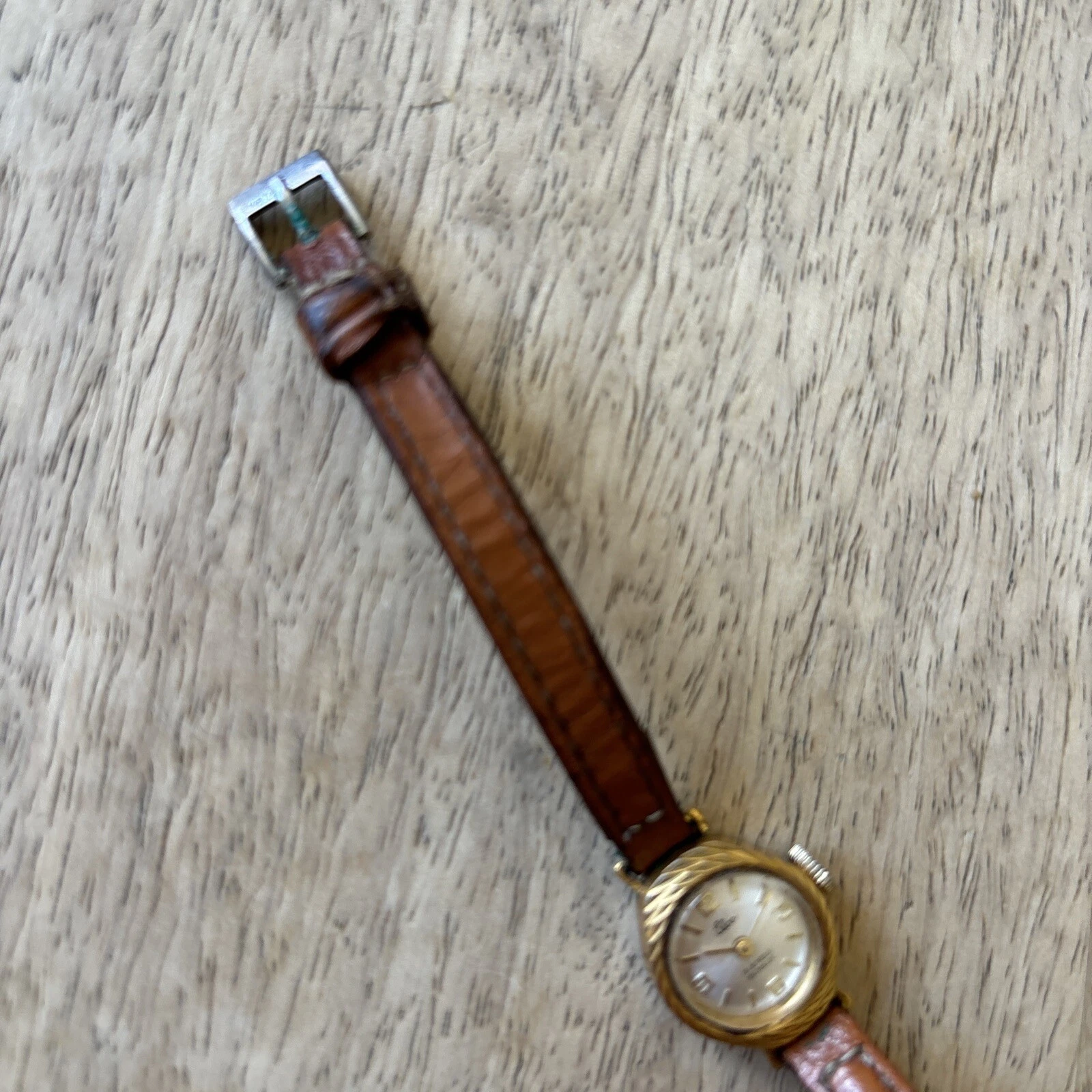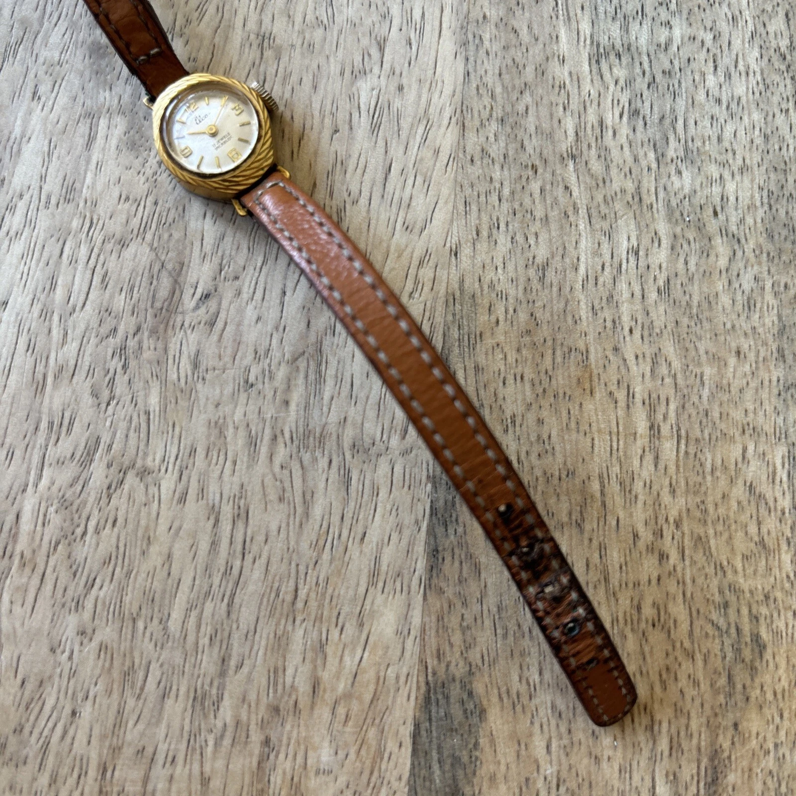 Vintage Ladies ELCO 17 Jewels Incabloc Swiss Watch - Leather Strap, Gold Colour