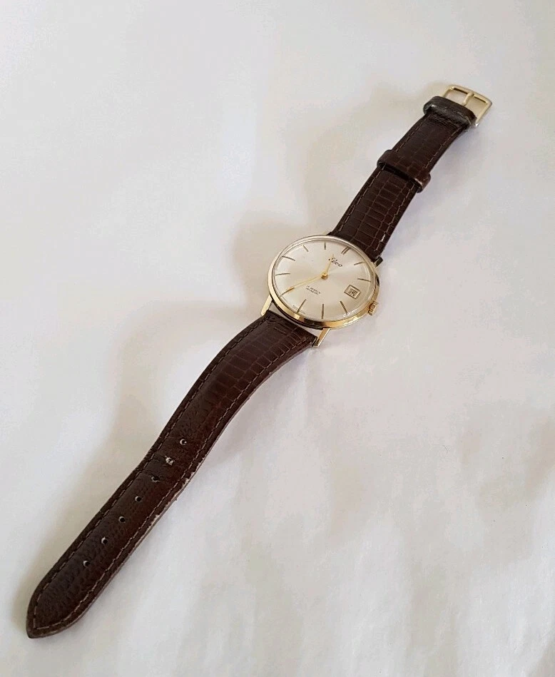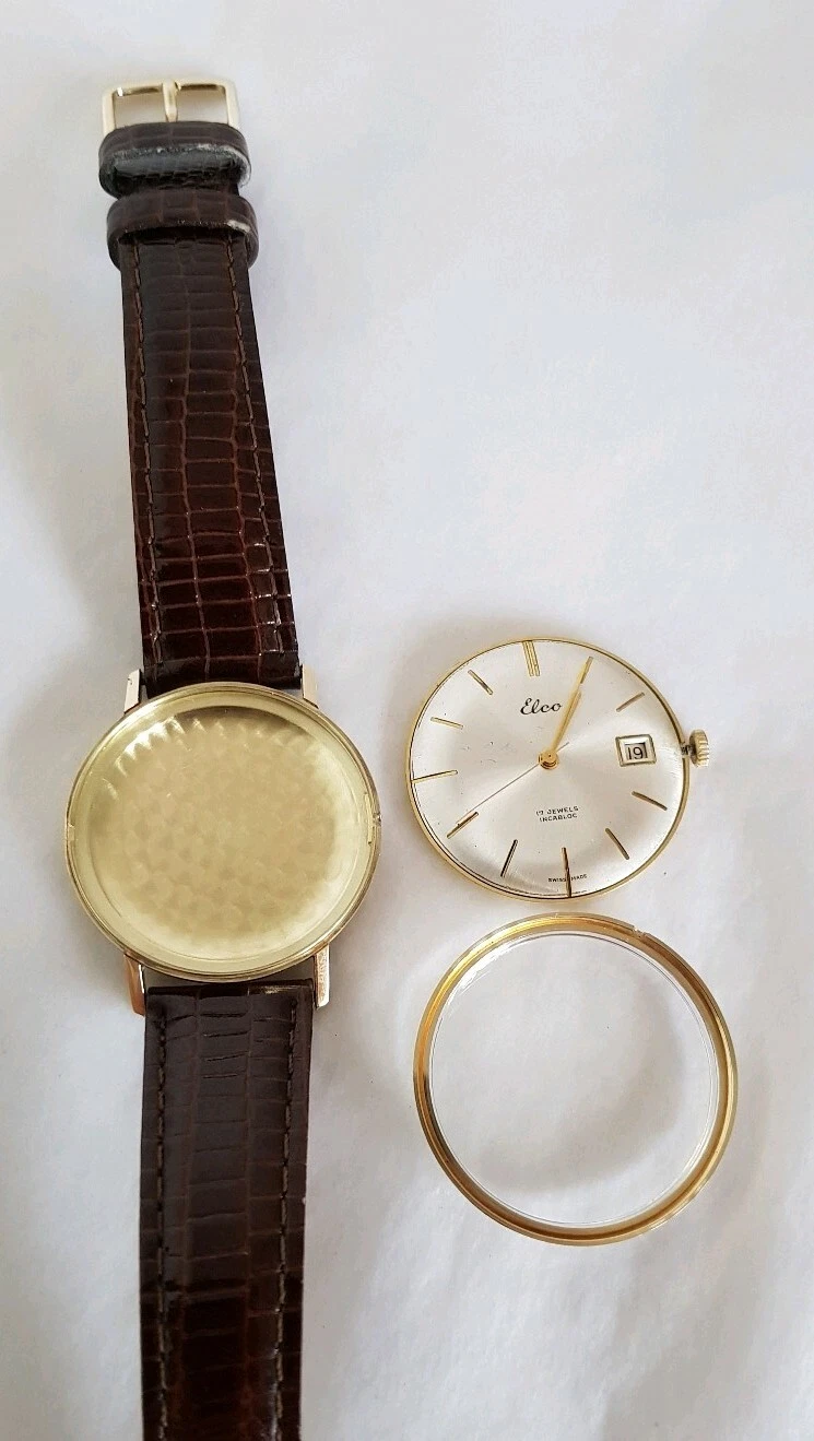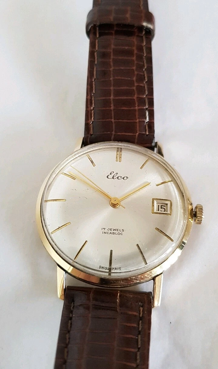 14ct Yellow Gold Gentleman's wrist watch. ELCO Incabloc Swiss made. 17 jewels