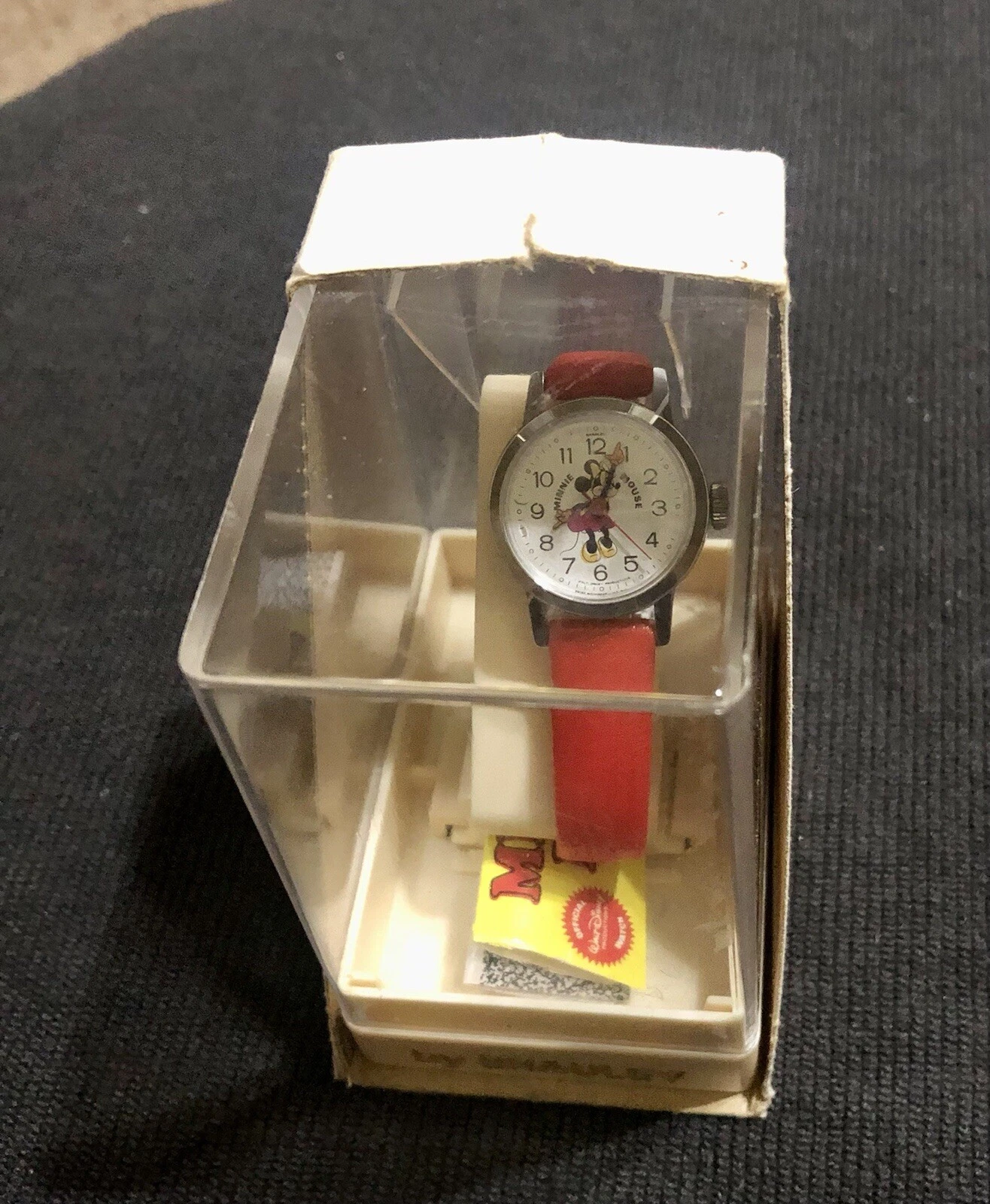Vintage Disney Minnie Mouse Watch – Women’s Silver Tone, Red Band, SS