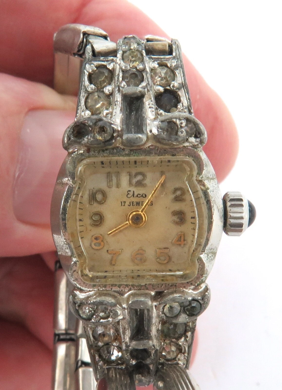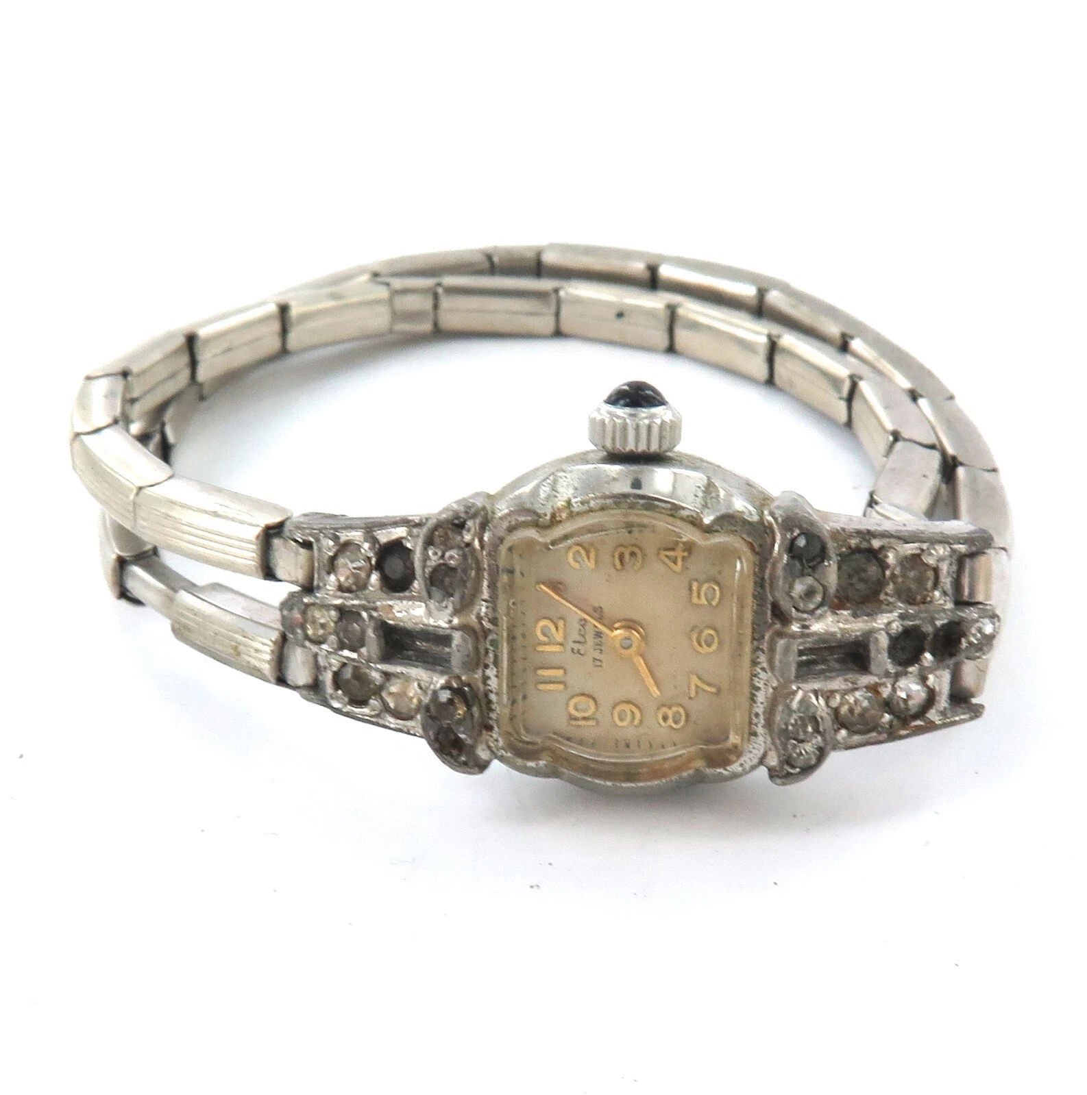 Very Unusual / Vintage Double Strand Bracelet Elco 17J Ladies Cocktail Watch.
