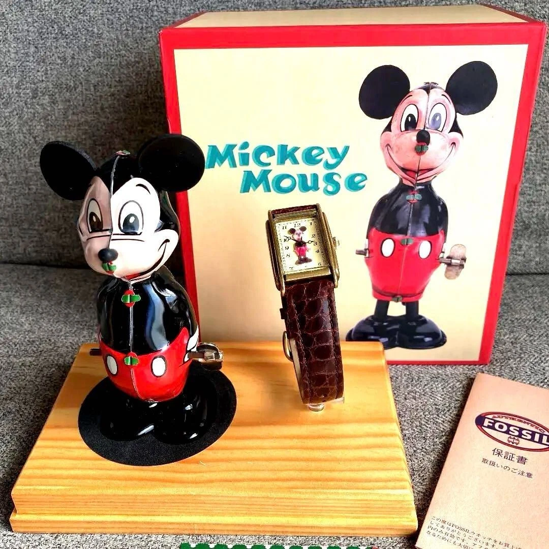 Disney Mickey 70th Anniversary Birthday Tin Toy & Watch Set vintage rare 1942MT