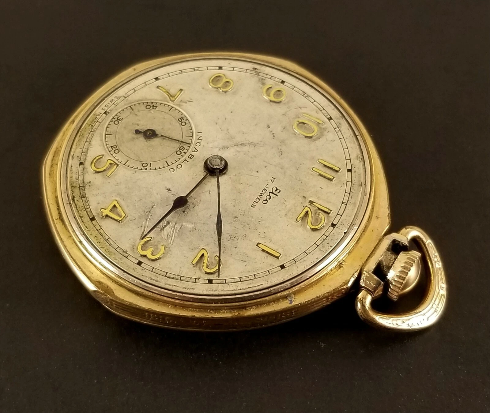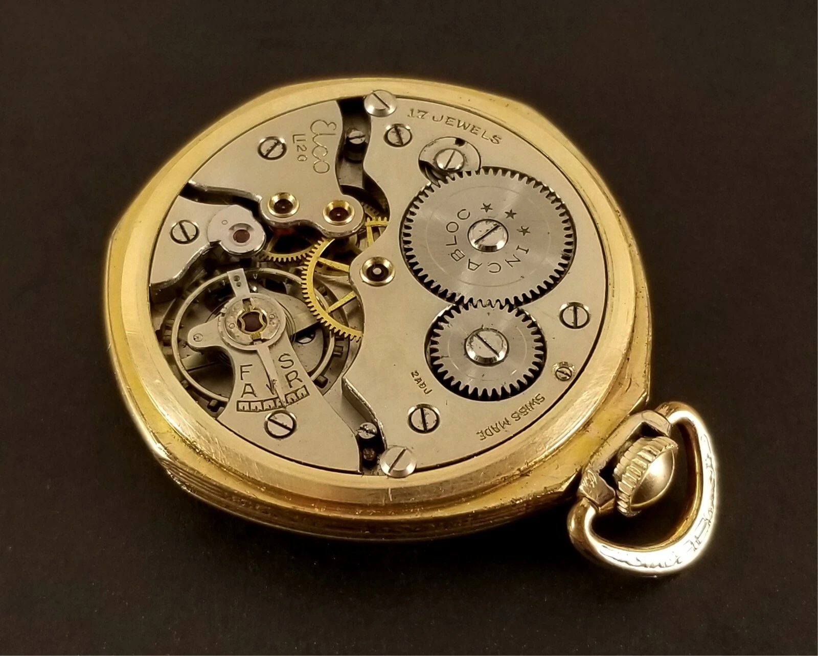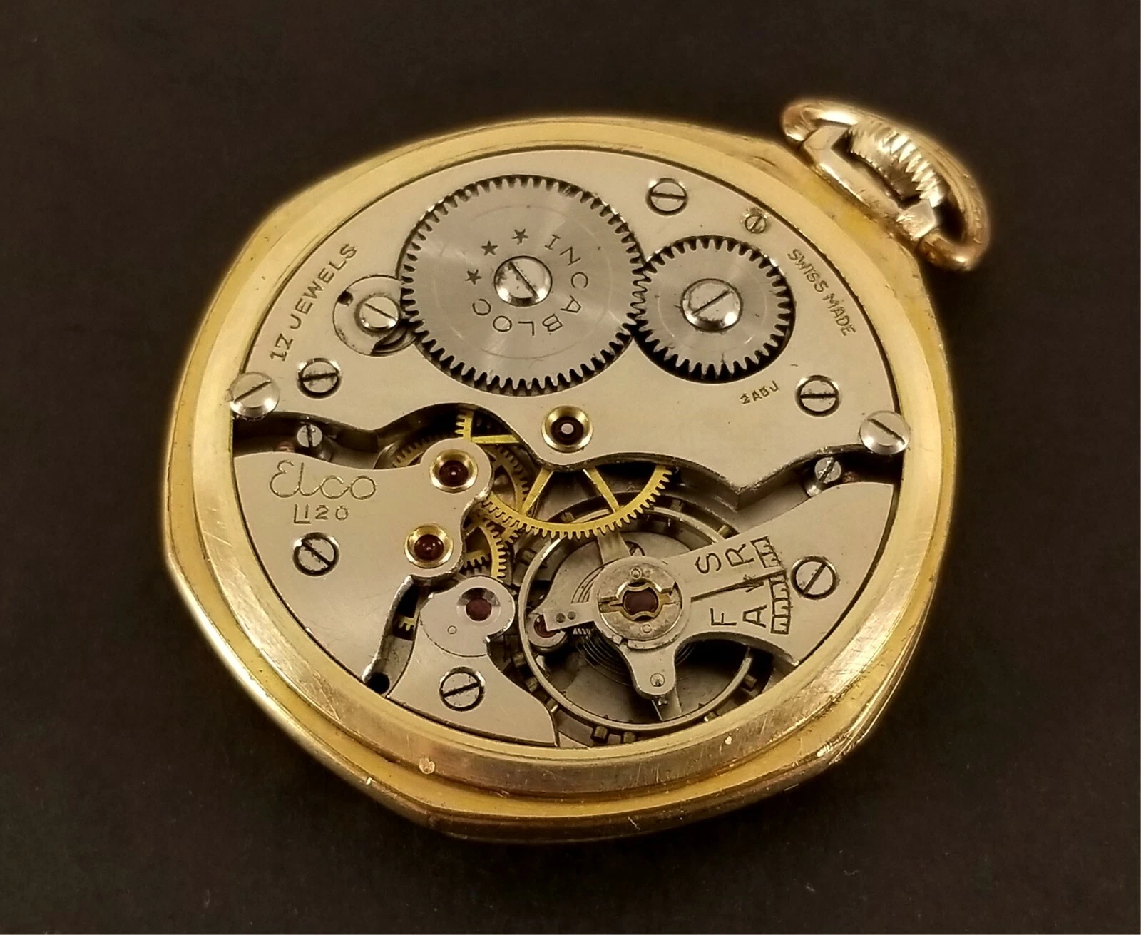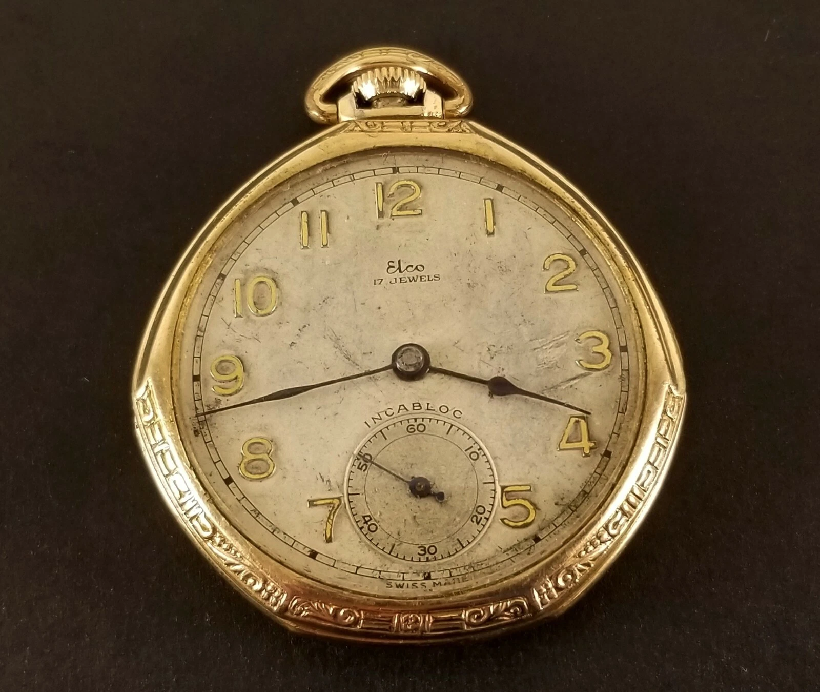Vintage ELCO Swiss Pocket Watch 17 Jewels Gold Filled Case