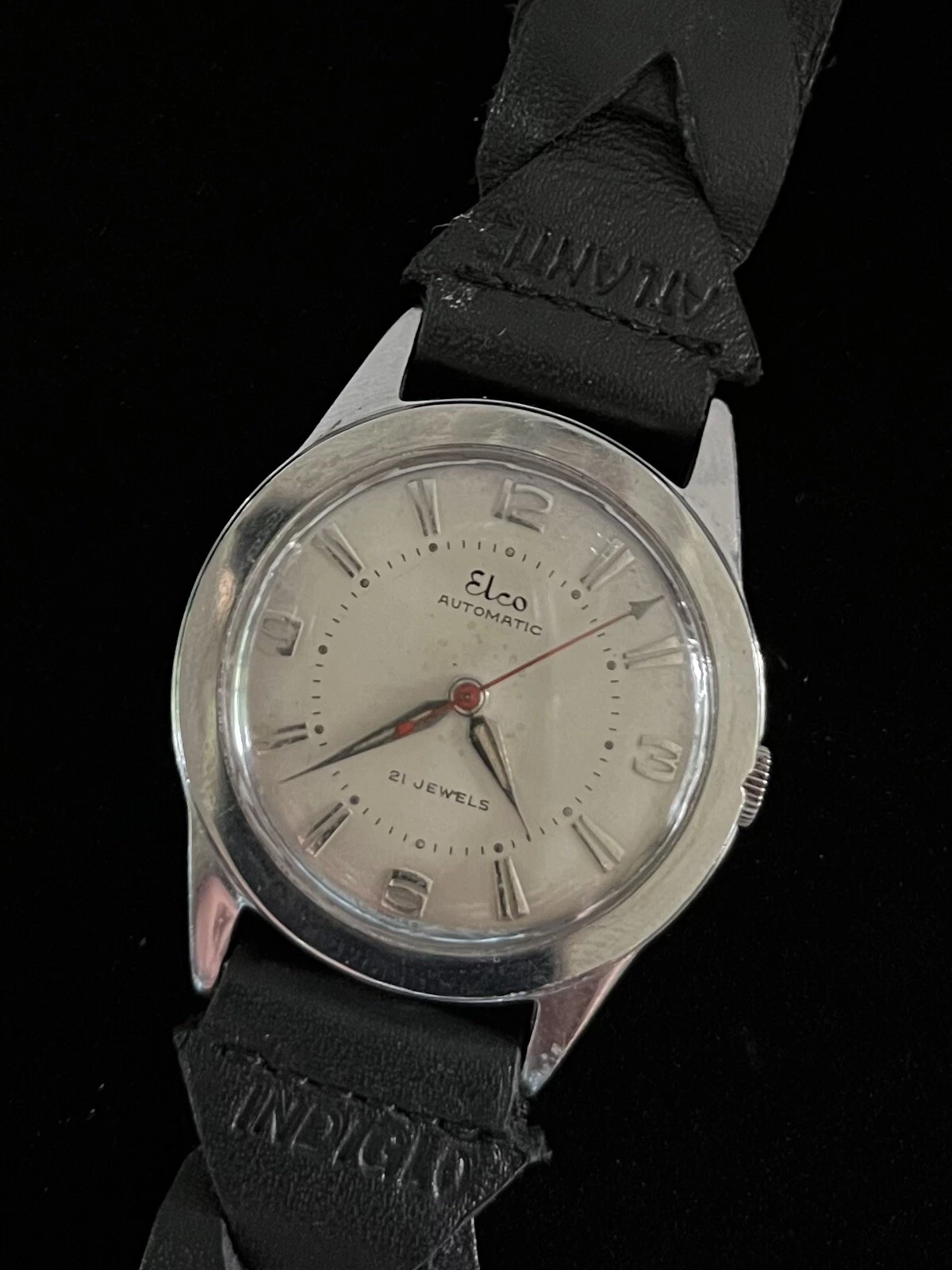 Vintage Men’s Elco Automatic Wristwatch 21 Jewels With Replacement Band Working