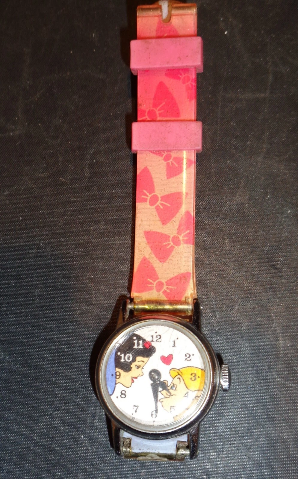 Vintage 1950s Snow White & Dopey Wind Up Wrist Watch Walt Disney Prod. Works!