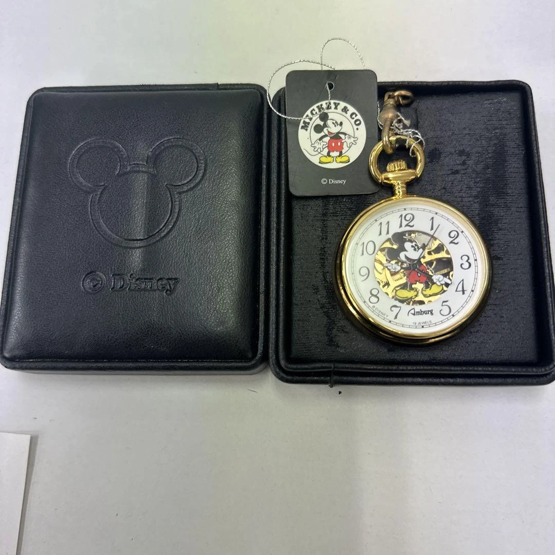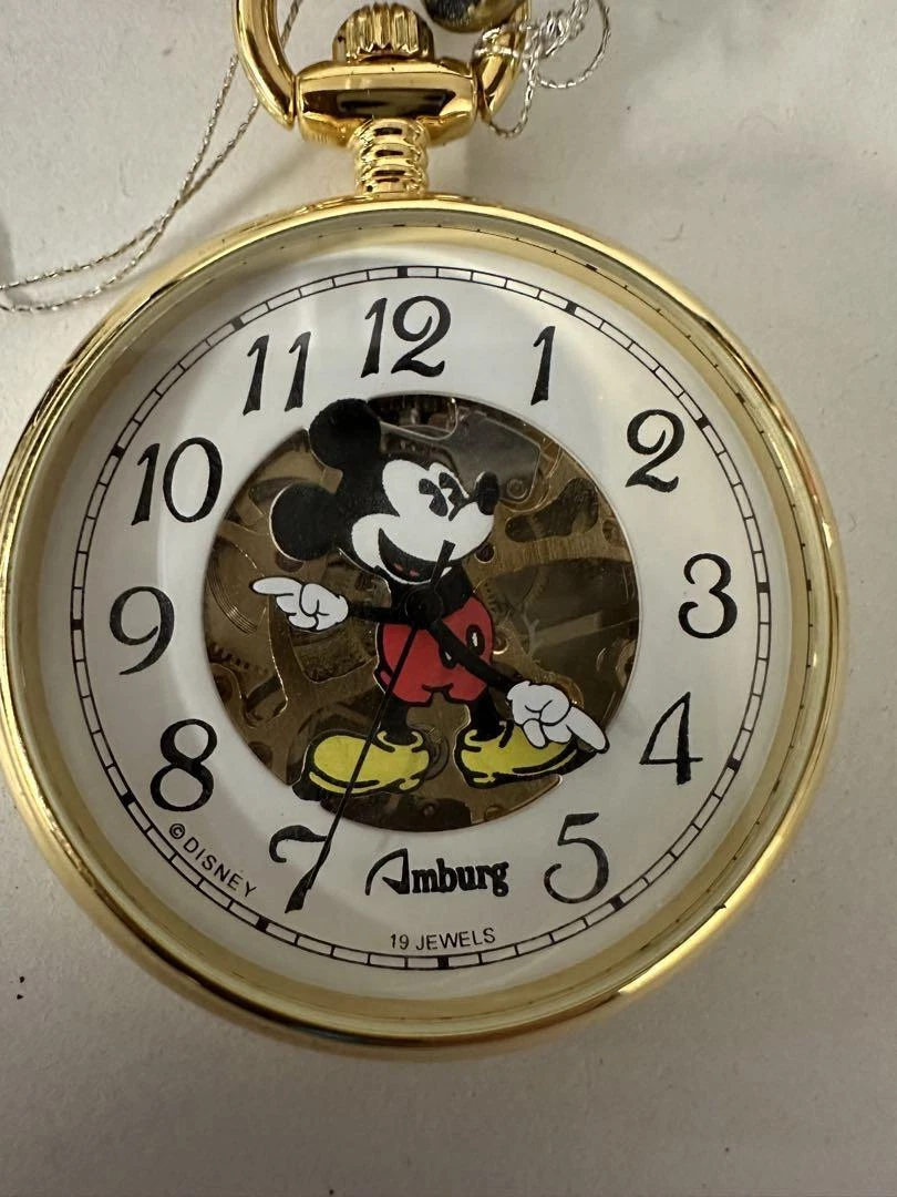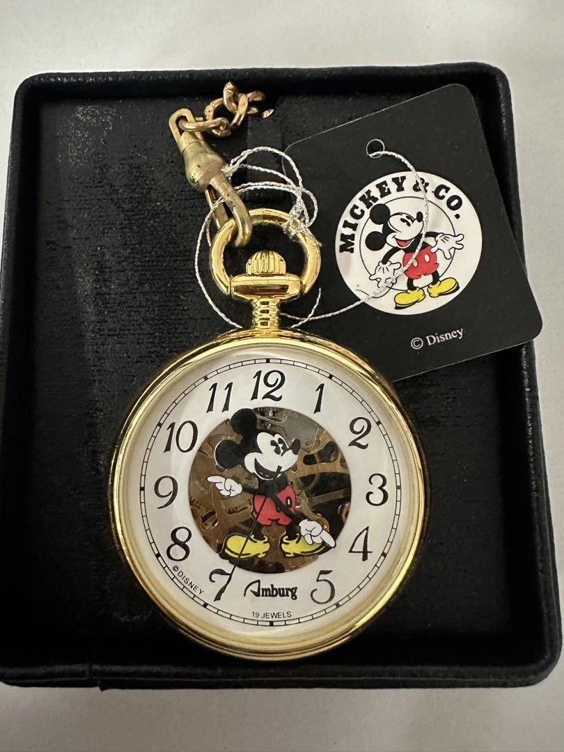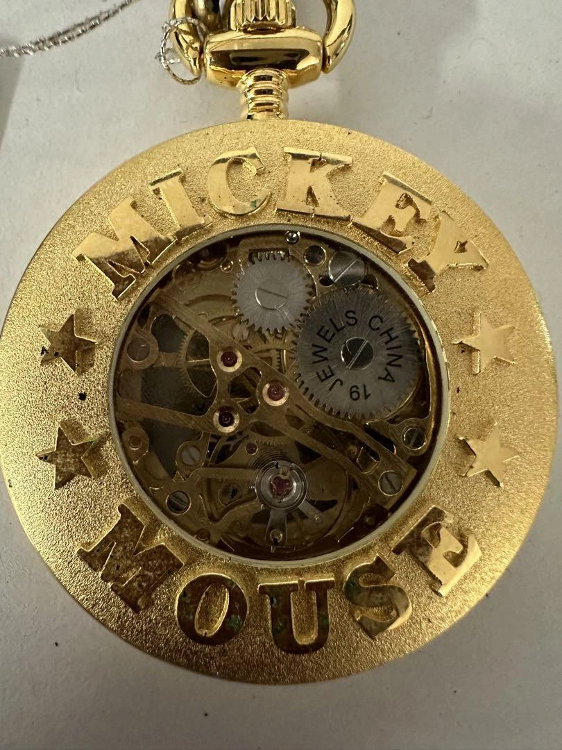 Pocket Watch Disney Mickey Mouse 19 Jewels Skeleton Center Hand-Wound