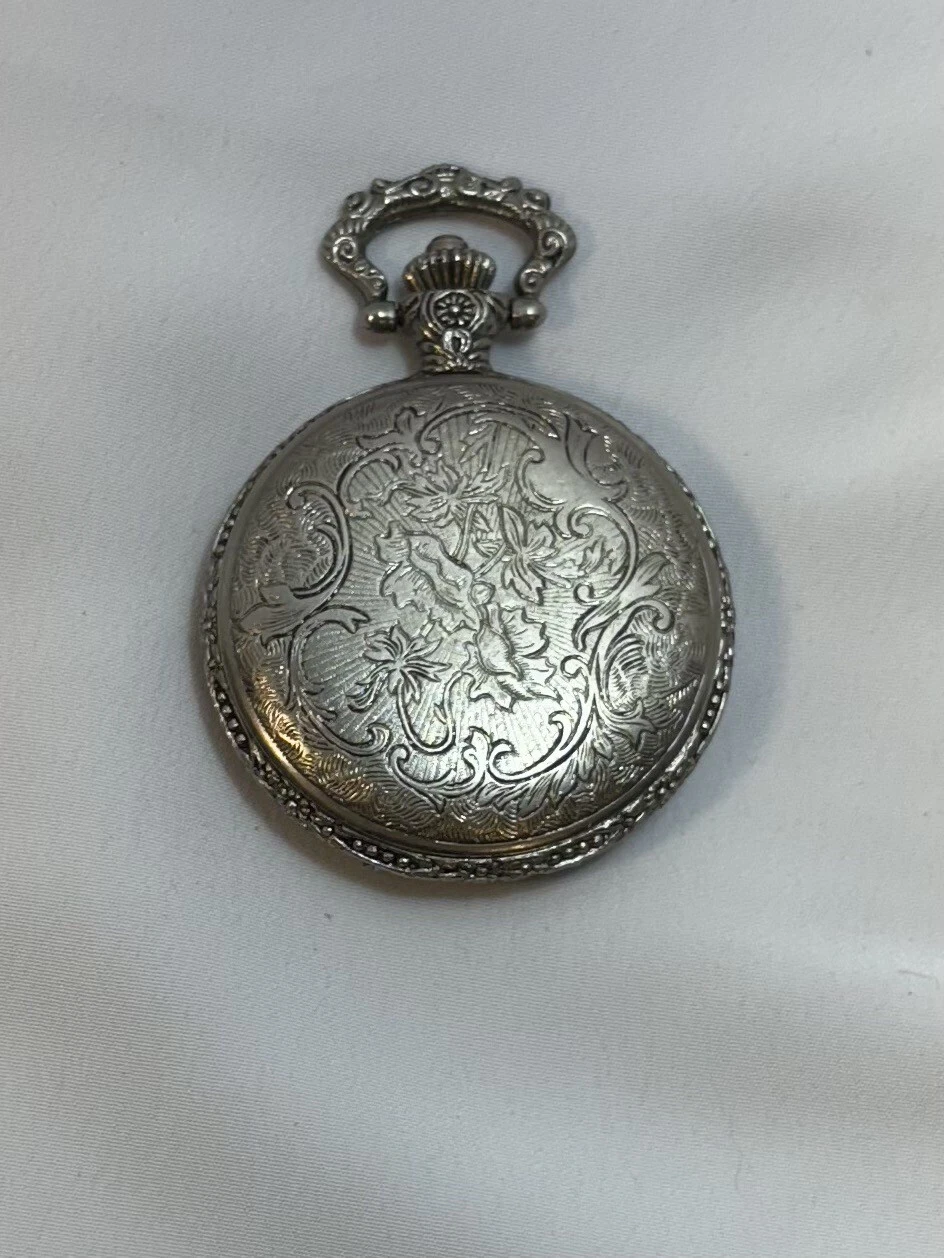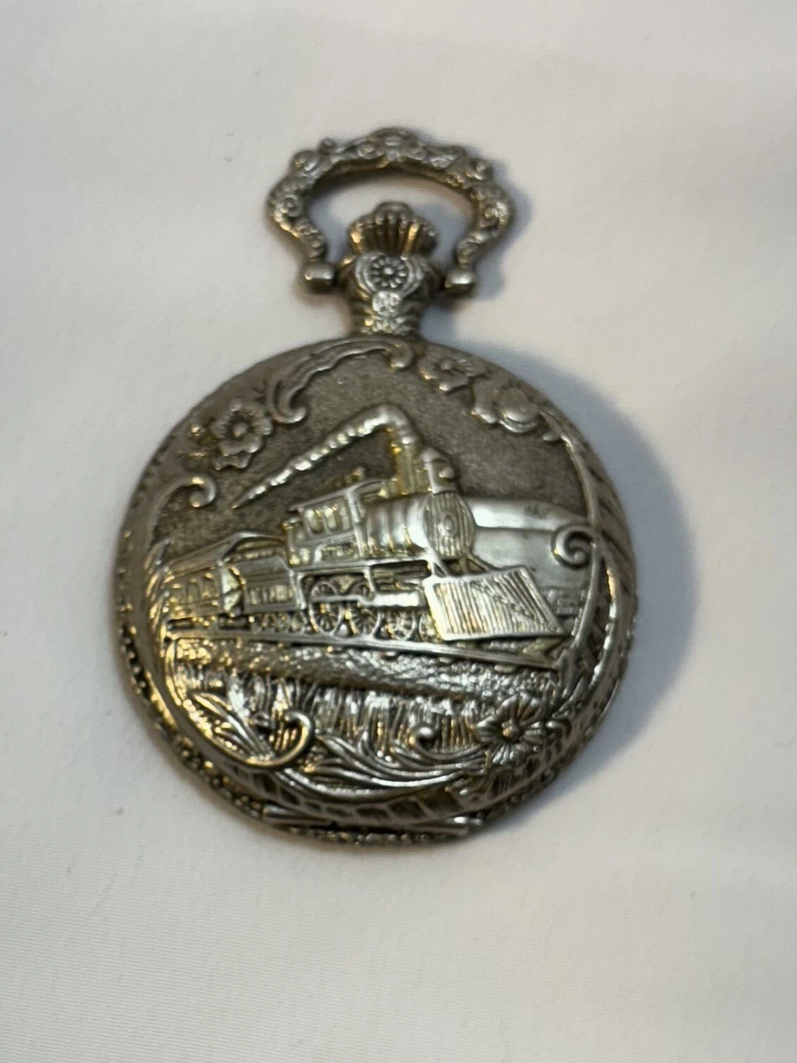 Train Design Silver tone Pocket Watch By Elements Quartz Untested