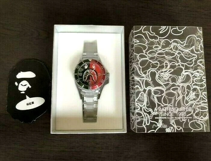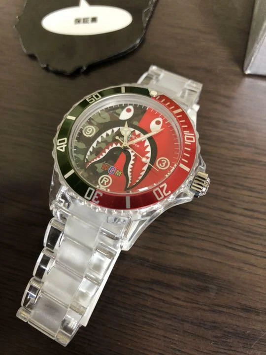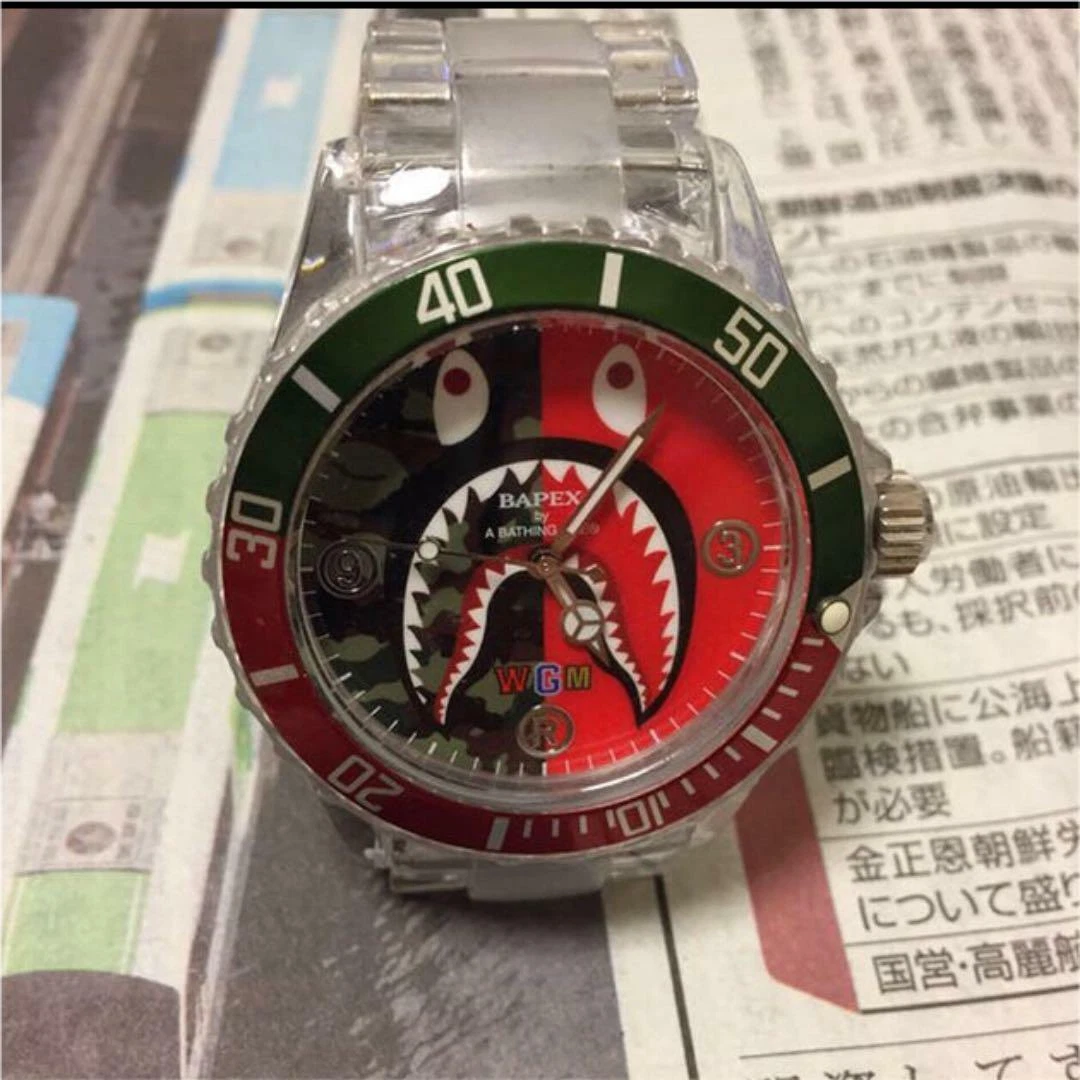 A Bathing APE BAPE BAPEX wrist Watch Shark Red Green W/ Box Used Very Rare Japan