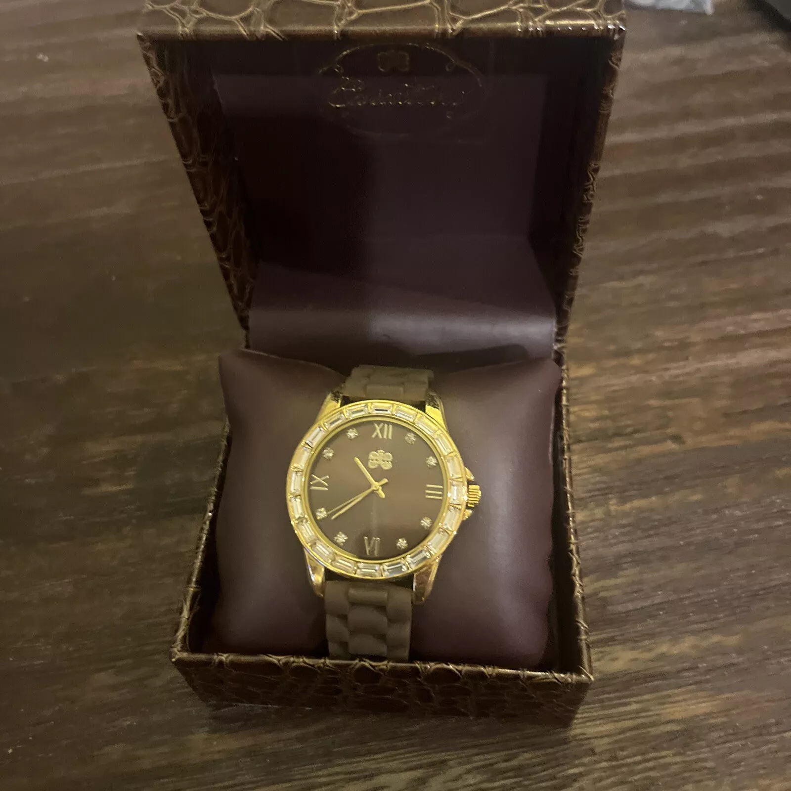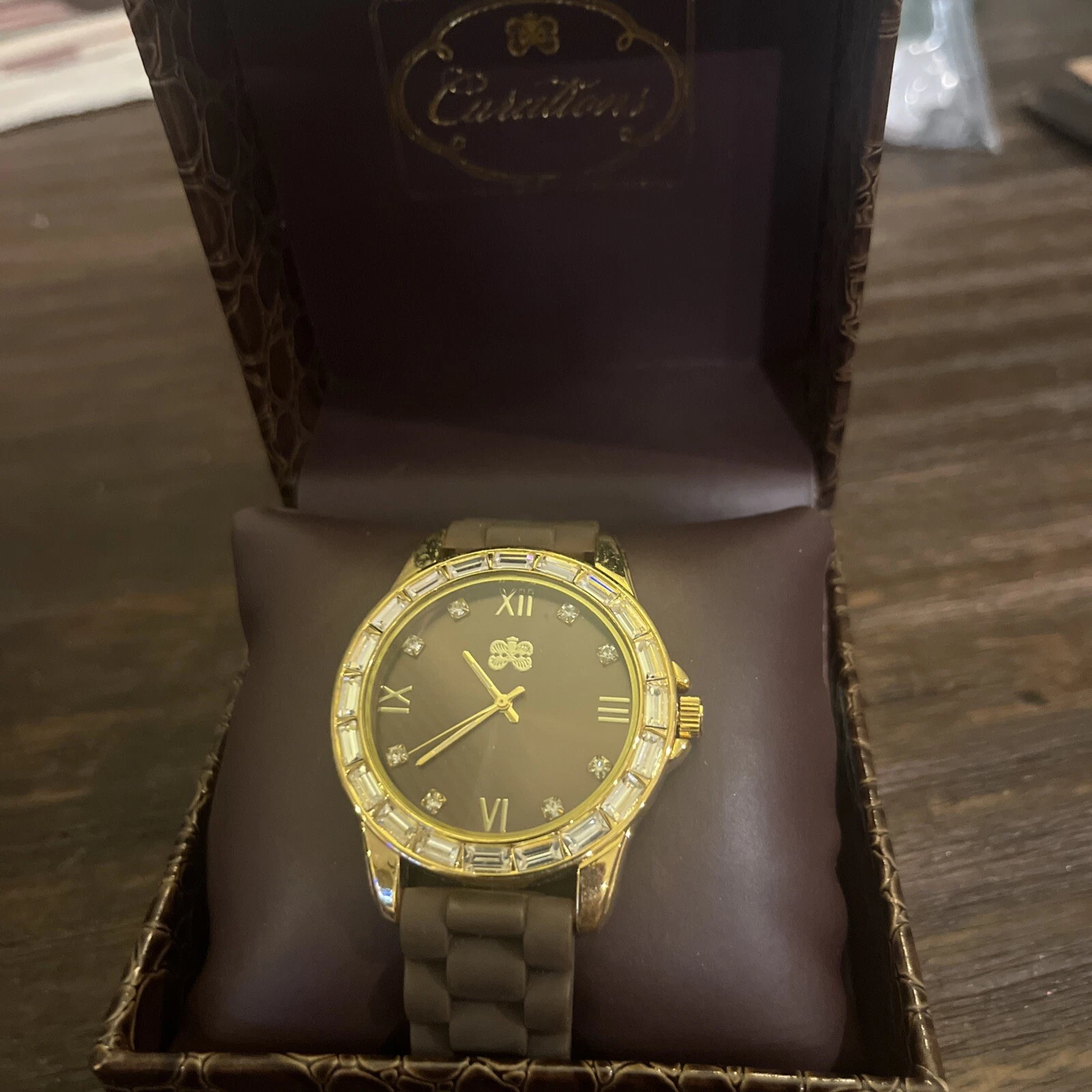 Curations Men's Gold Black Gray Tone Crystal Gem Elements Face Quartz Watch