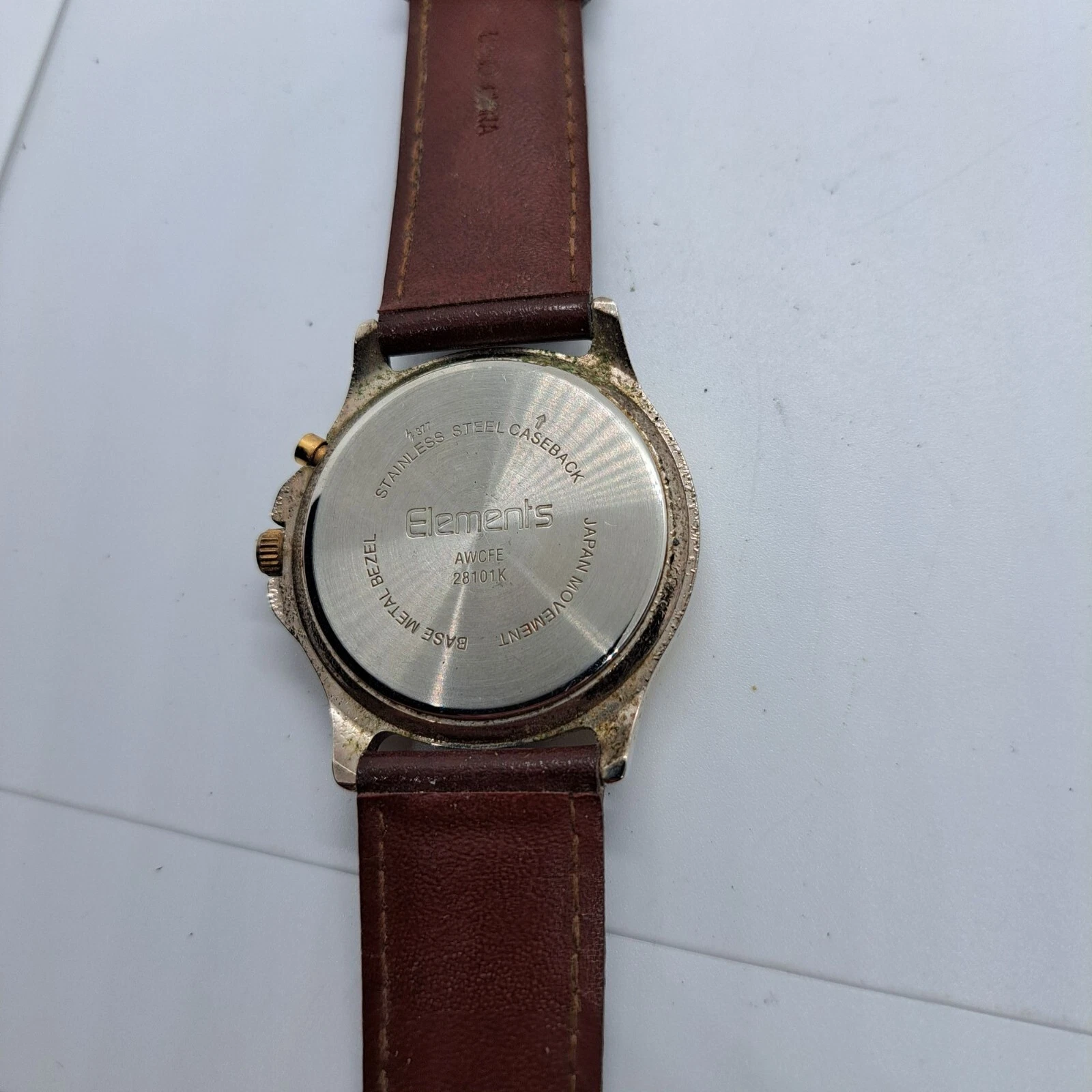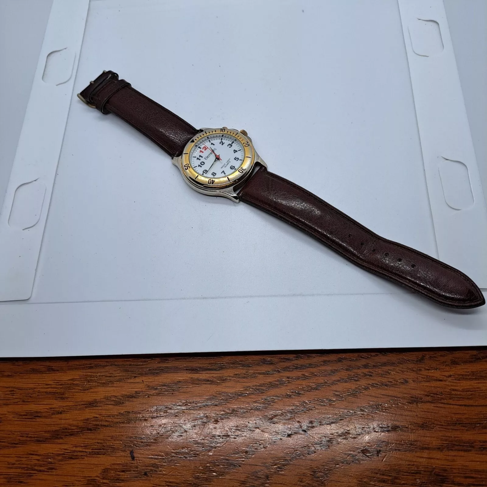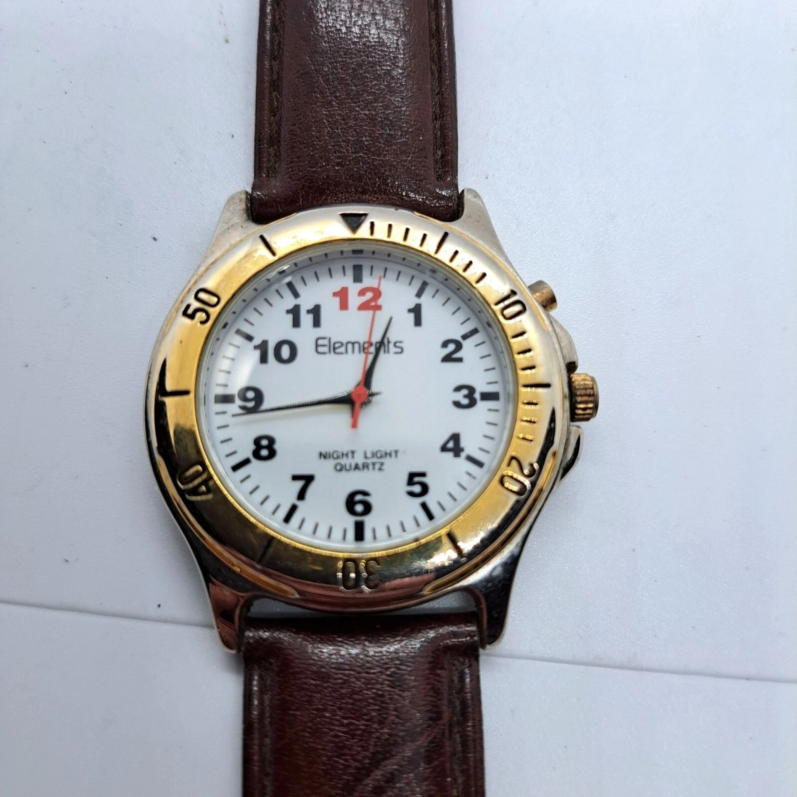 Elements Night Light Quartz Watch with gold tone bezel and chronograph brown