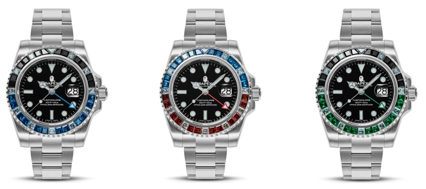 check description A BATHING APE TYPE 2 BAPEX CRYSTAL STONE wristwatch Men