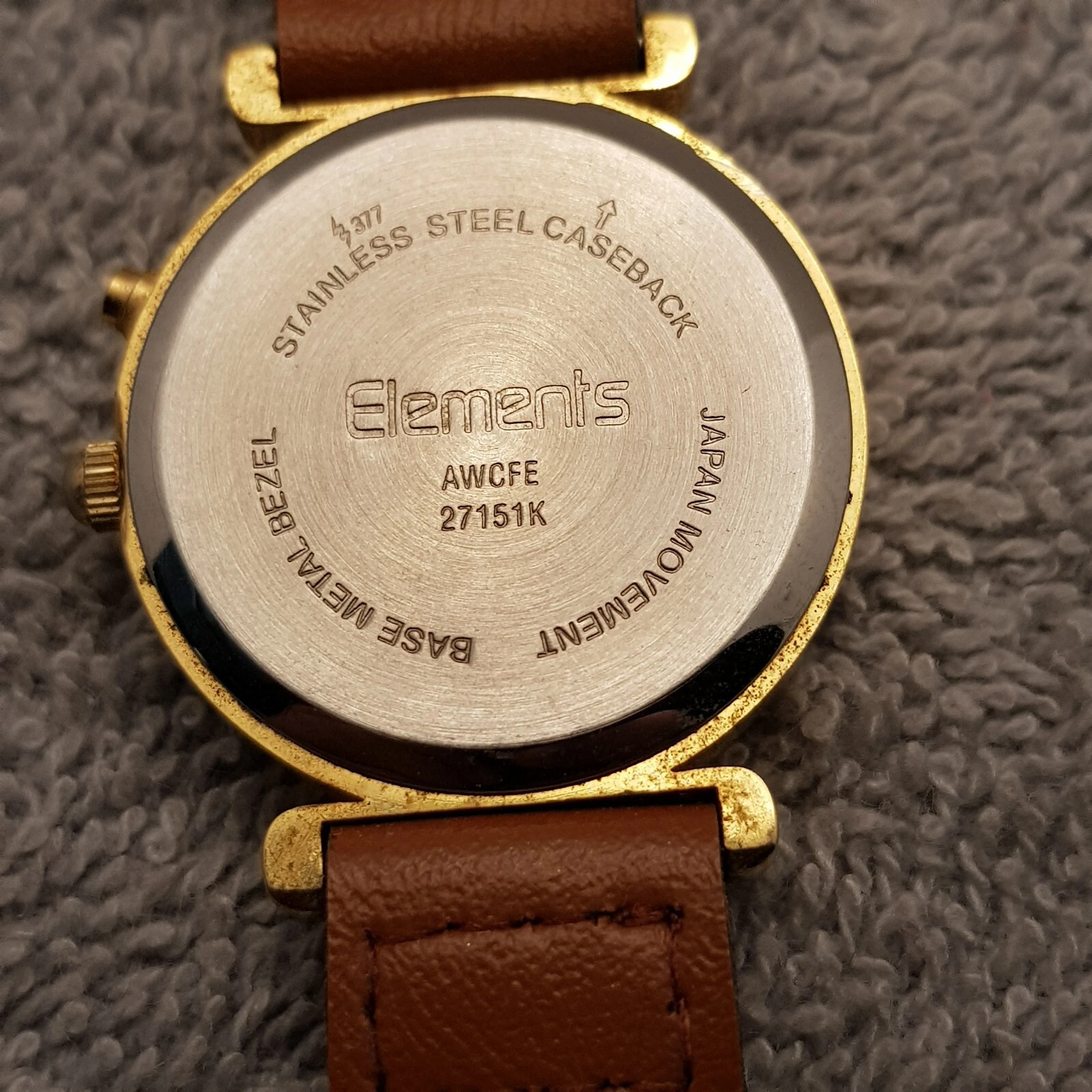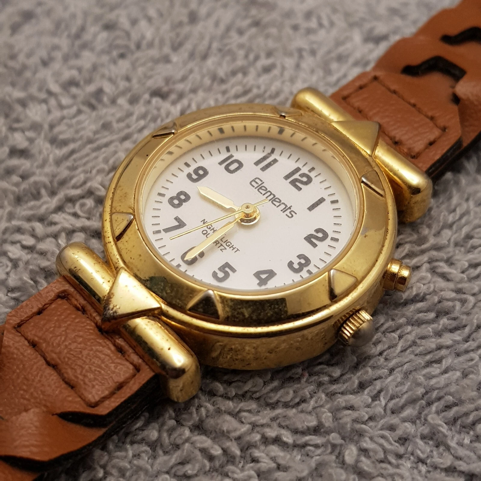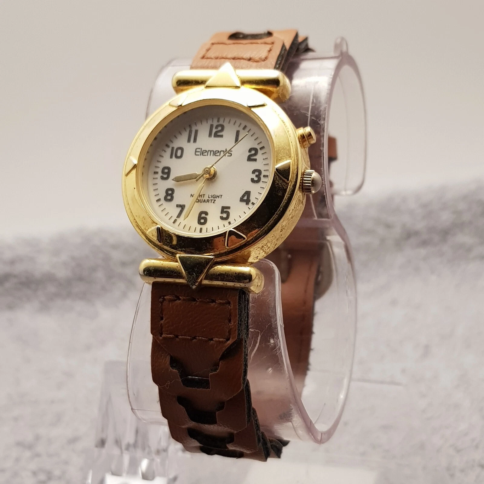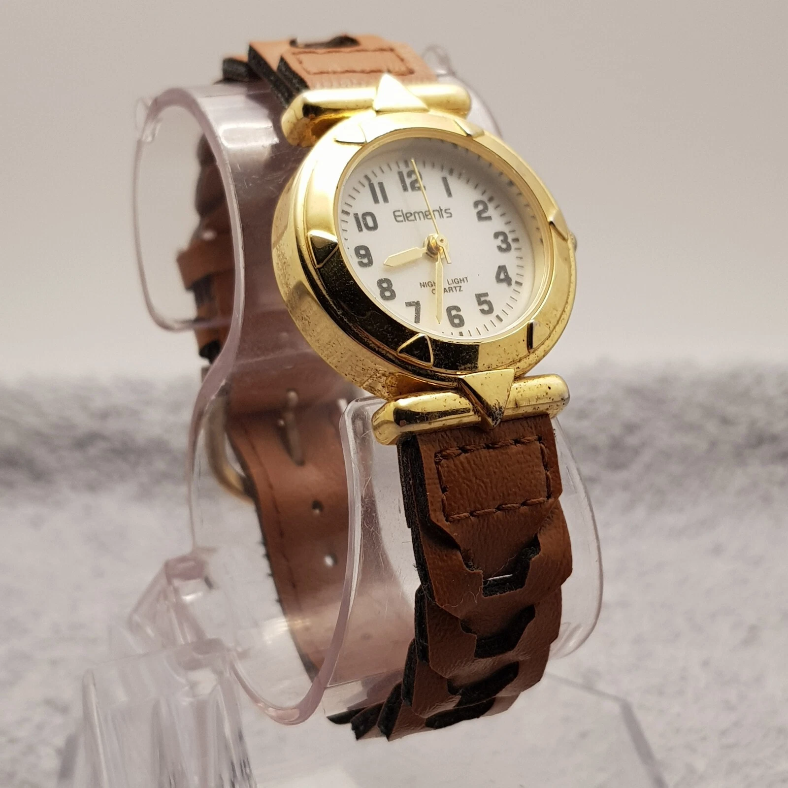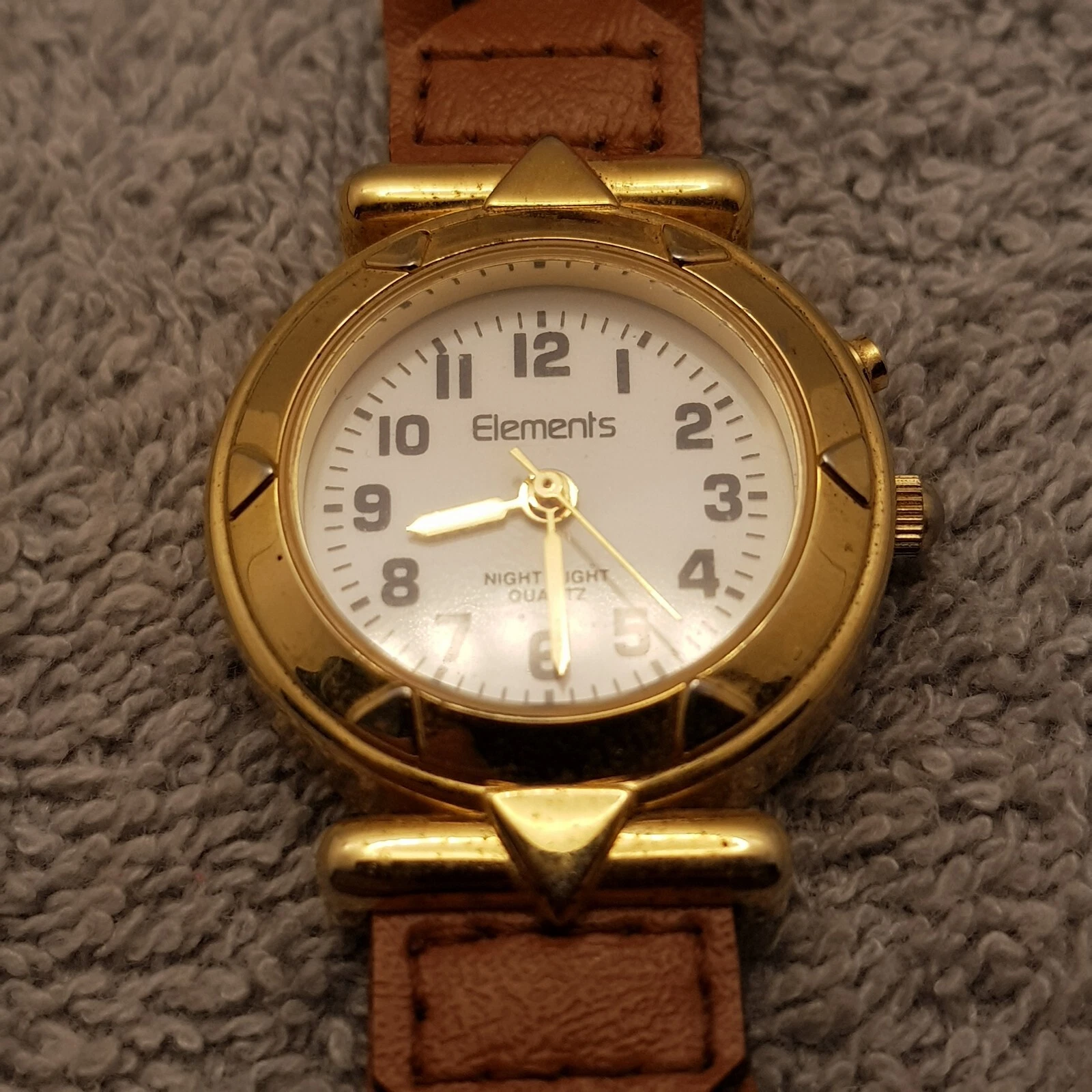 Elements Quartz Analog Watch White Dial Brown Leather Band...NEW BATTERY