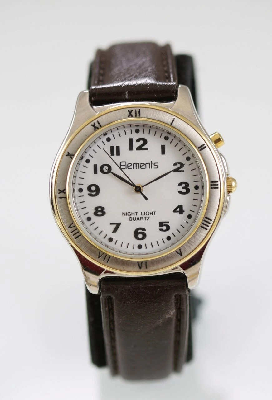 Elements Watch Men Silver Gold Stainless St Leather Brown Light WR White Quartz