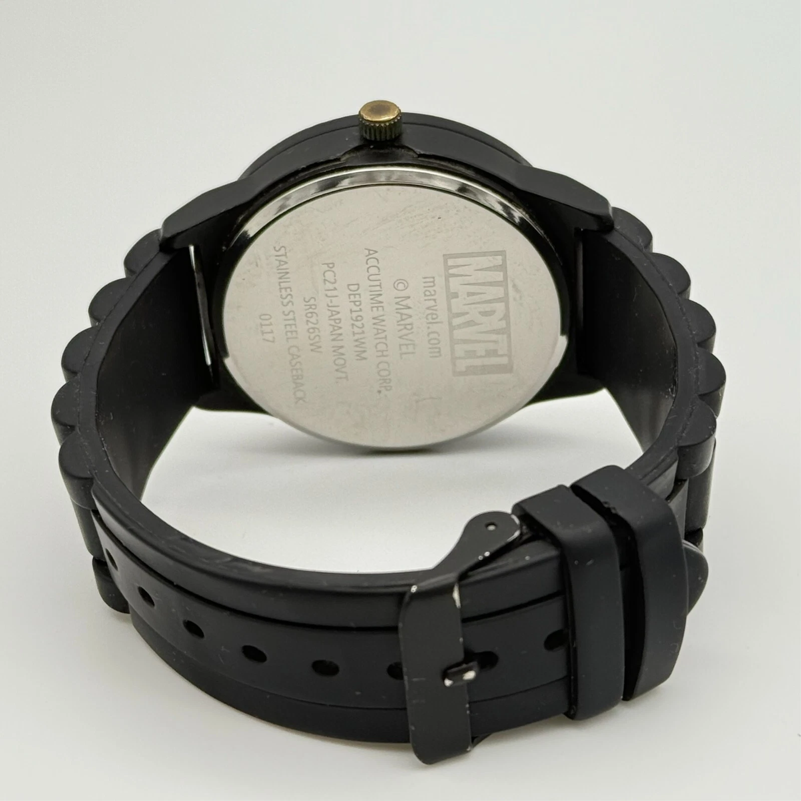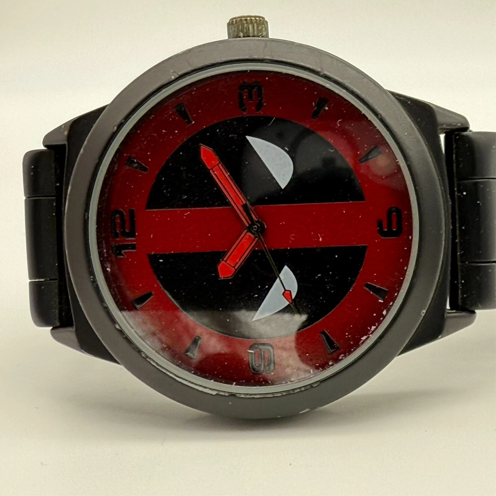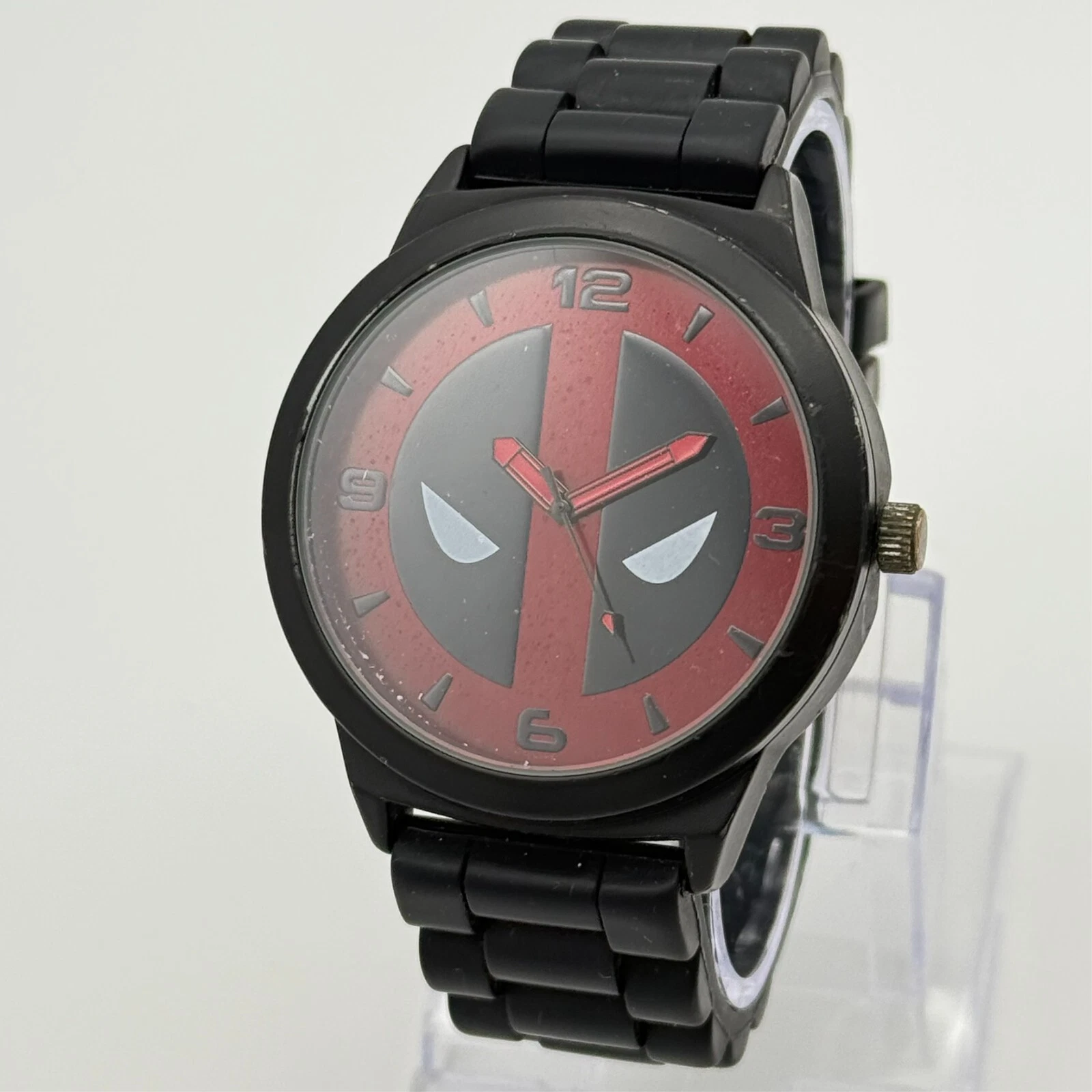 Men's Marvel DEADPOOL Face Accutime Watch, Black Silicone Strap, 45mm, Runs