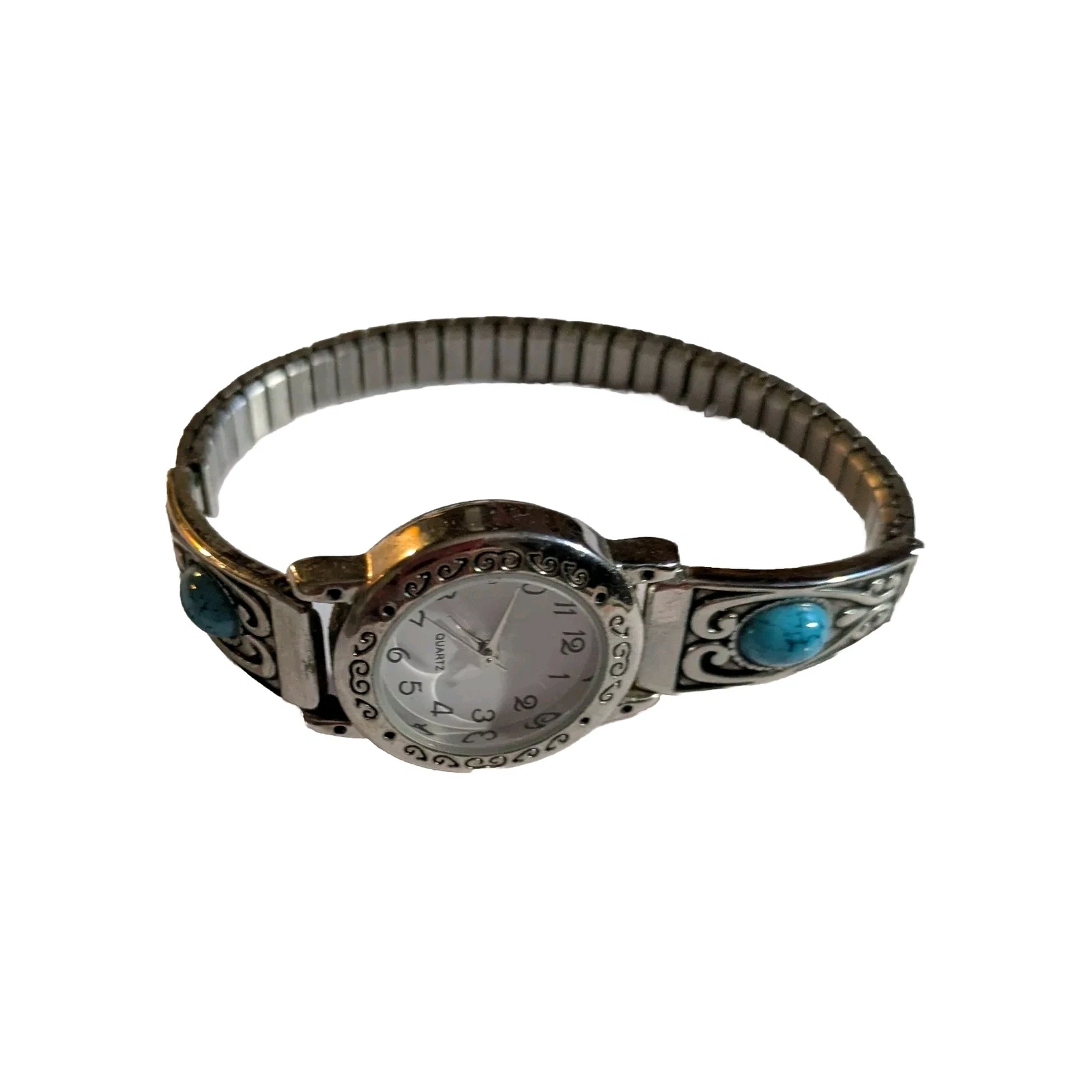 Accutime Ladies Quartz Watch Silver Tone with Marbled Band