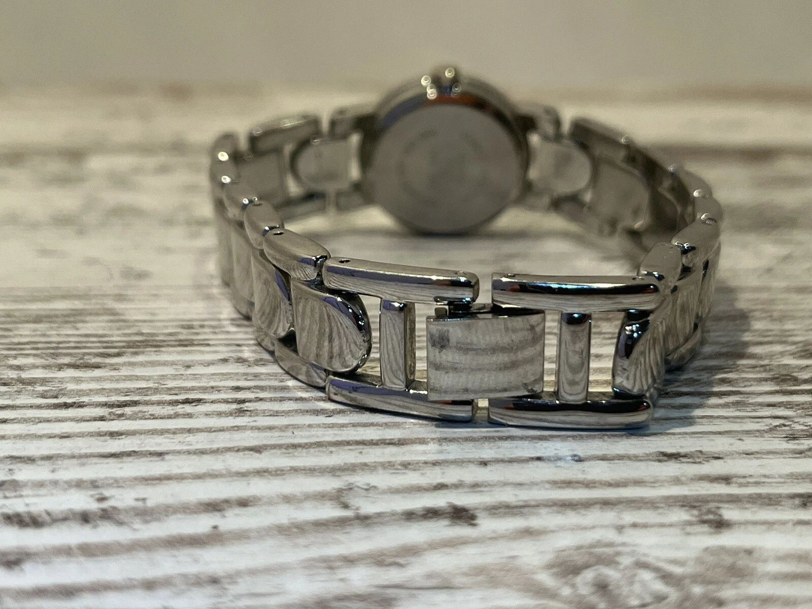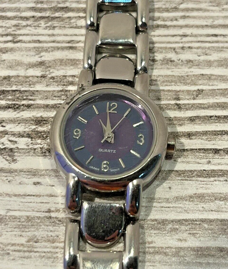 Accutime Analog Fashion Women's  Quartz Watch Silver Tone Navy Face- New Battery