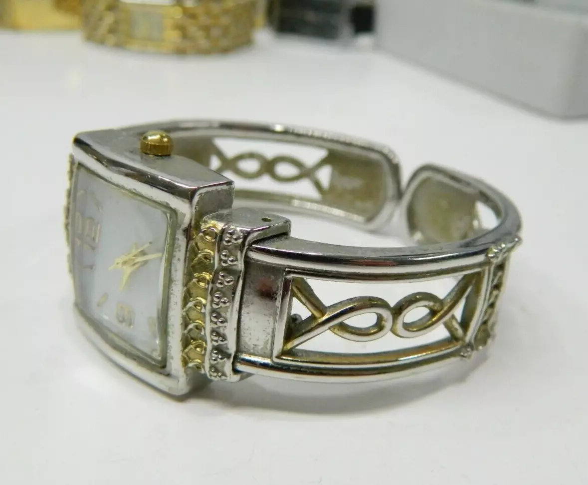 Beautiful silver tone cuff/Bangle style lady's watch/wristwatch