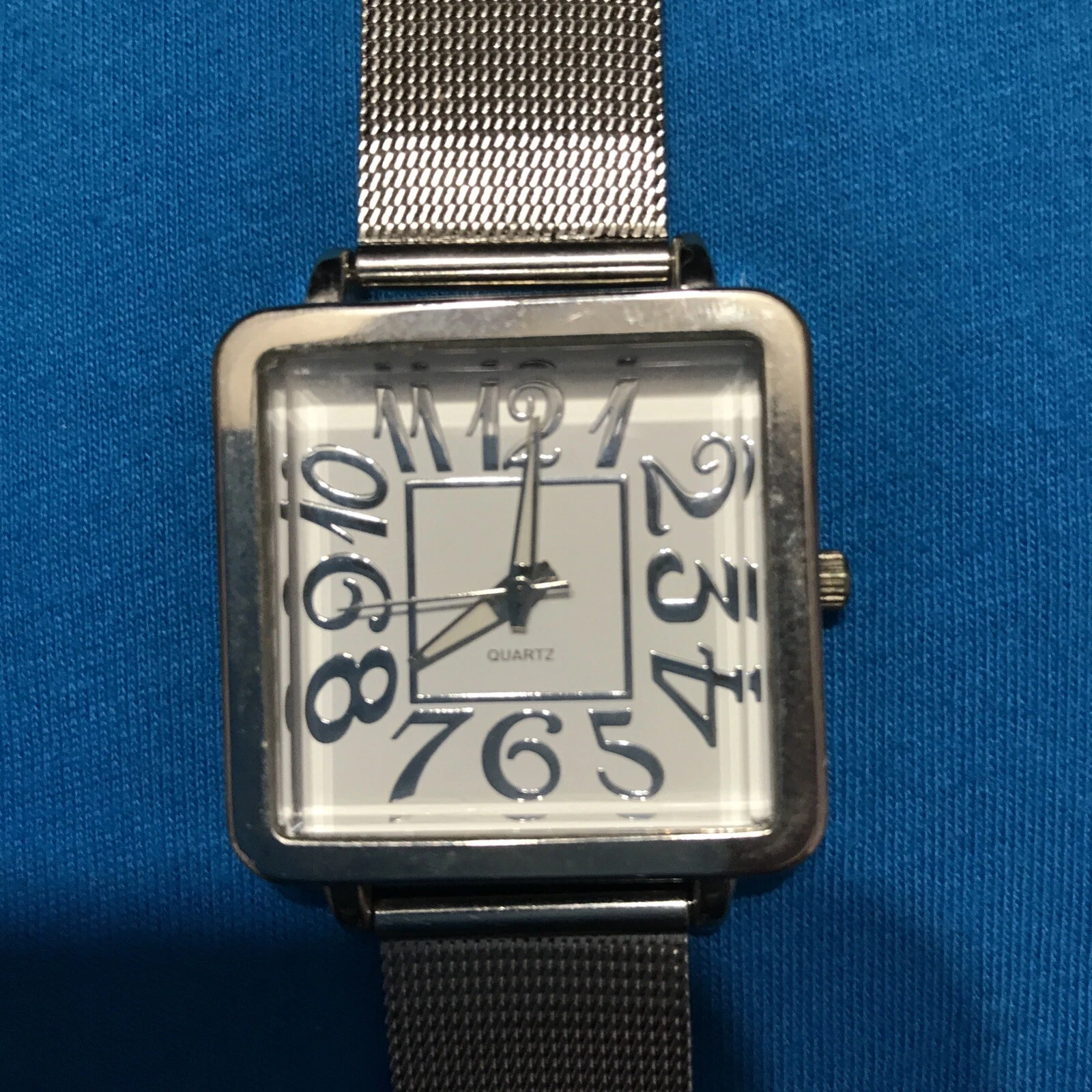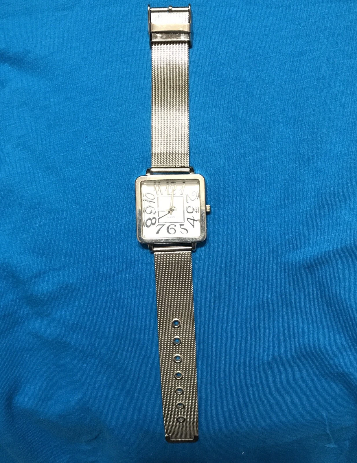 Accutime Watch - Silver Toned Band - Square Shaped Face (Needs Battery) Read Des