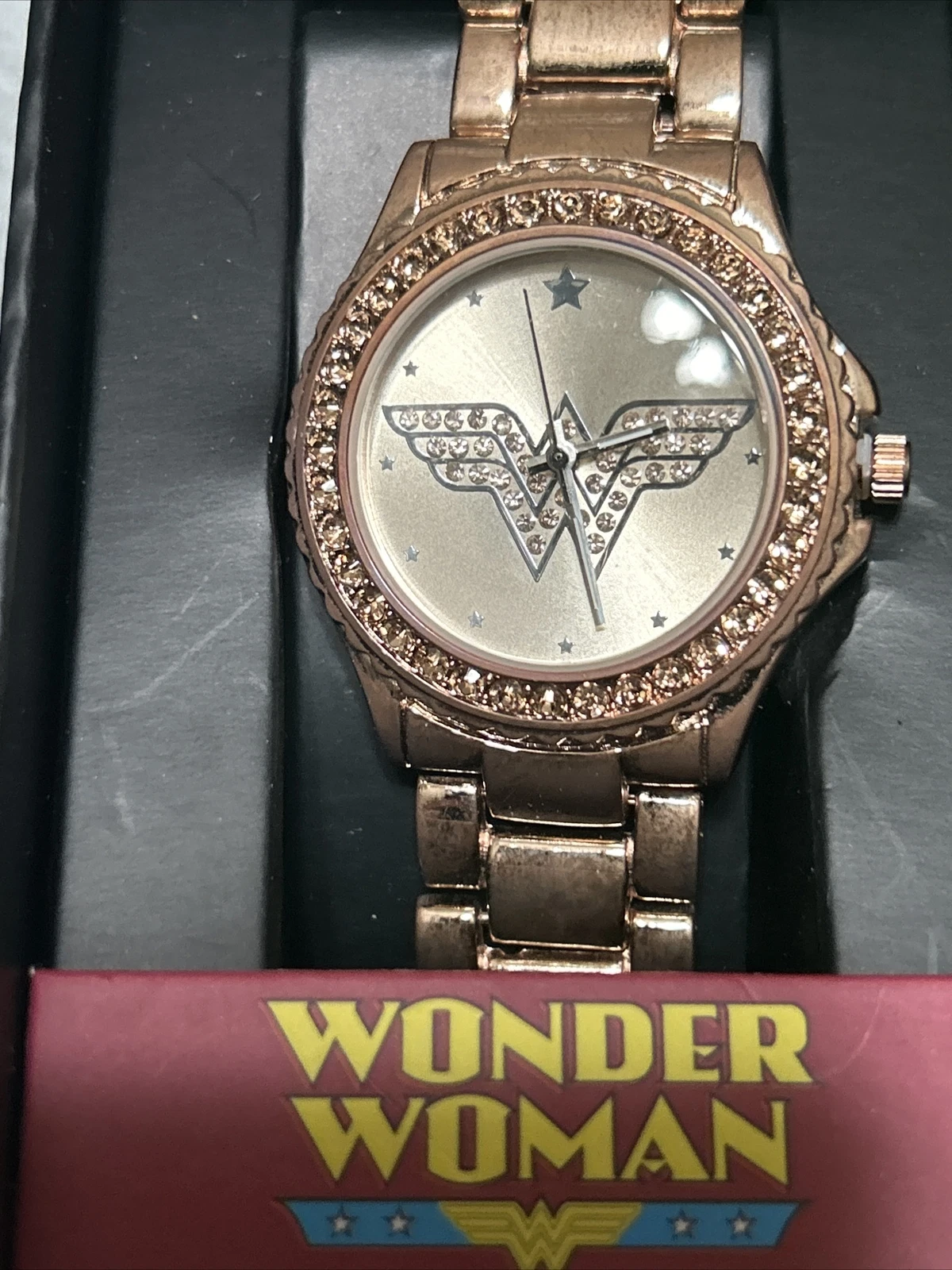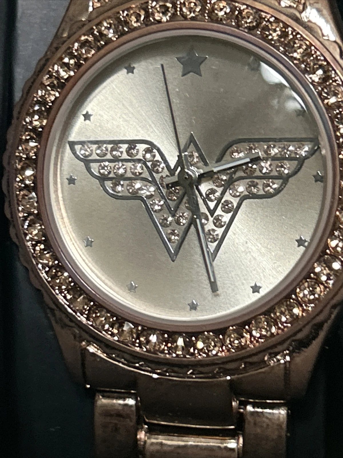 Wonder Woman Logo Rhinestone Accented Rose Gold Watch by Accutime